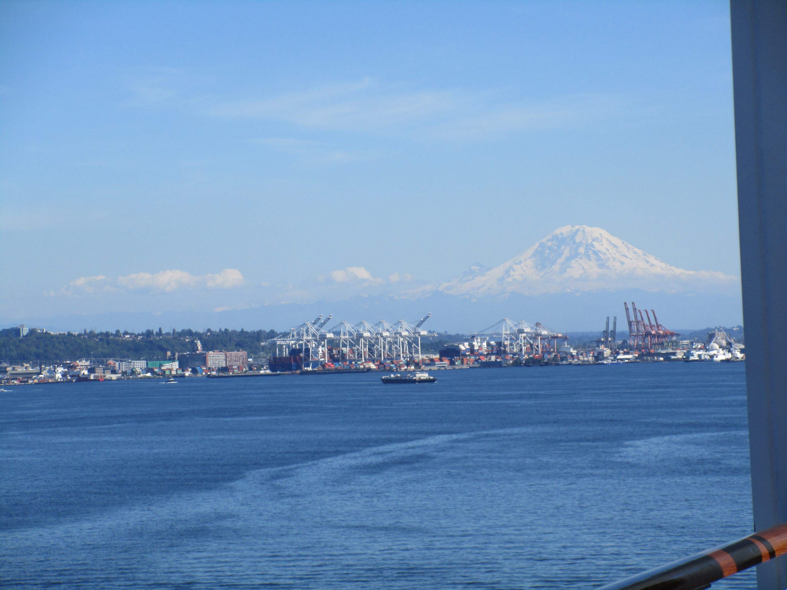Seattle, the home of the Mariners, Seahawks, Starbucks and Pike’s Market fish throwers was our embarkation city for our cruise. The skyline and the waterfront are two of my favorites highlights of Seattle. This was a cruise where I was the travel agent host for a group of more than 70, mostly senior ladies. I was taking care of all our administrative work on board the ship for the group, so I didn’t get the opportunity to take any pictures as we sailed out of Seattle. I was traveling with my Mom and thankfully she was able to get out on deck with her camera and snap some great pictures of the sail-away.