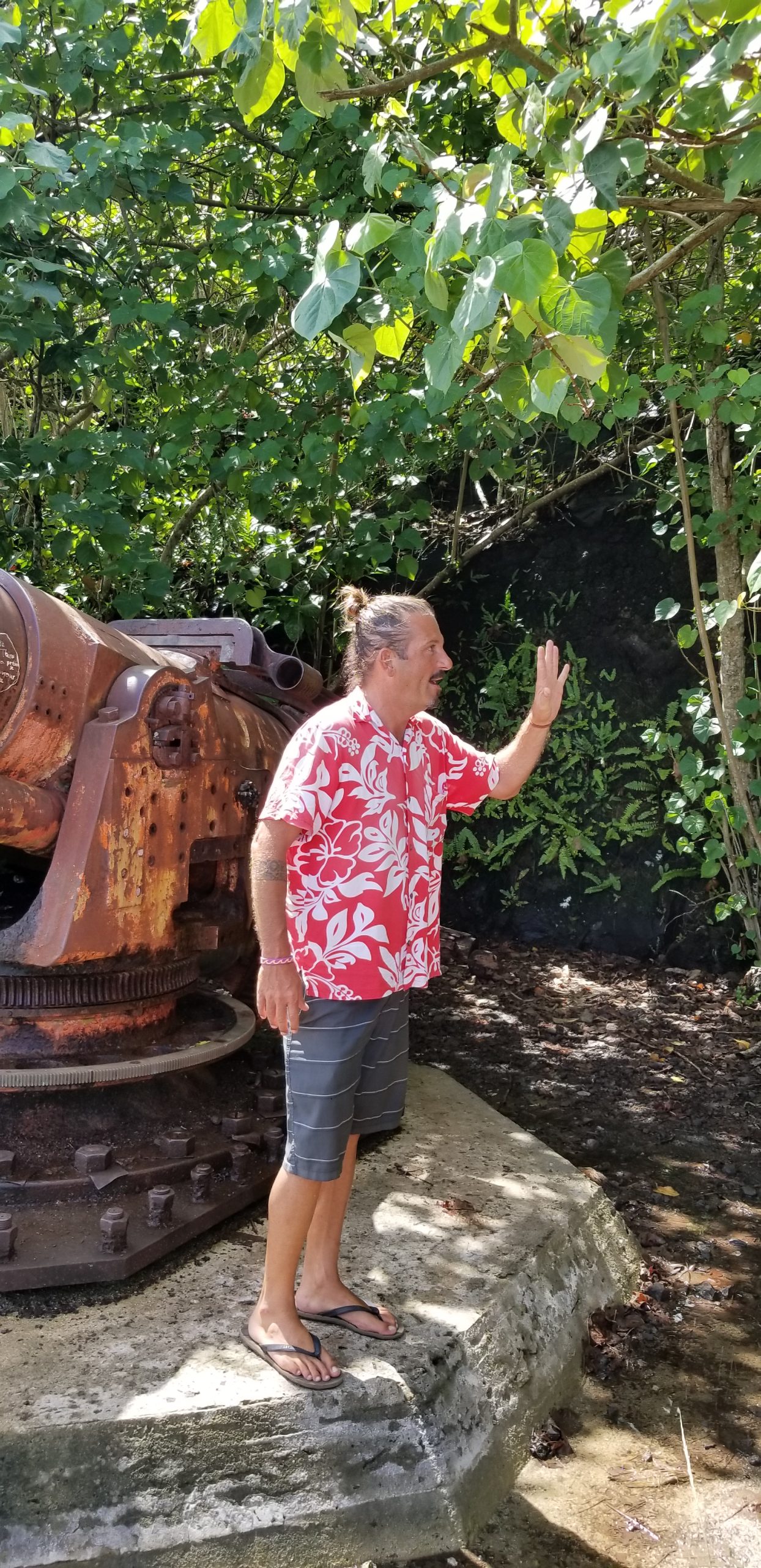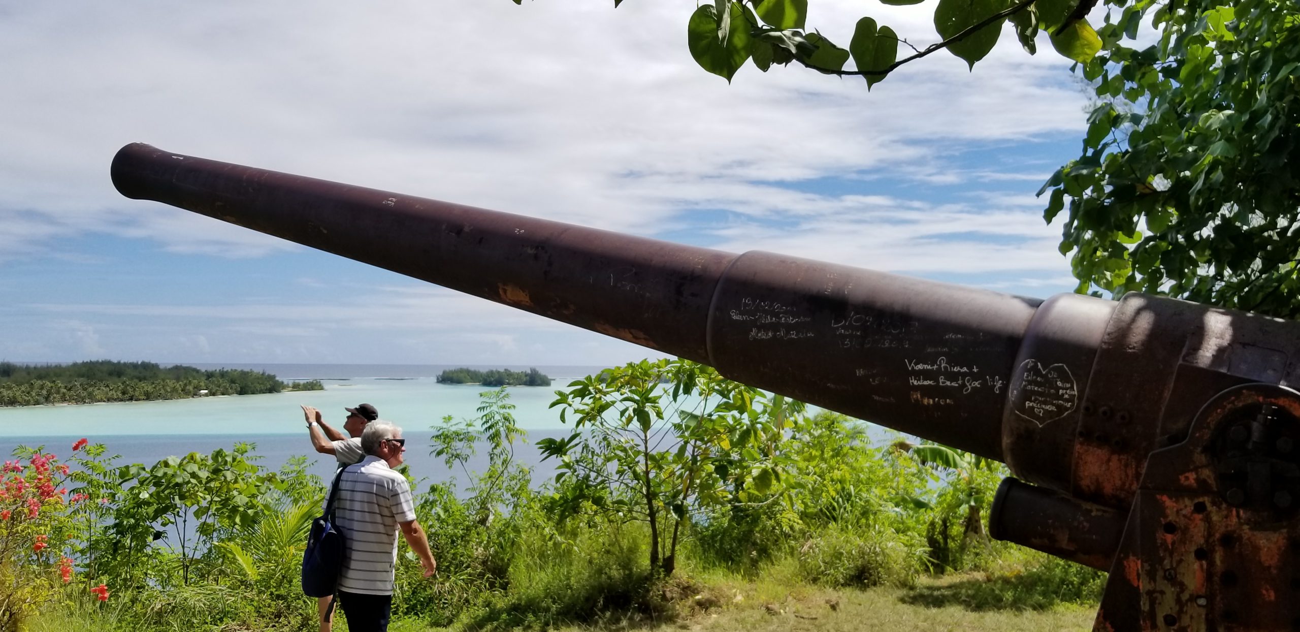 Our day in Bora Bora was spent taking a circle island tour in 4×4 Vehicles. The island’s volcanic cone geology makes it very steep with only a very little flat land. The circumference of the island is only 11.5 miles and our tour with many stops along the way took about 4 hours. The 4×4 was needed to get up the very steep terrain to the many different view points. The tour included a beach stop, a visit to the WWII Gun Site (Never Used) and a Parejo boutique. The vistas overlooking the lagoon, highlight the beauty of the island.