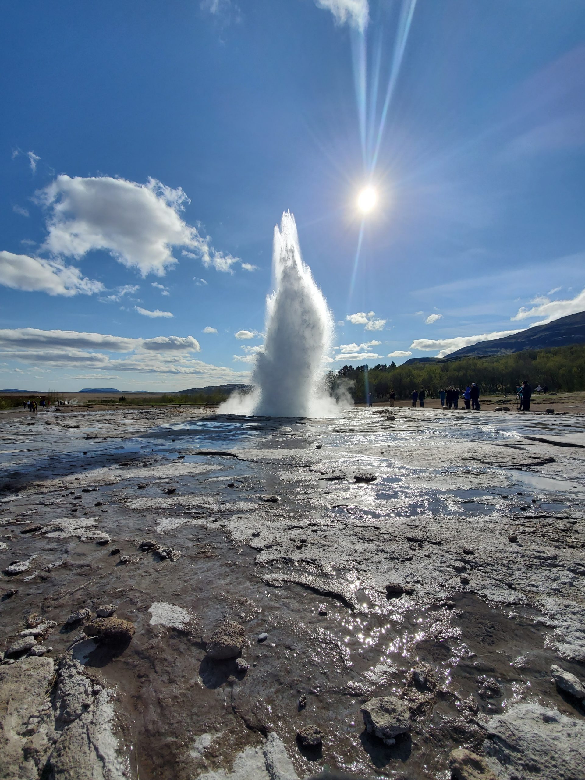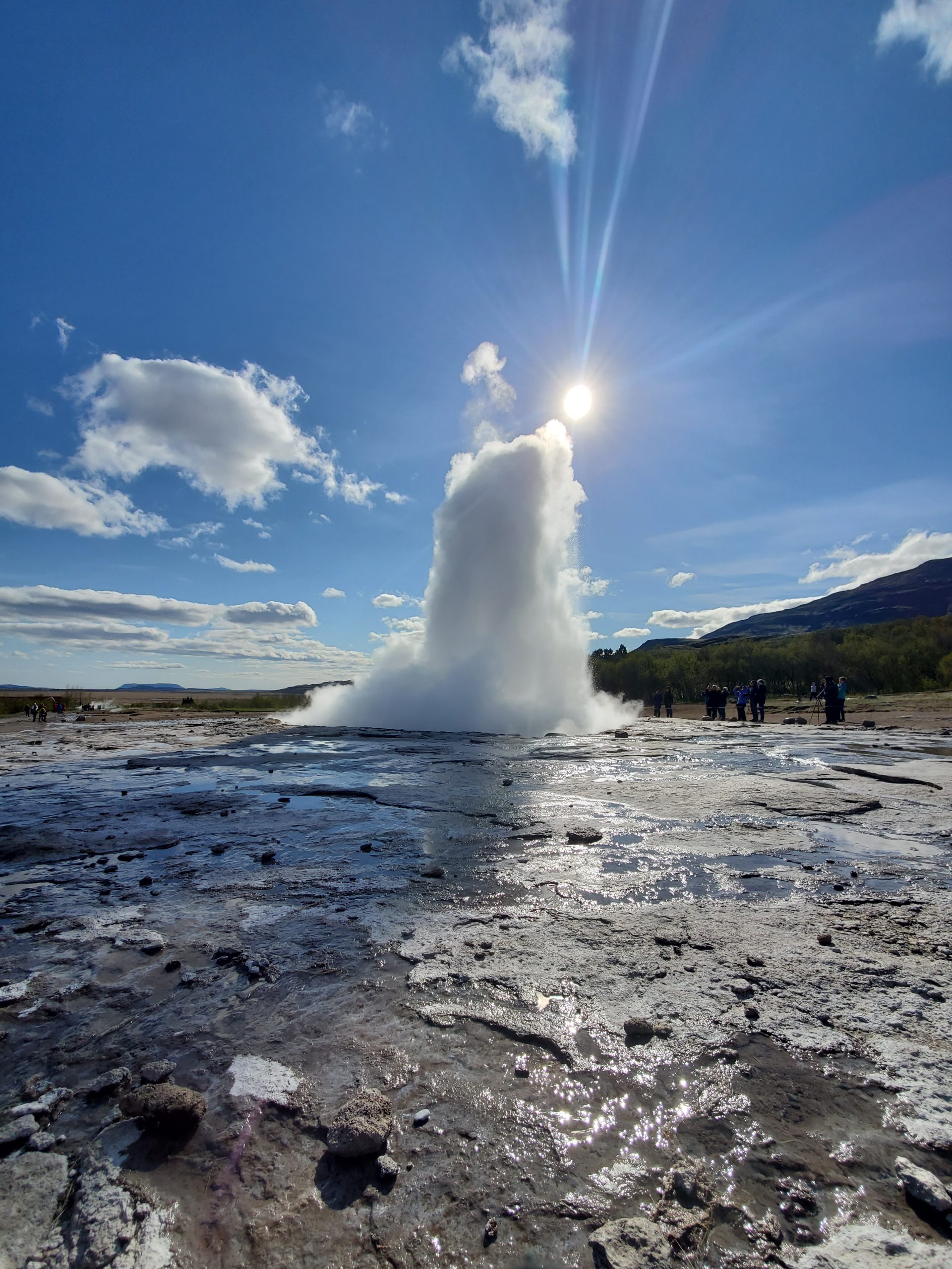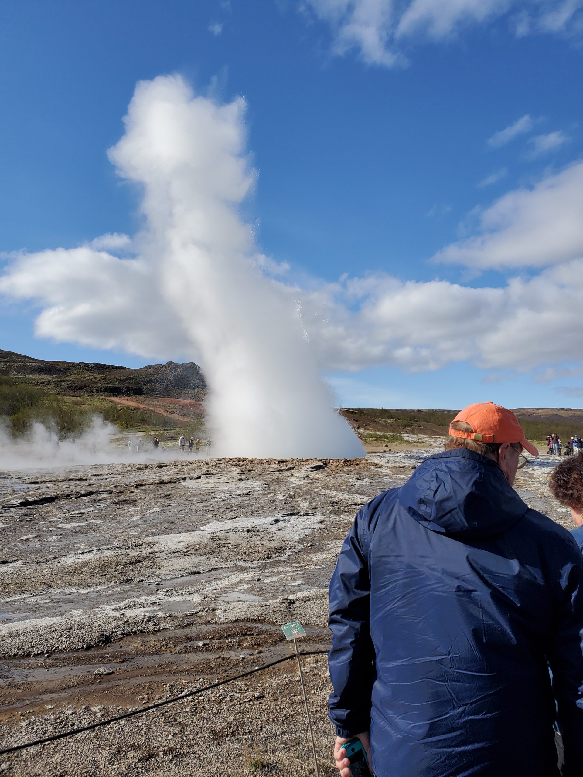 From the National Park, we then drove out to see the Strokkur Geyser. This Geyser is the most regular in the world, erupting every 8 to 10 minutes or so. We were lucky enough to see it erupt several times during our visit. Next we headed to my favorite site of the day, the Gullfoss Waterfalls, or Golden Falls. It was really something special, from the scenic cliffs to its two perpendicular diagonal drops, it was a breathtaking waterfall and we even got to see a rainbow in the mist.
