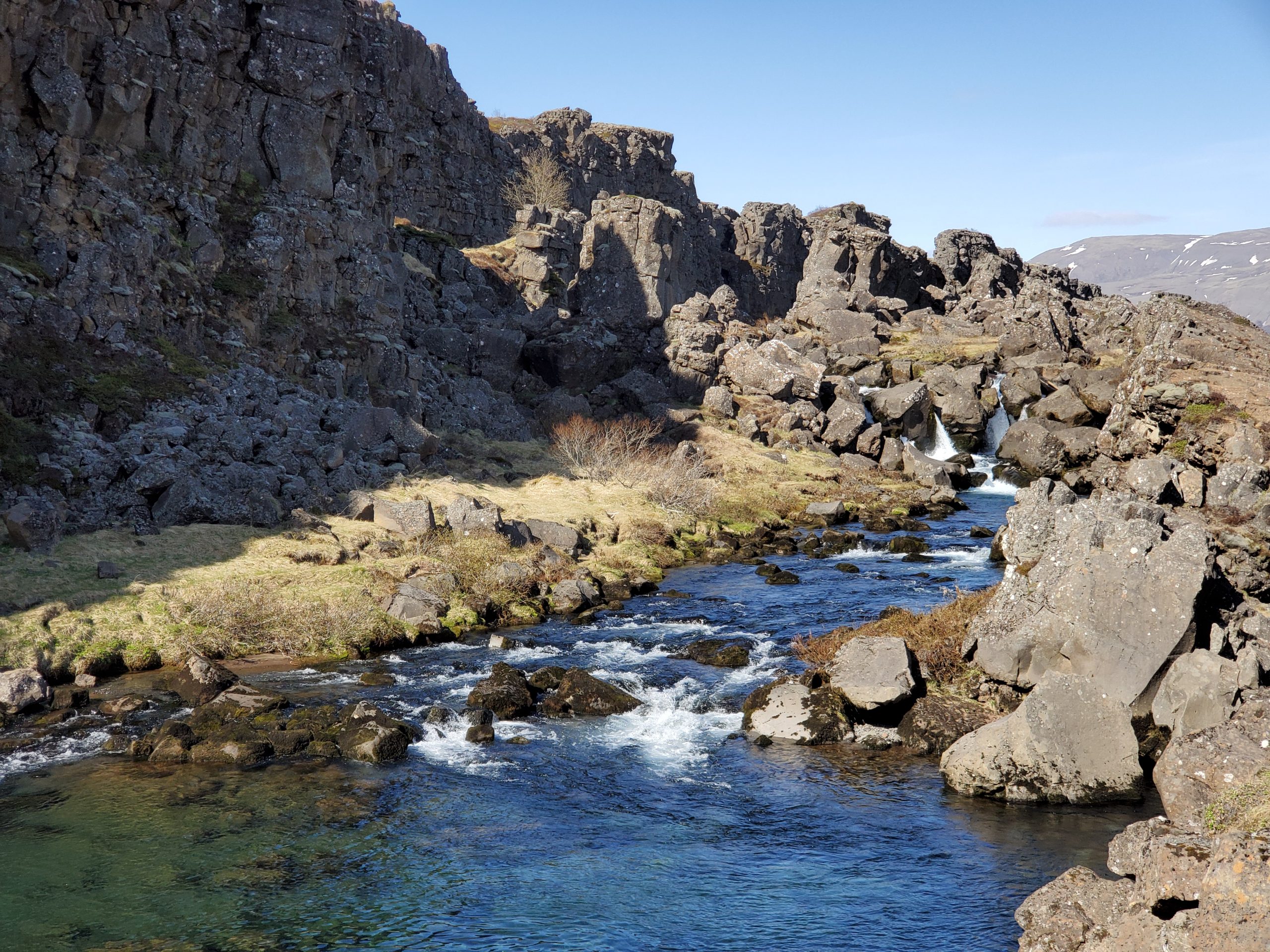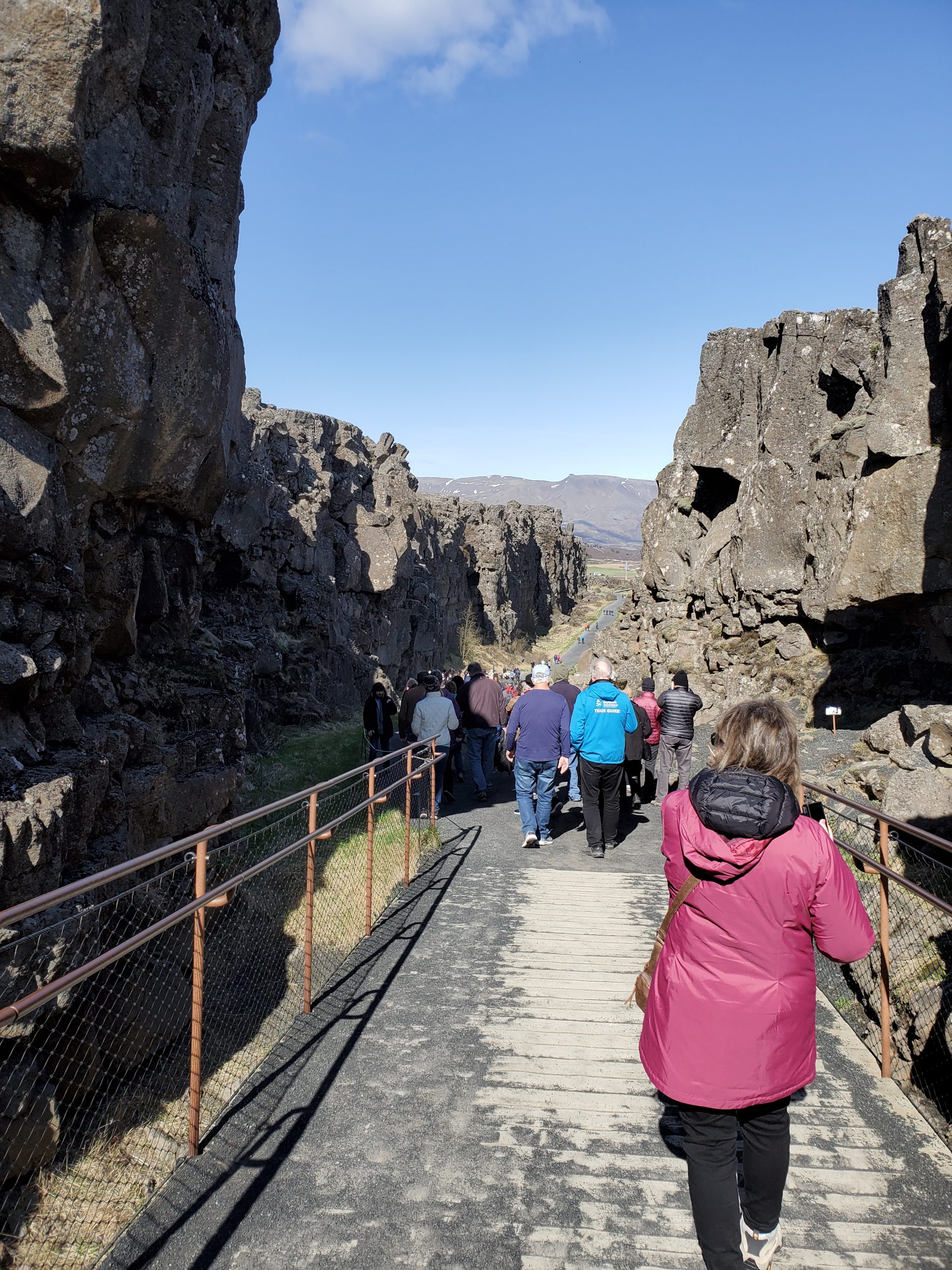 Our first day would be spent exploring a few of the thermal features and and a few of the waterfalls created by the melting snow and glaciers. Our first stop was Thingvillir National Park, not only a sight of great beauty, but also of historic significance as this is where the first Nordic tribes who had settled Iceland gathered to form their main government system. This is also the spot where the two continental plates split apart, creating some spectacular cracks in the earth.