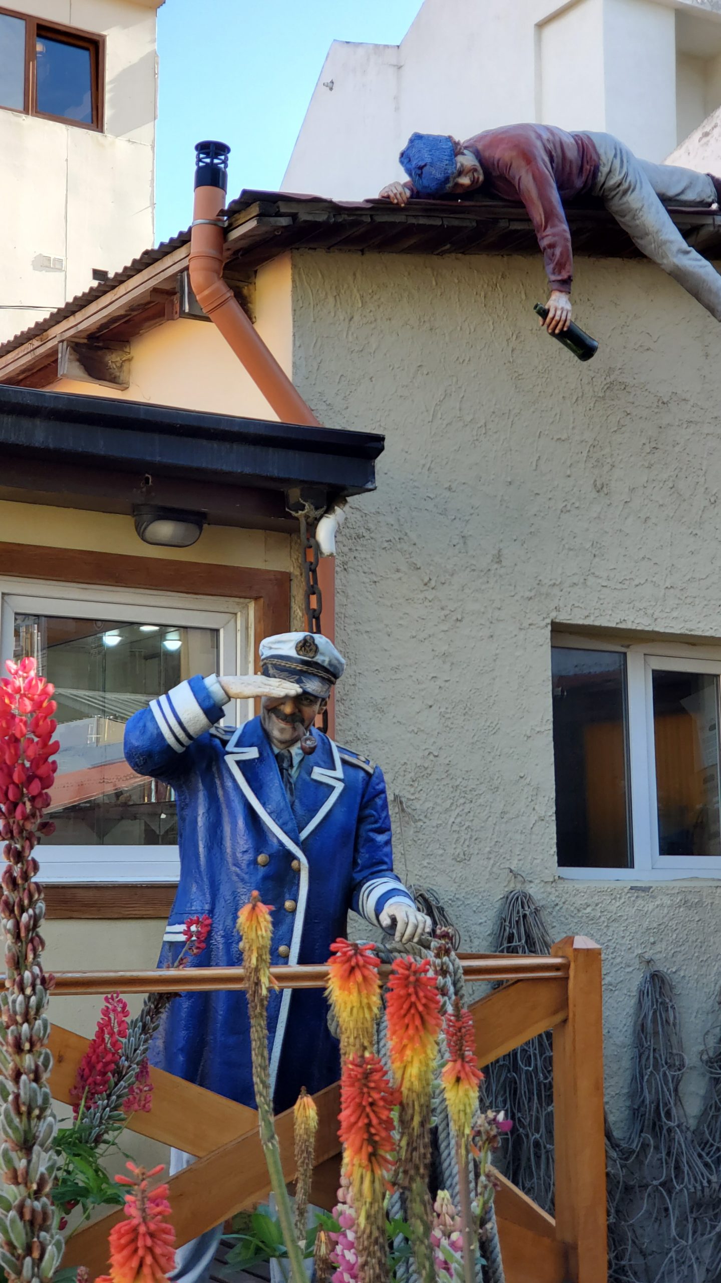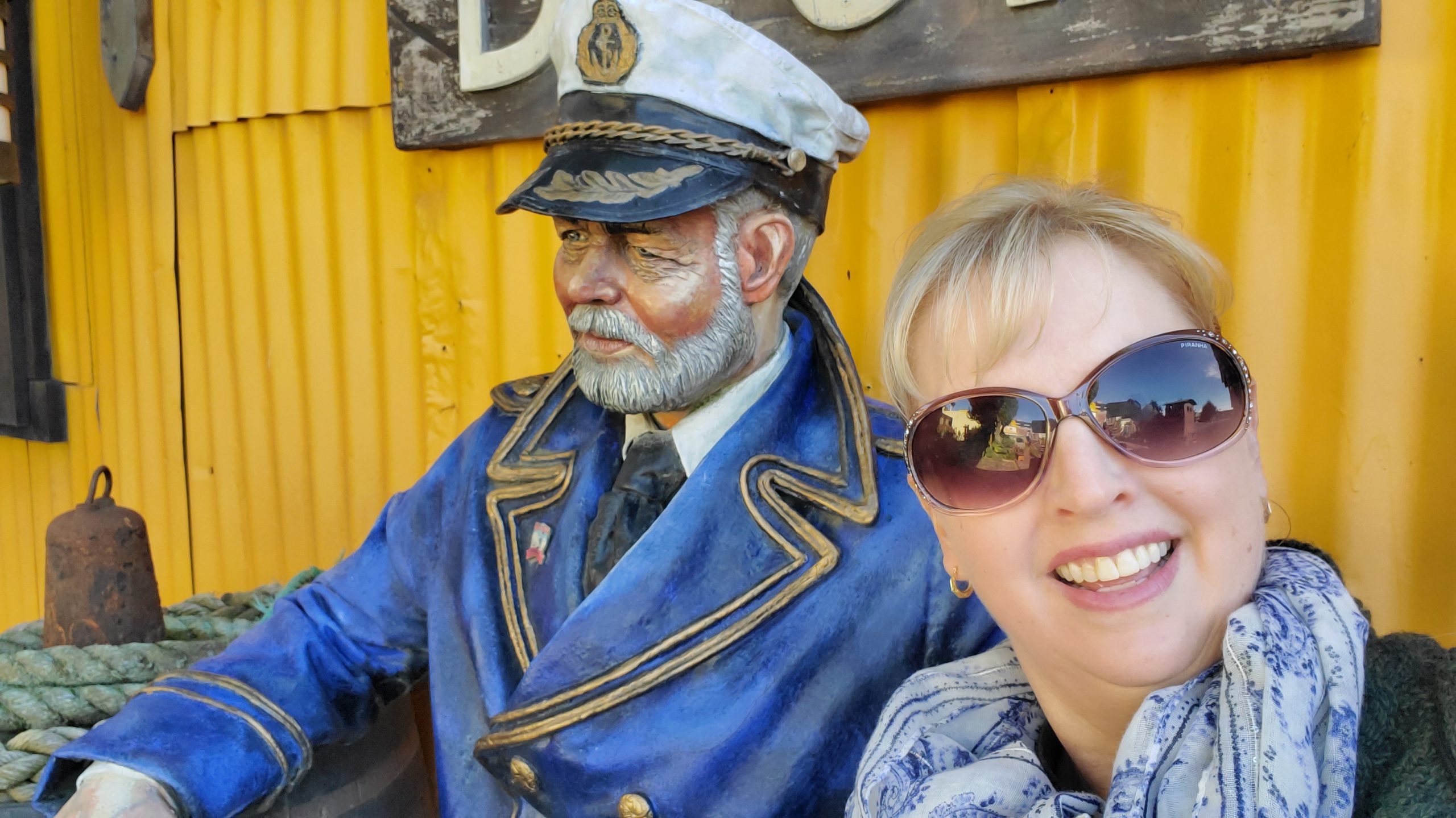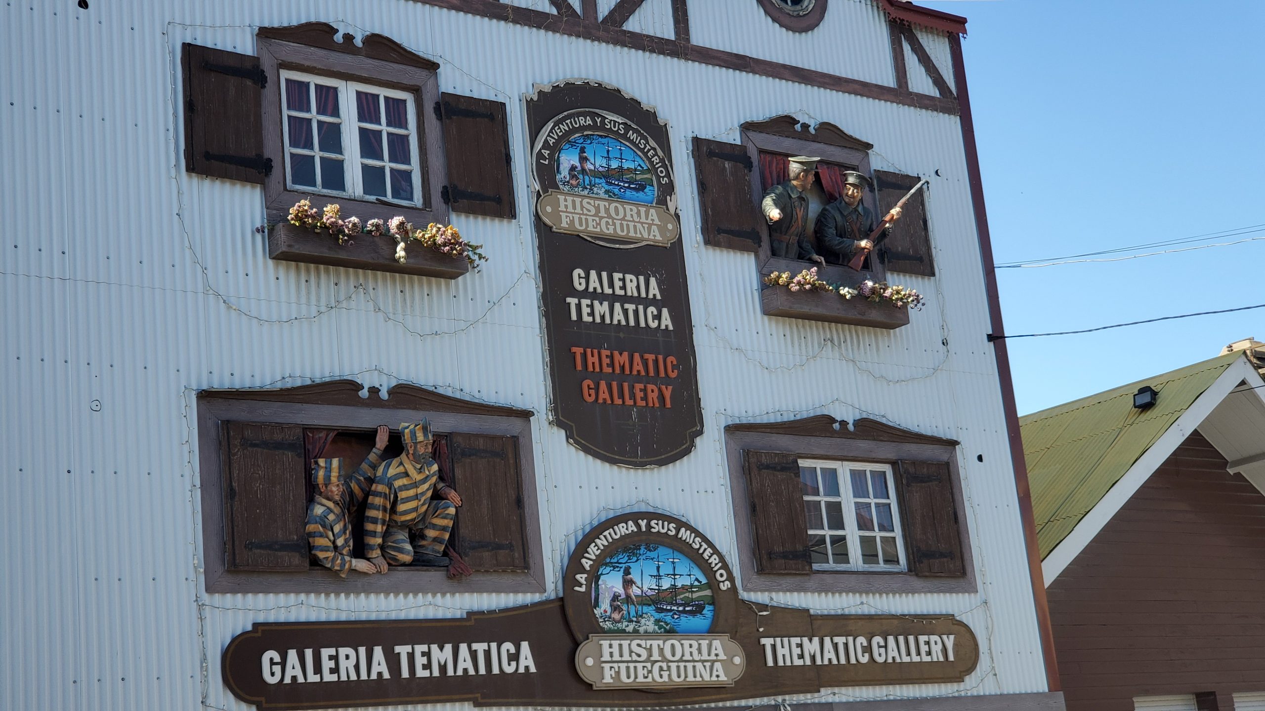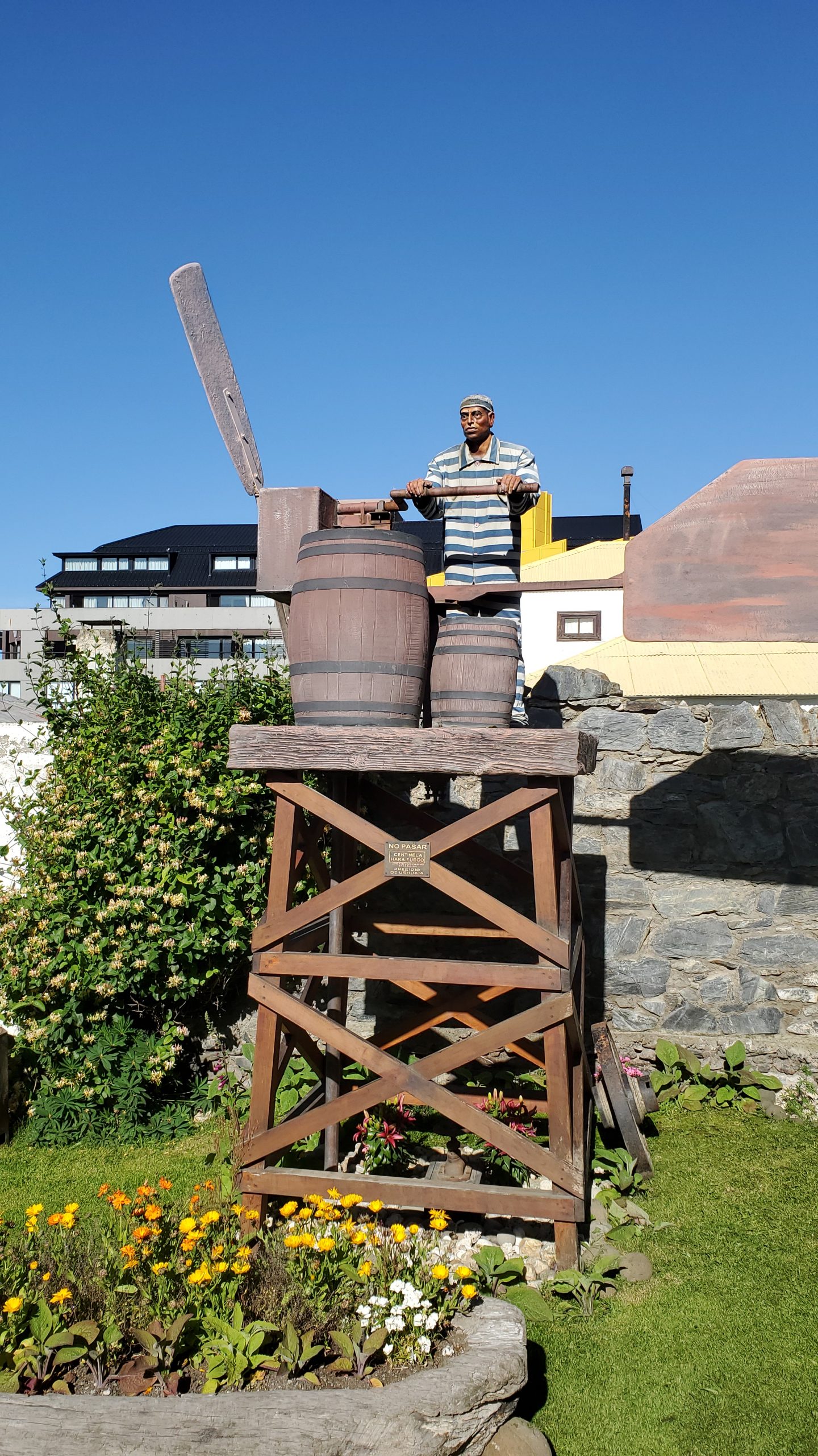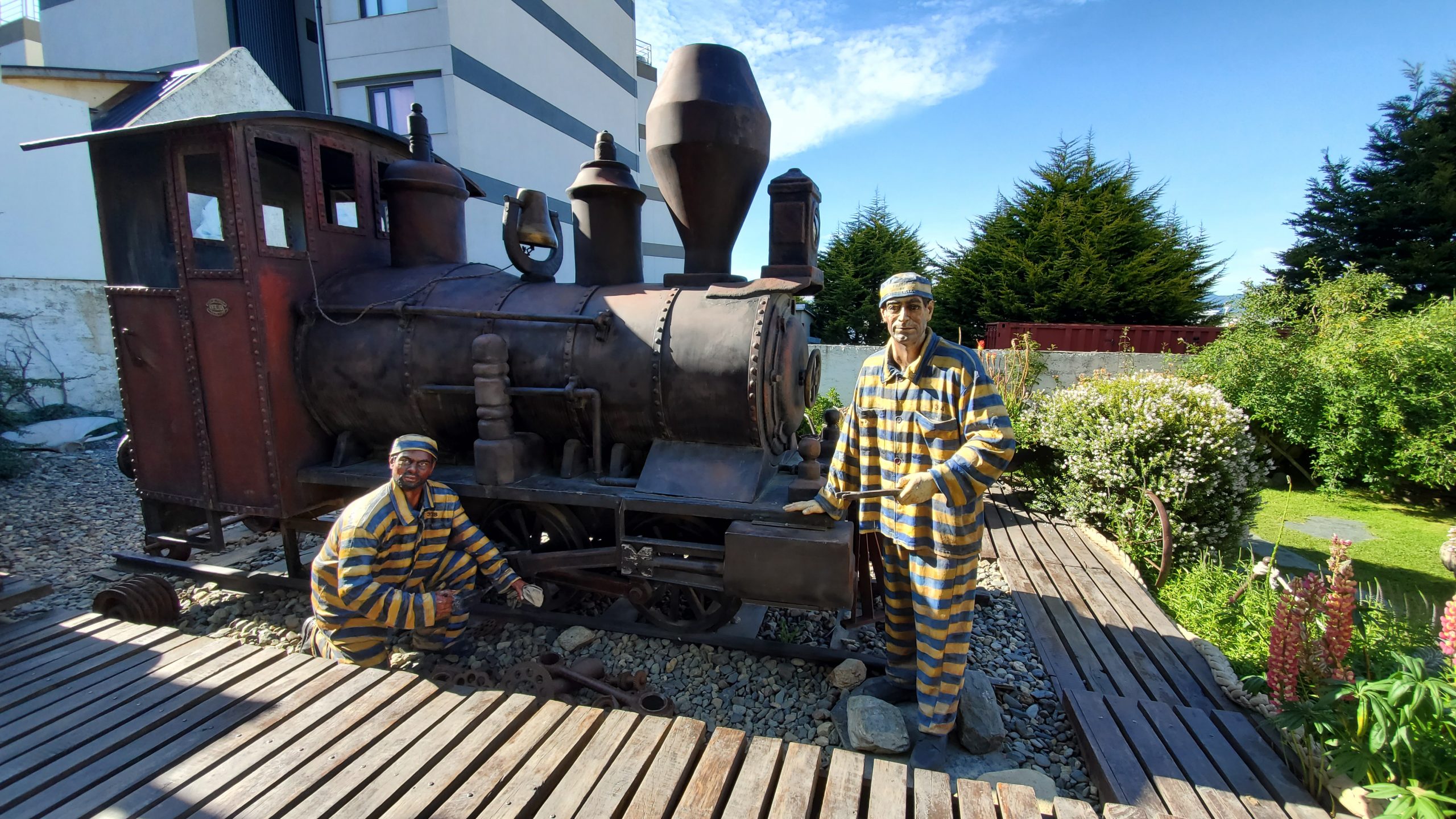 The area was named “Land of Fire” by Spanish sailors who noticed the many camp fires of the native people who inhabited the area. Interestingly enough, despite the cold environment, those people, known as Yaghan, wore very little clothing. Folks can learn more about those people and the history of Ushuaia, including the building of the railroad and the prison located at the “End of the World” at the town’s Thematic Gallery which tells the history of Fuegians through dioramas depicting 36 scenes with 120 figures of characters from the history of Tierra del Fuego. We visited the gift shop of the museum and took pictures with some those characters in the out door display.