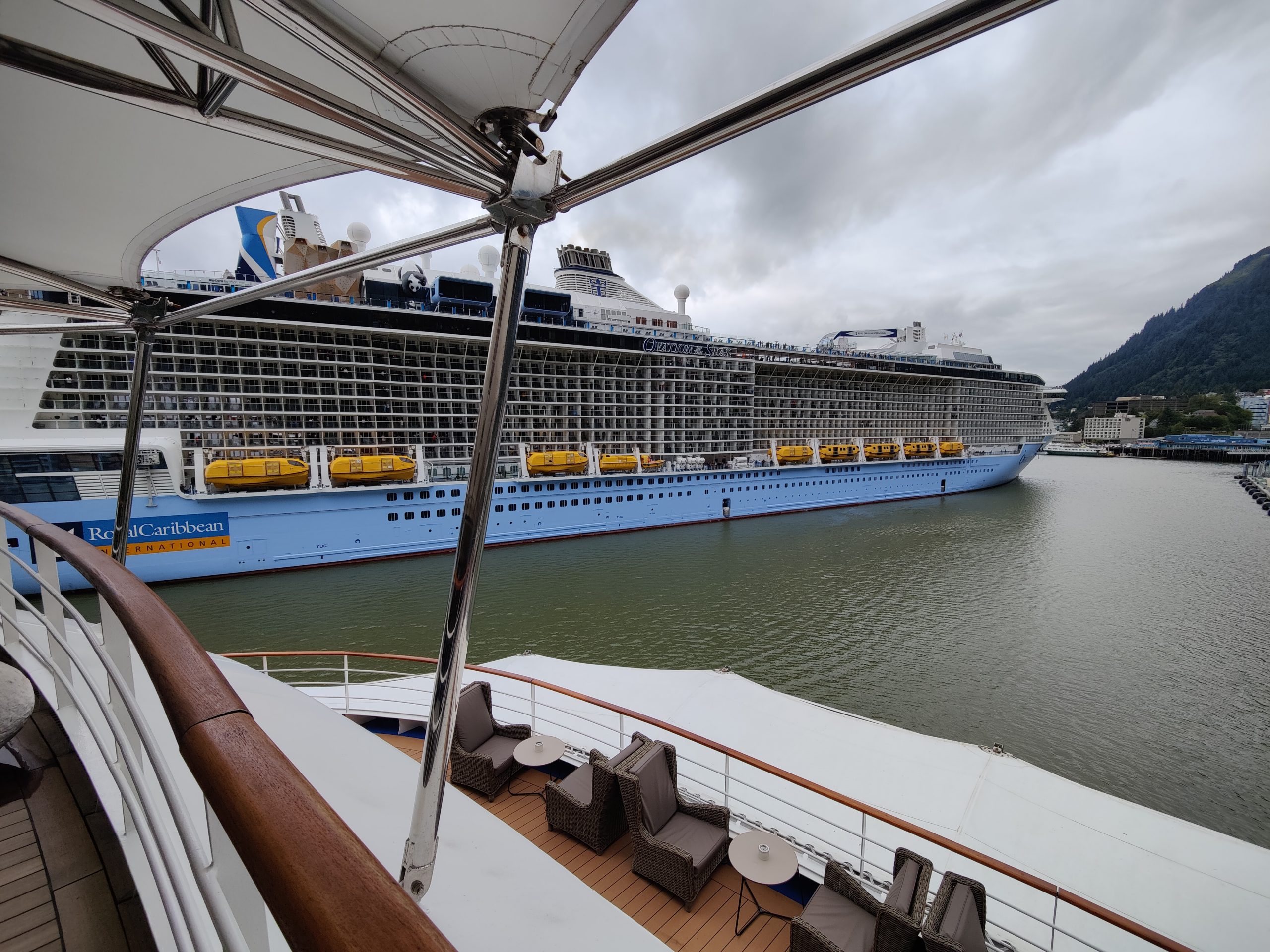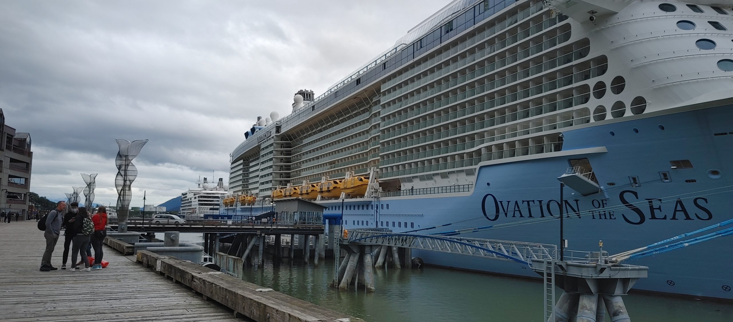 This was my 5th time to visit Juneau, so once again we didn’t take any real excursions. This whole cruise was about the Silversea experience, so excursions weren’t too important to us. However, I would highly recommend that guests visiting Juneau do a helicopter tour to a glacier with or without do sledding, enjoy a whale watching tour where my guests have actually taken some amazing pictures of humpback whales bubble feeding, take an excursion out to the Taku Glacier, or even take the tramway to Mt. Roberts to see the incredible vistas from the view point. I also recommend a visit to the Alaska State Museum for those folks who are museum people. For this trip, we enjoyed the walk around town, watching the big Royal Caribbean ship, Ovation of the Seas, come in, and then watching it depart while our ship overnighted in port.