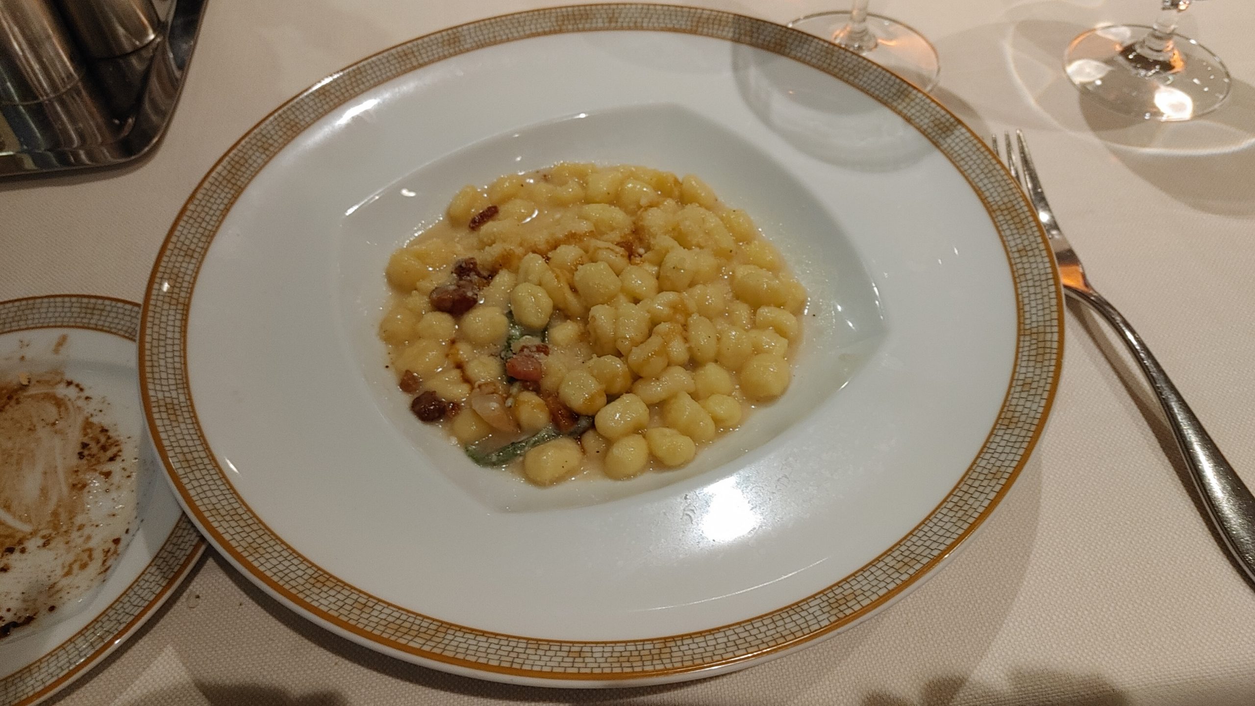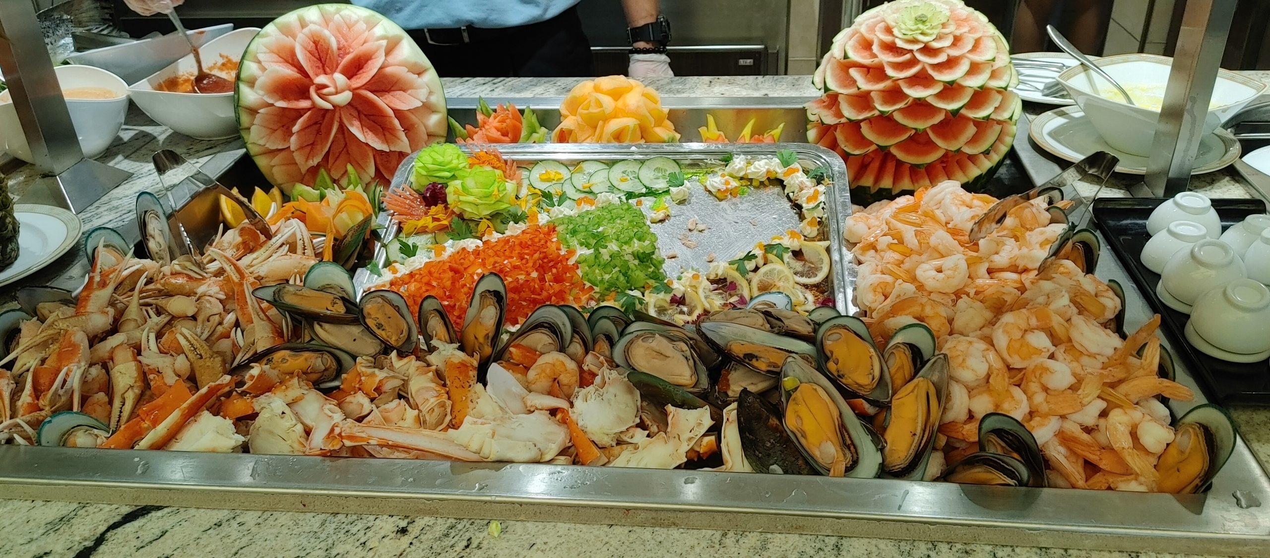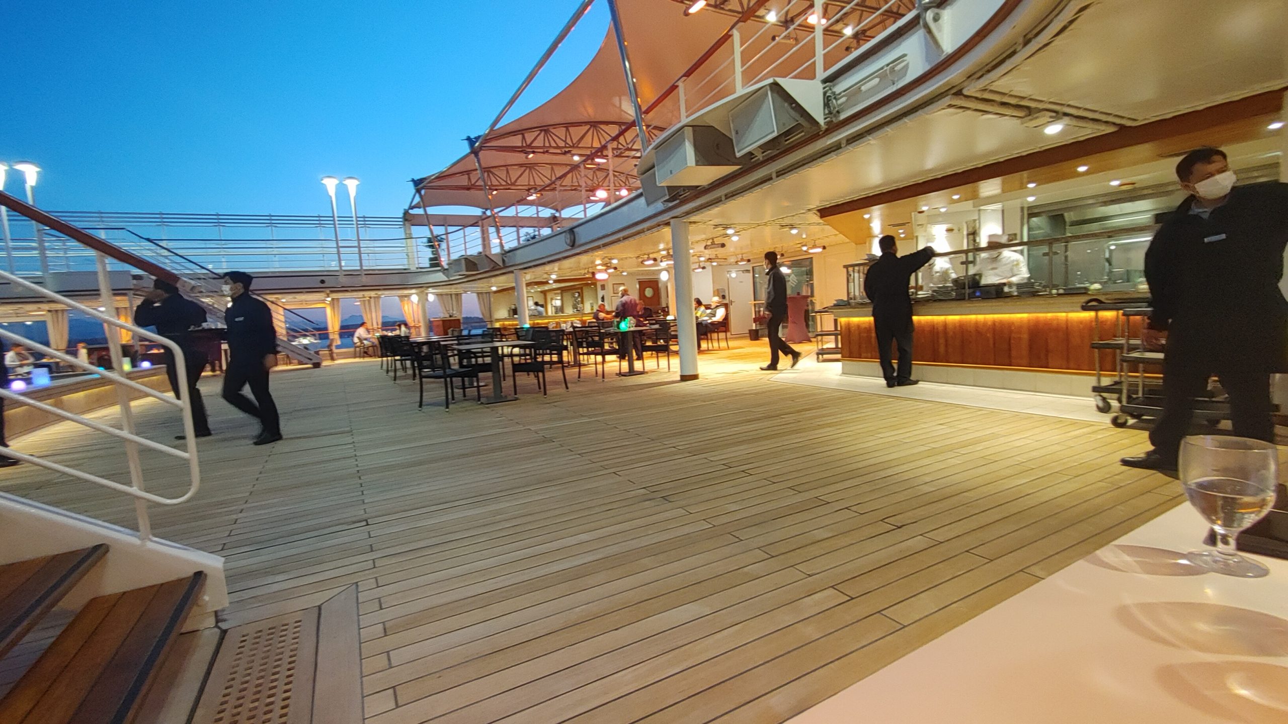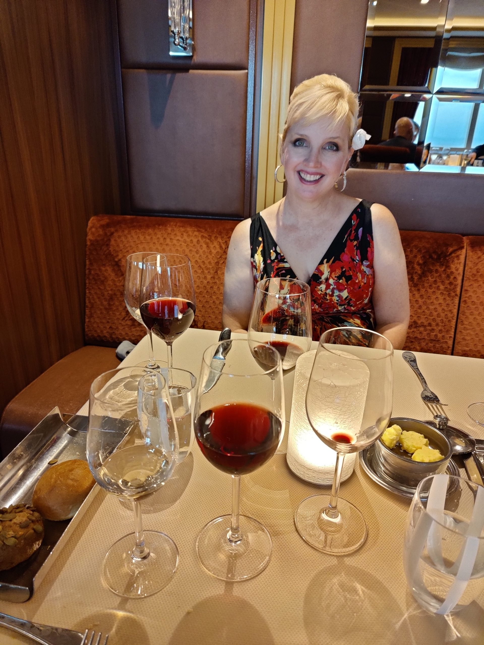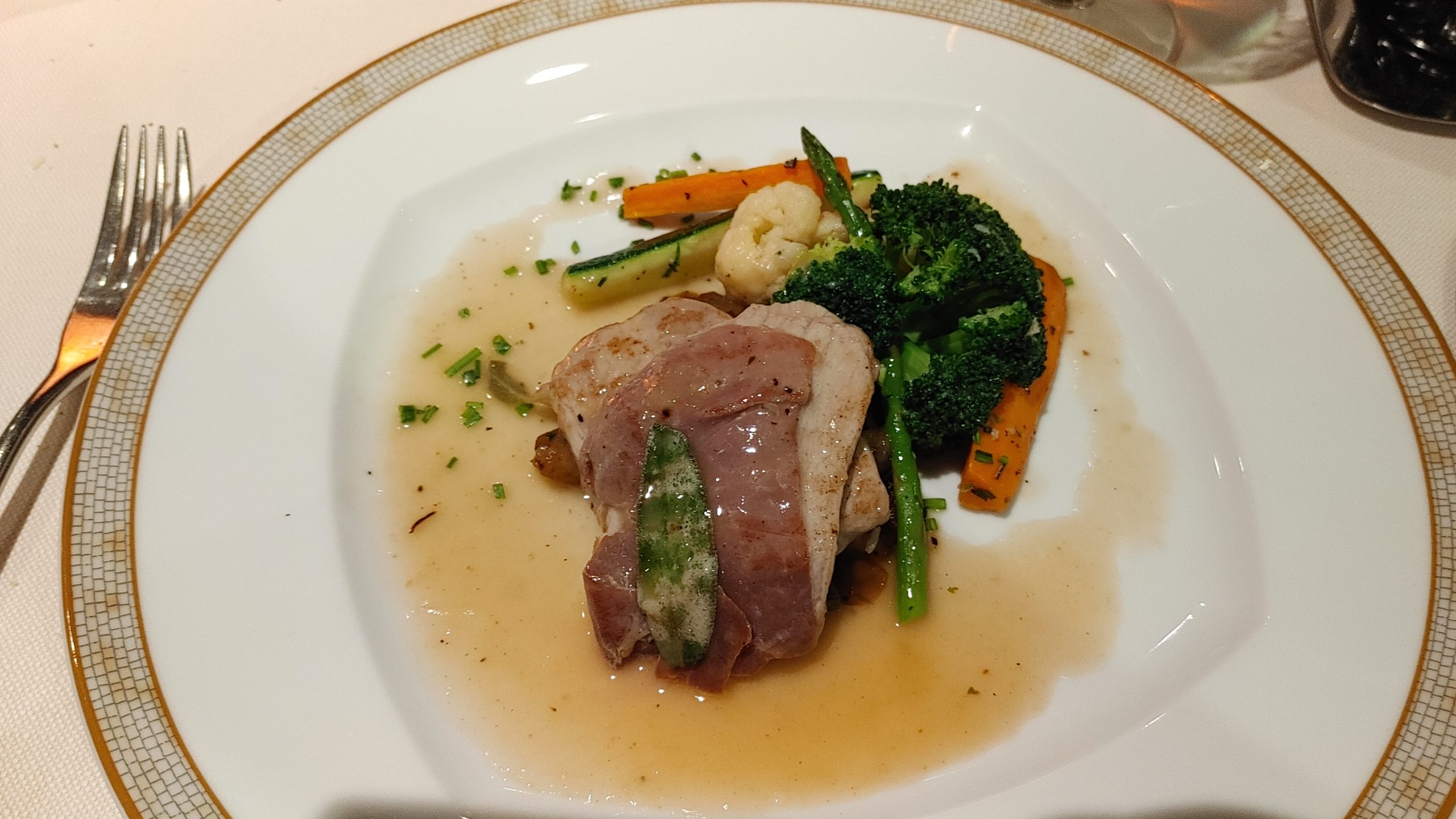 La Terrazza serves as the quick serves and sit down restaurant for breakfast and lunch, but transforms into an authentic Italian eatery in the evenings. For breakfast, I love to have salmon or smoked halibut. I never have fish for breakfast at home, but it seems to be a regular on many cruise ships. The quick service area was not self serve, it was point at it and they serve it to your plate. At night we enjoyed specialties such as saltimbocca, gnocchi’s, and several other fantastic pasta dishes. We even sprang for a bottle of a connoisseur wine. On one of of last sea days, they featured a seafood extravaganza, kind of like one gets on a seafood tower at a major steakhouse.