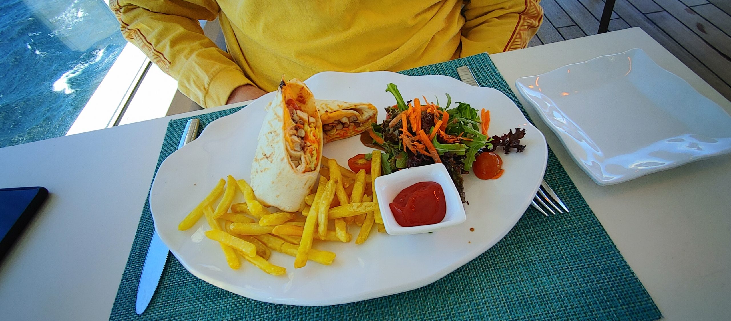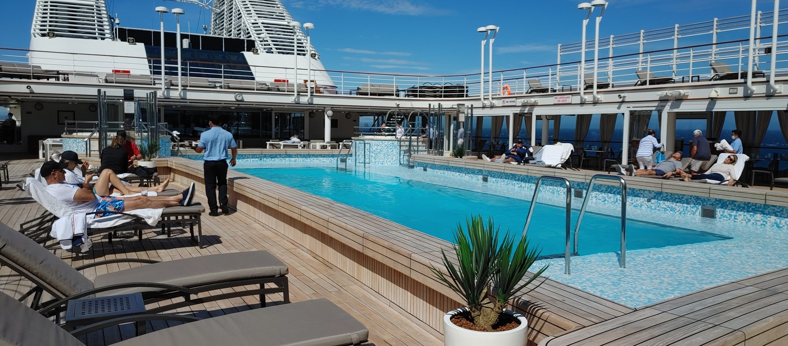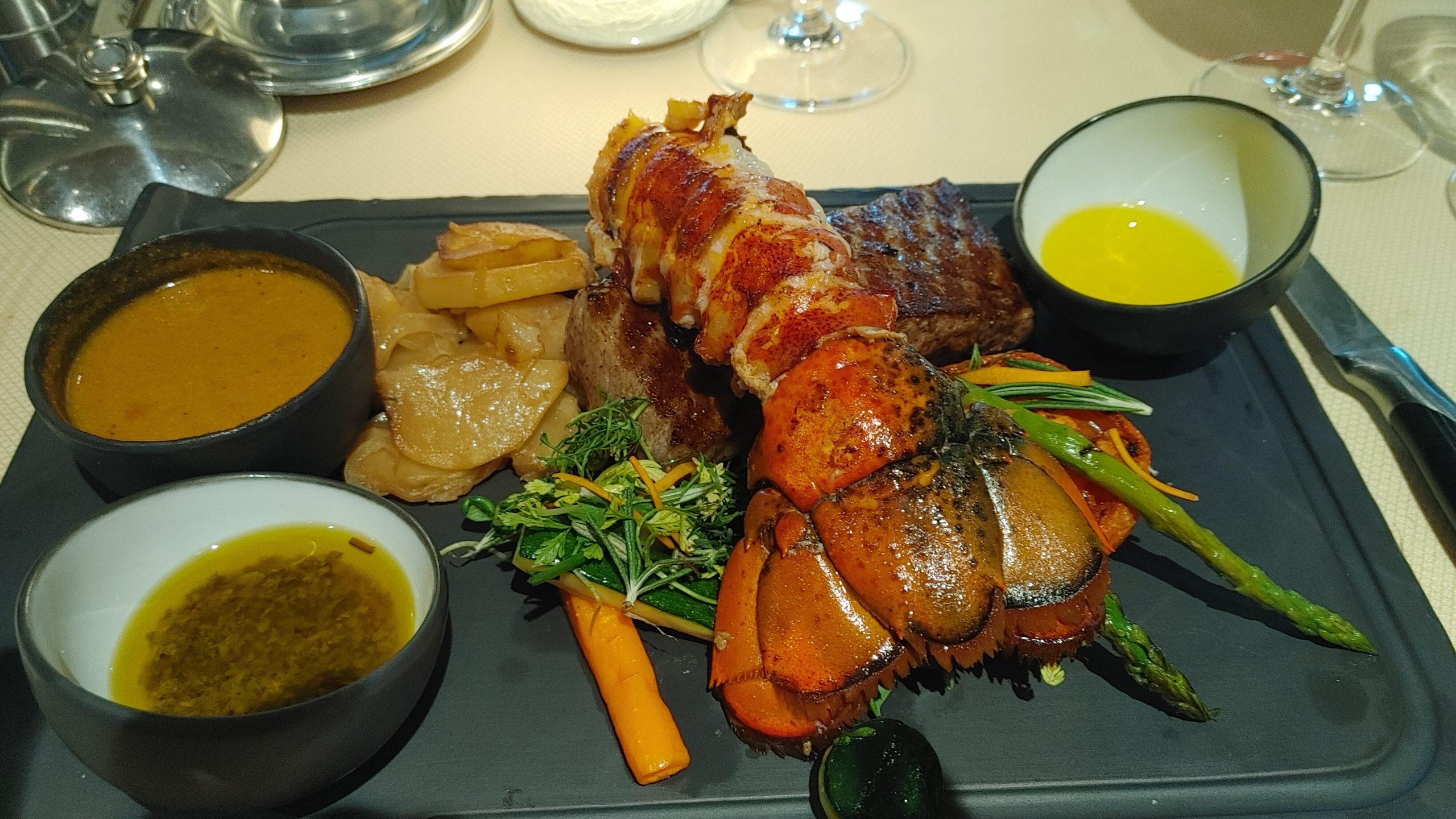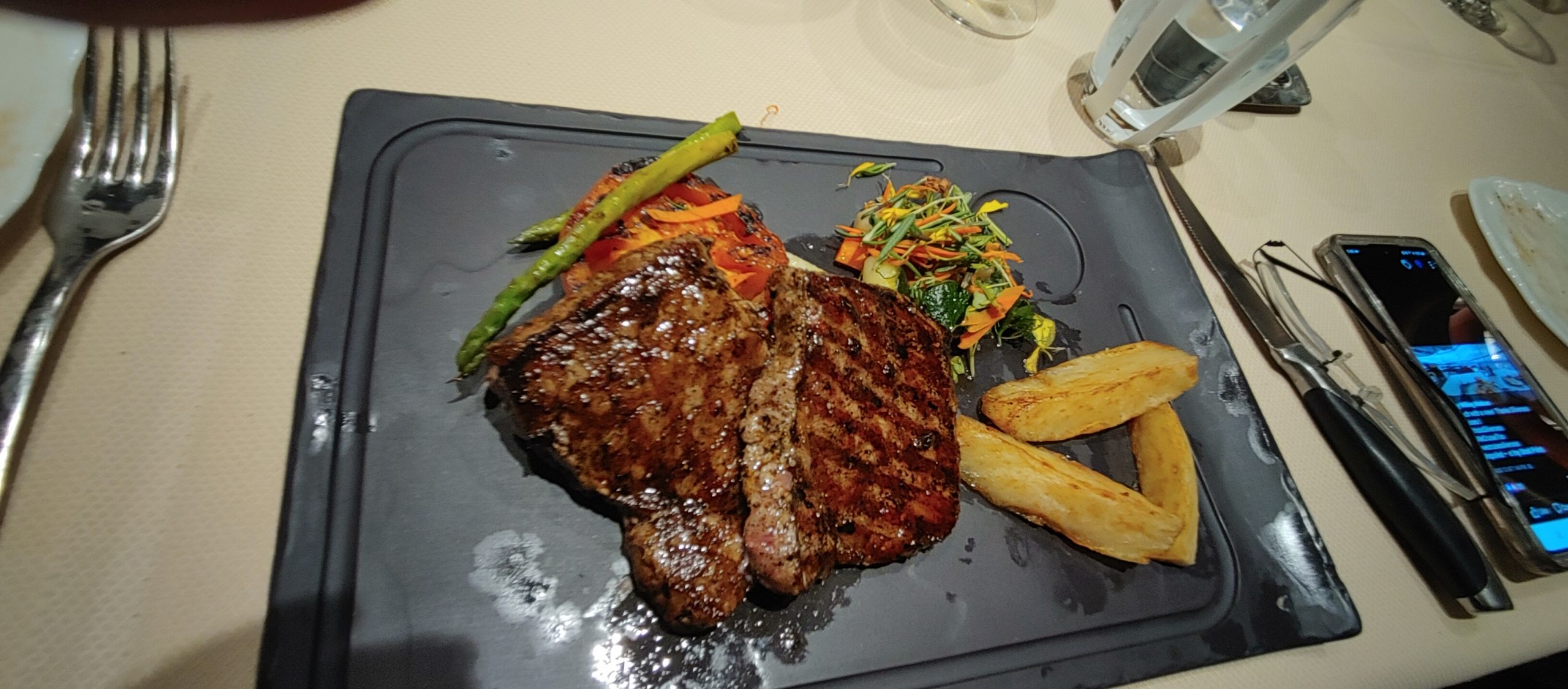 La Terrazza serves as the quick serves and sit down restaurant for breakfast and lunch, but transforms into an authentic Italian eatery in the evenings. For breakfast, I love to have salmon or smoked halibut. I never have fish for breakfast at home, but it seems to be a regular on many cruise ships. The quick service area was not self serve, it was point at it and they serve it to your plate. At night we enjoyed specialties such as saltimbocca, gnocchi’s, and several other fantastic pasta dishes. We even sprang for a bottle of a connoisseur wine. On one of of last sea days, they featured a seafood extravaganza, kind of like one gets on a seafood tower at a major steakhouse.