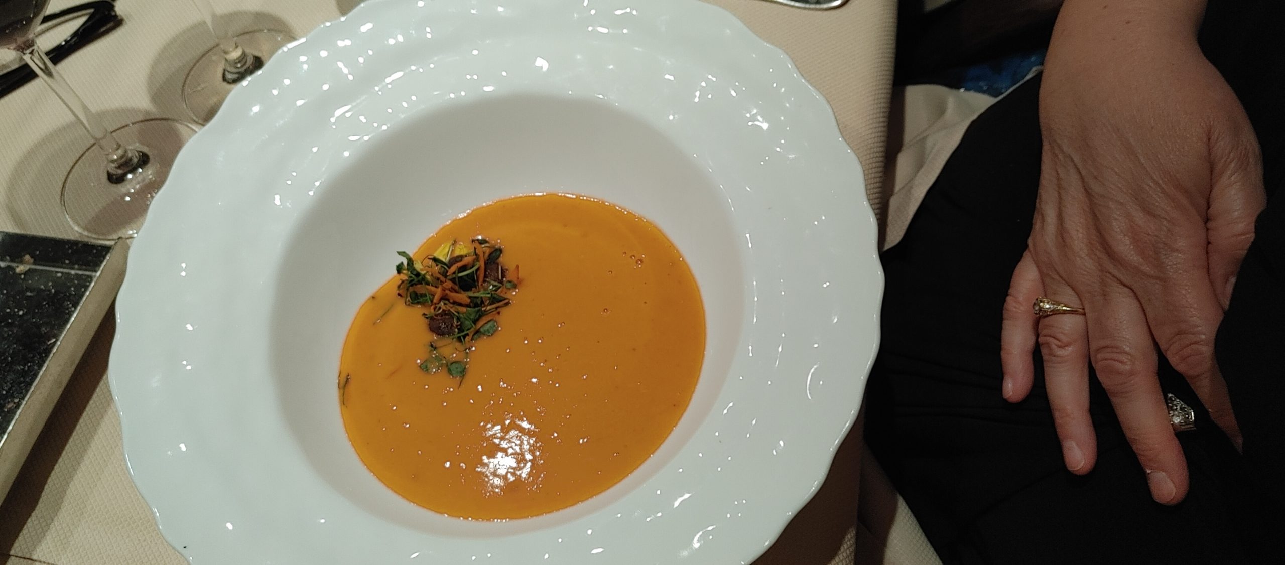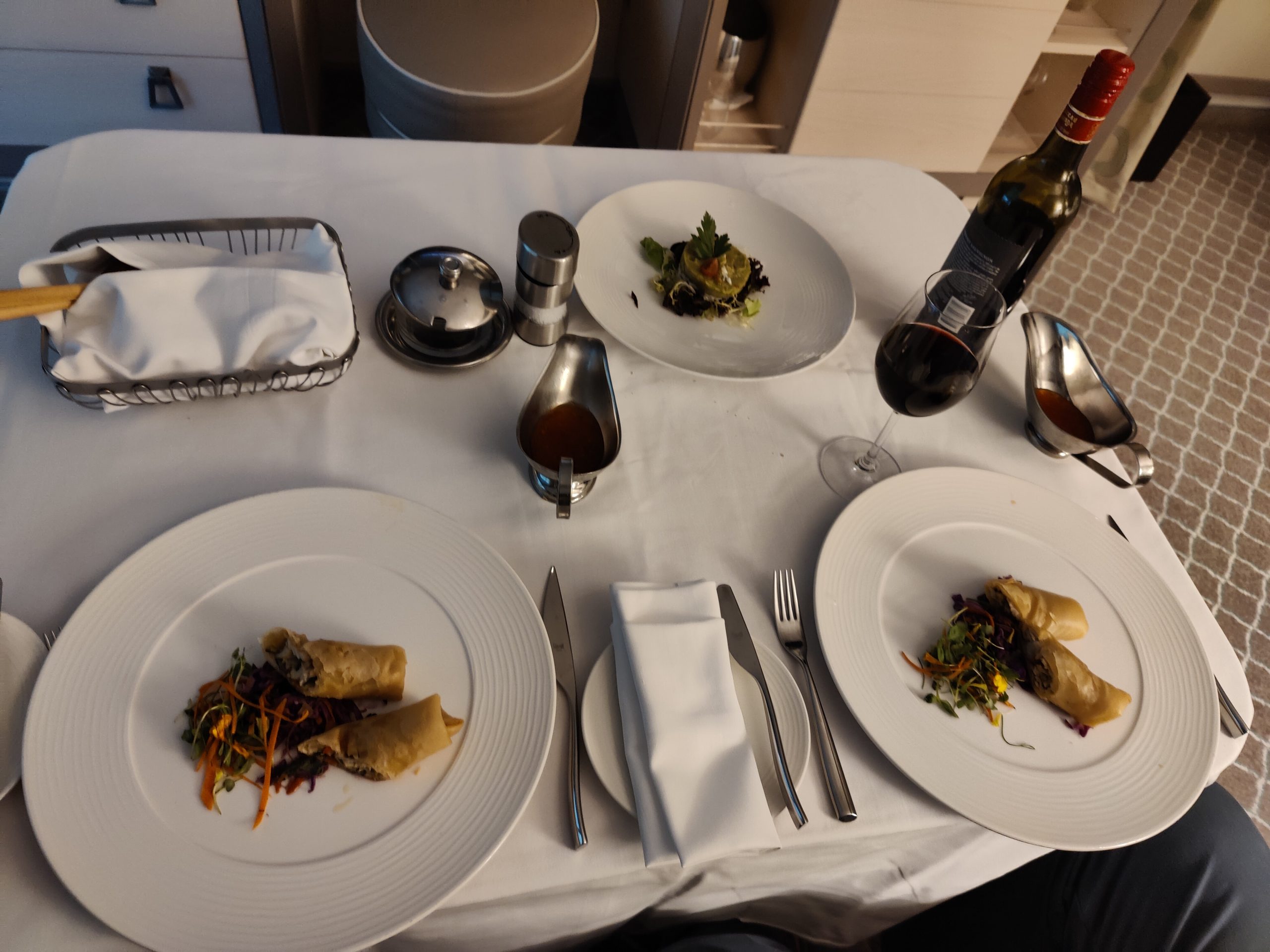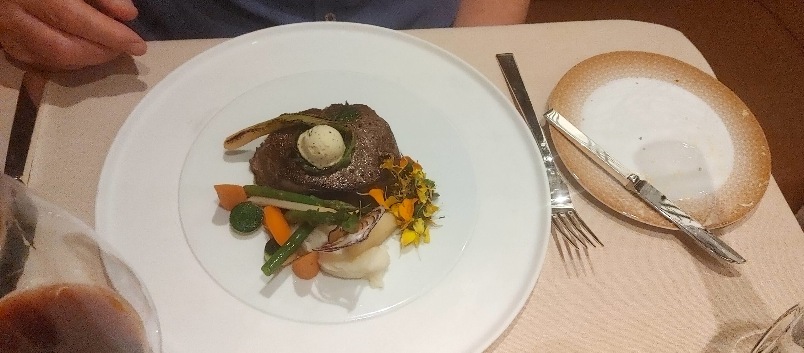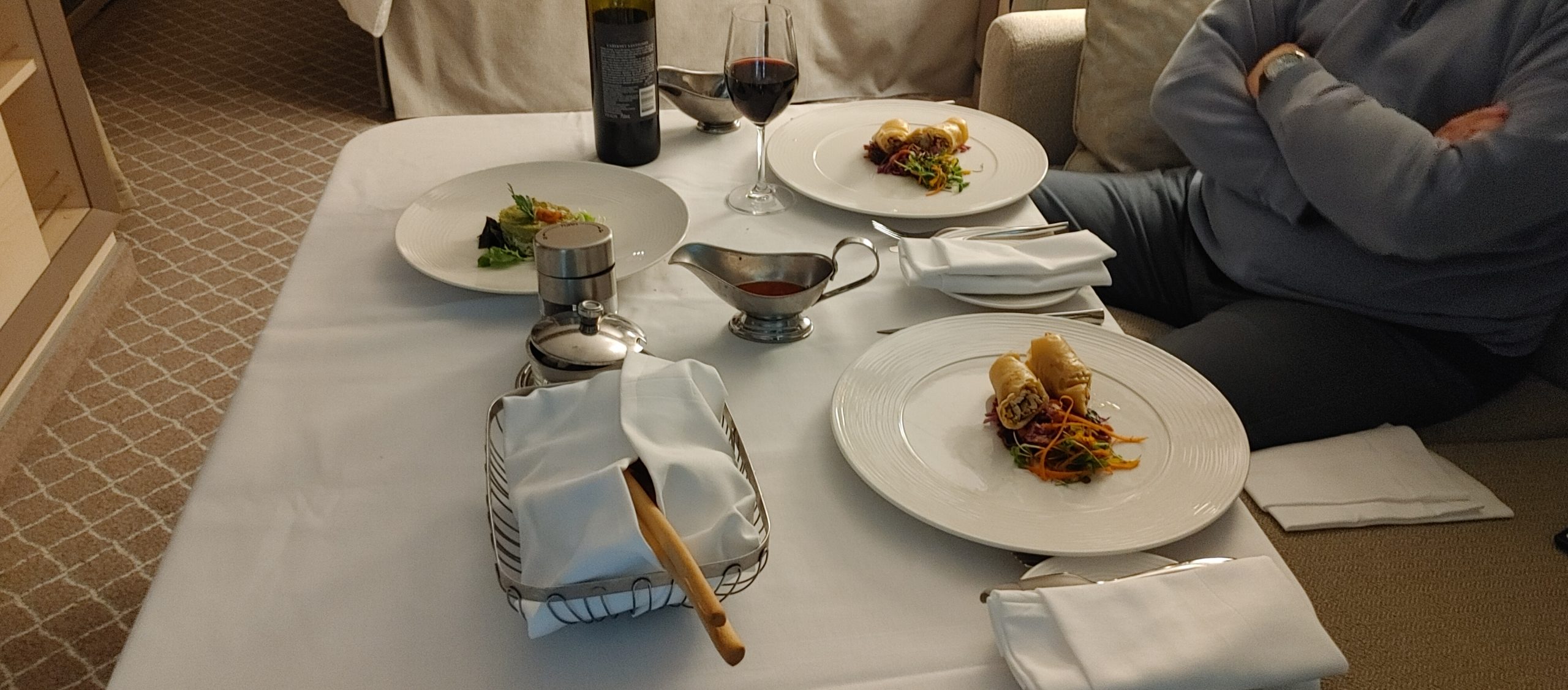 Room Service: Finally, the in room dining is a great experience on Silversea. The butler places a larger table top onto the coffee table in the room giving guests a full size table from which to eat. Then he brings the courses one at a time on the guests schedule. We enjoyed the movie “The Courier” starring Benedict Cumberbatch as we enjoyed our dinner in our room. The menu can be displayed on the in room entertainment system and the Lorenzo our butler came and took down our order. Much more personalized than ordering over the phone. This was such a relaxing and worry free way to spend an evening.