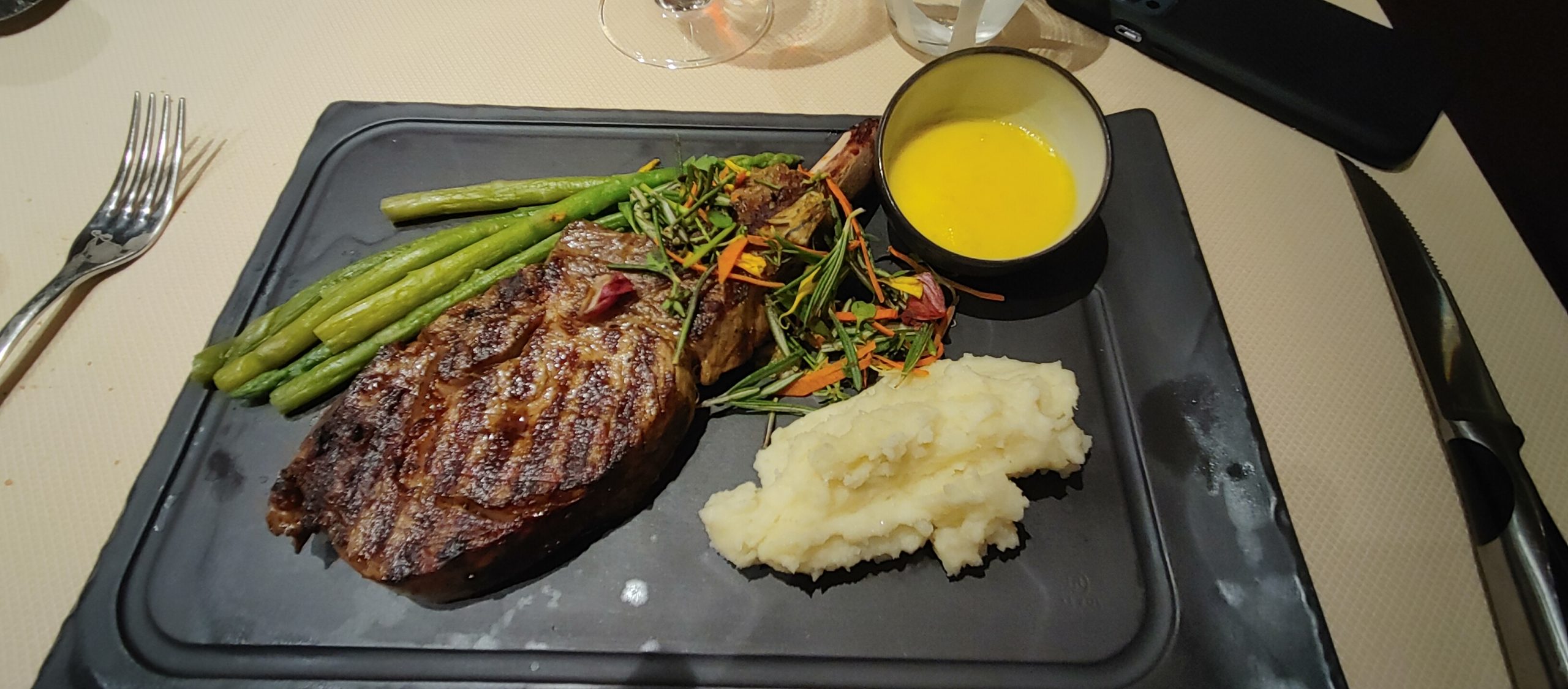 Atlantide is a Steak and Seafood restaurant with steak and seafood styles from all over the world. The first night we ate there we enjoyed steak and lobster, as well as some great wine. We also enjoyed a farewell dinner with our host at Atlantide when we had steak and veal along with sever other imaginative courses including a goat cheese and greens salad, mushroom and scallop soup, and a fun take on lemon meringue pie.