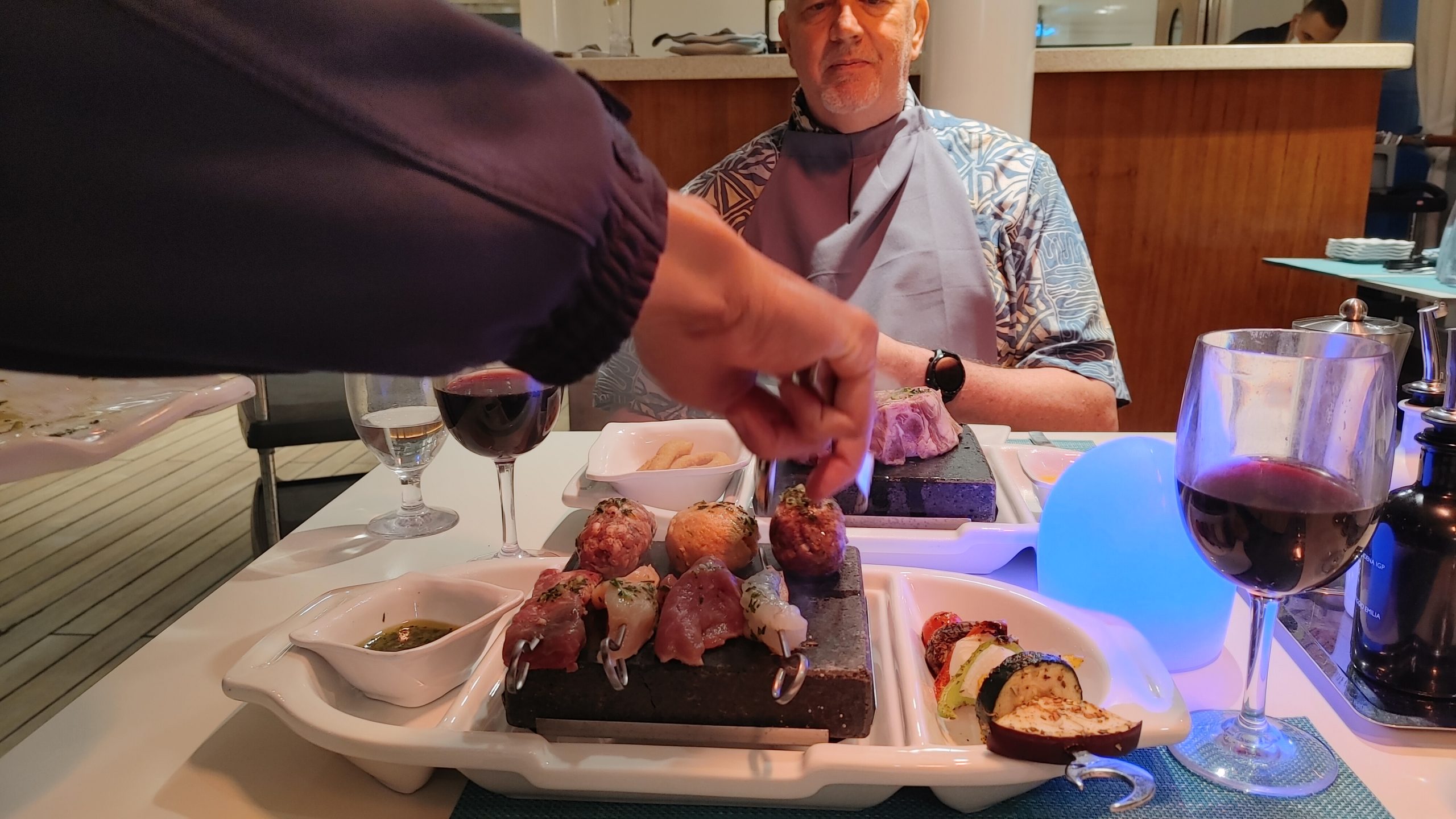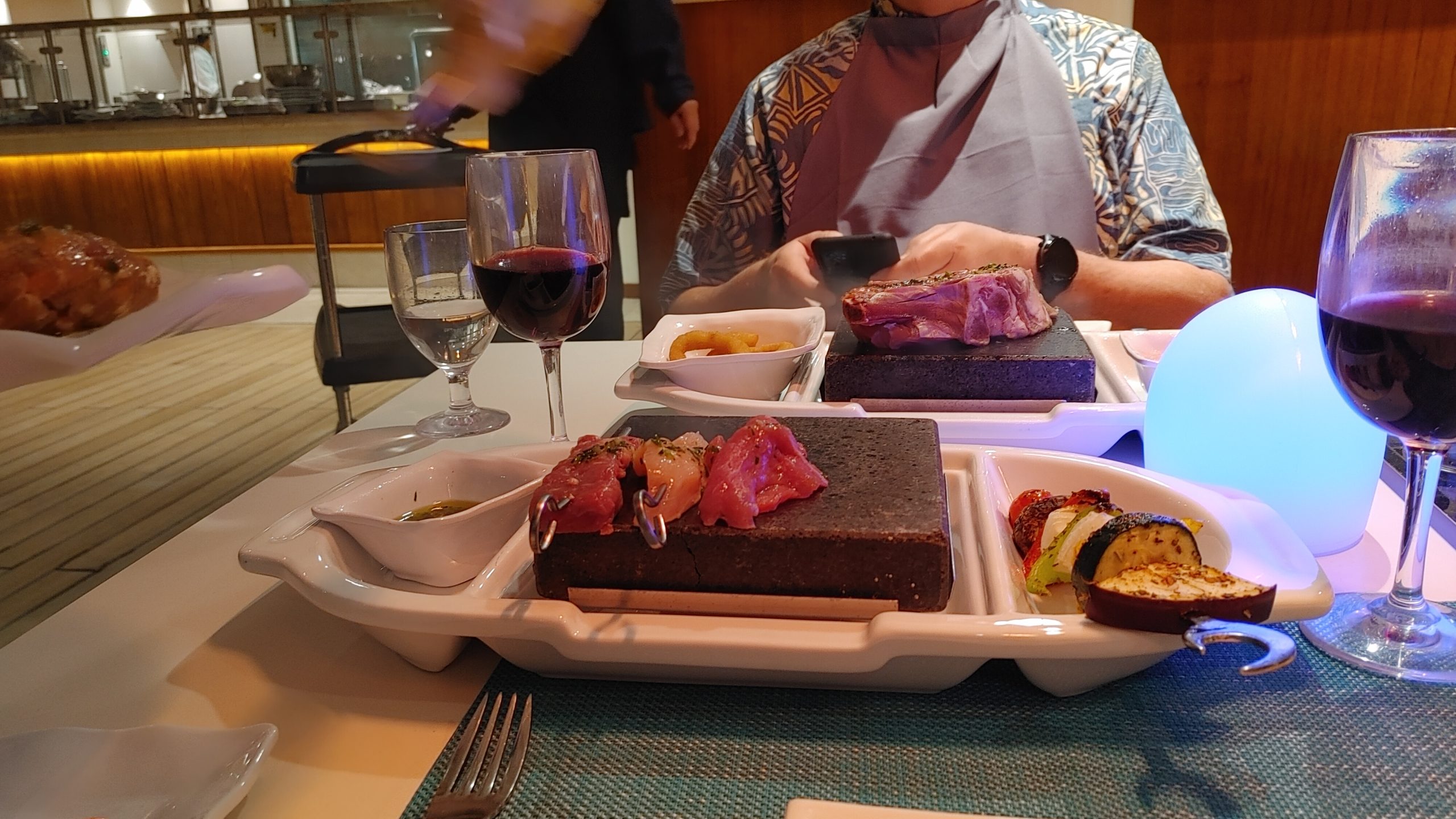 The Grill/Hot Rocks serves casual fare like wraps, salads and burgers during the day and then turns into the Hot Rocks concept in the evening where guests are served food with a hot lava rock and cook their own food on the rock at the table.