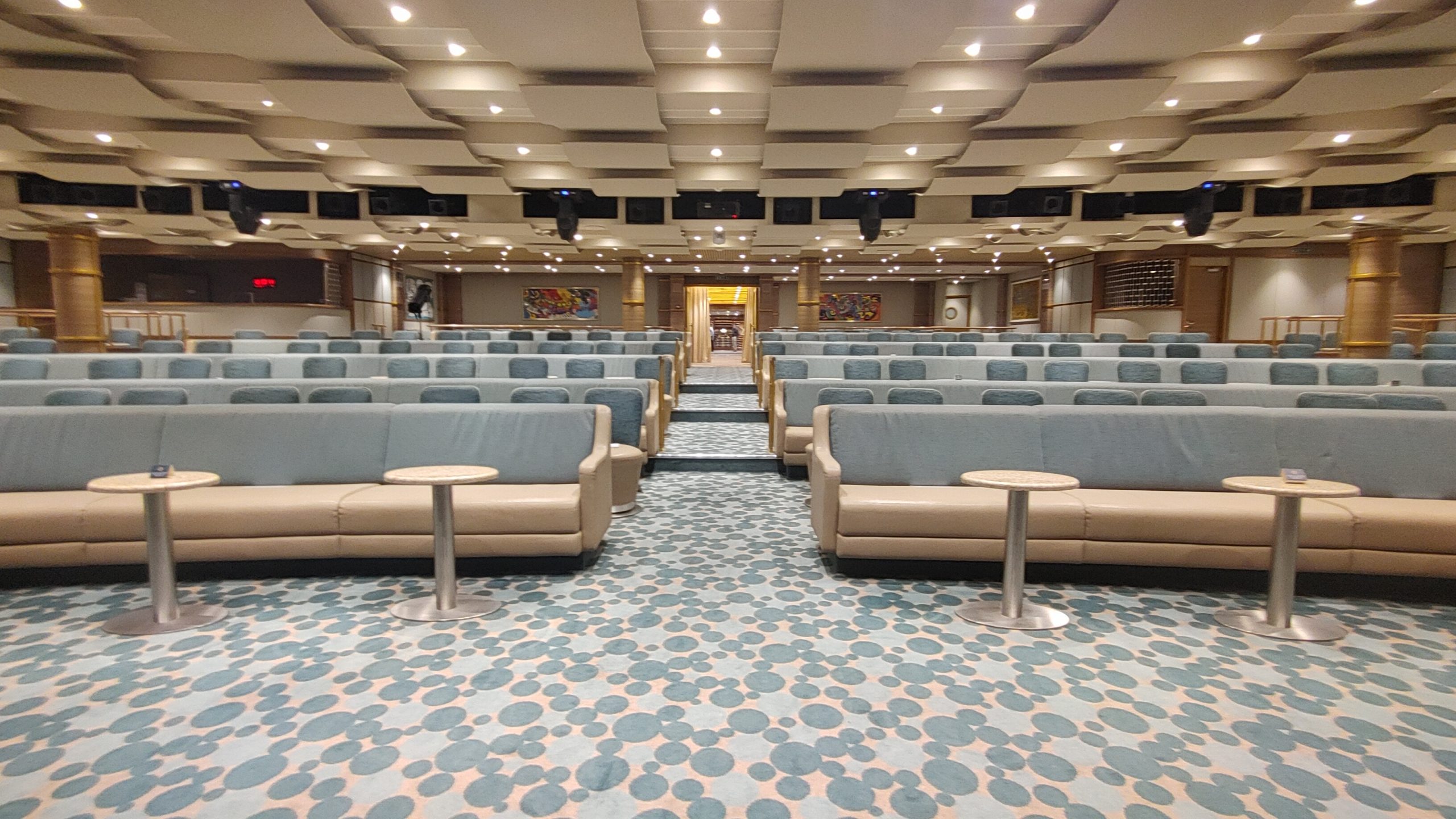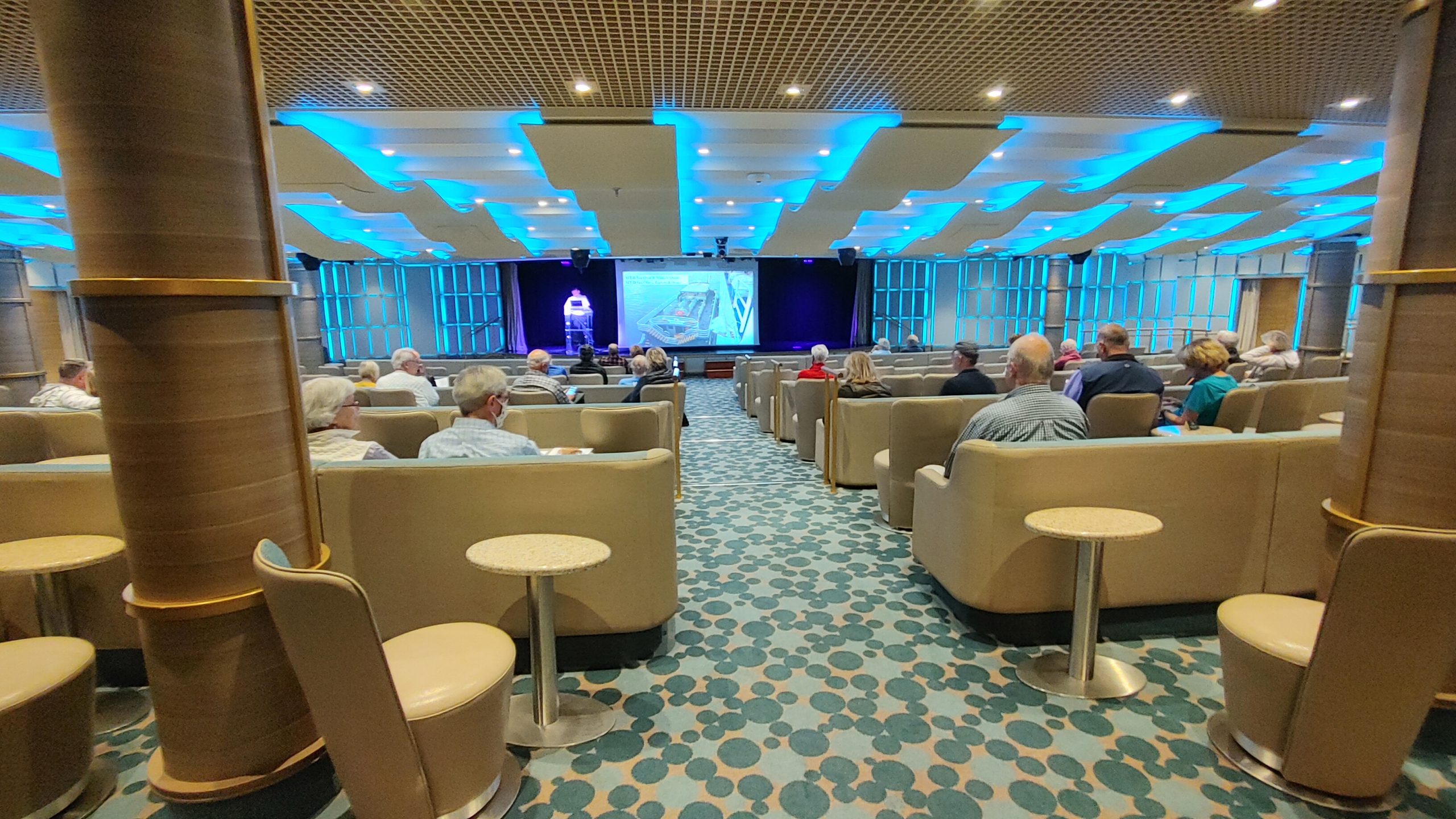 The main entertainment area of the ship was Deck 5 which featured the lounge area La Dolce Vida and the Venetian theaters. Daily team trivia hosted by the cruise director Rico, was held each afternoon. Forming a team and playing along every day was always fun for those who attended. On the back of the ship was the Venetian Theater which hosted both enrichment lectures and evening production shows.