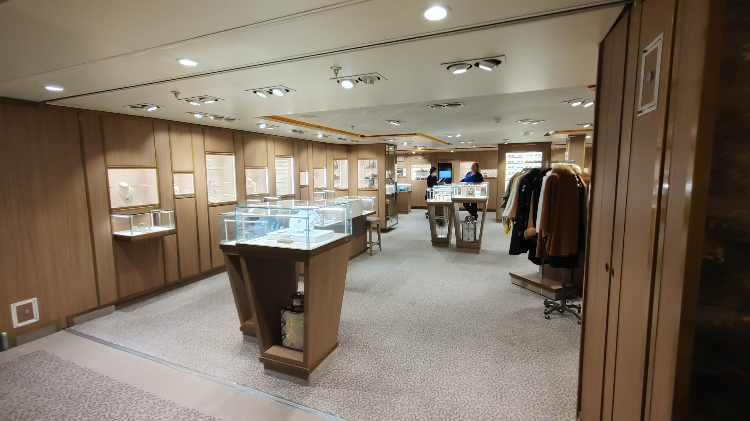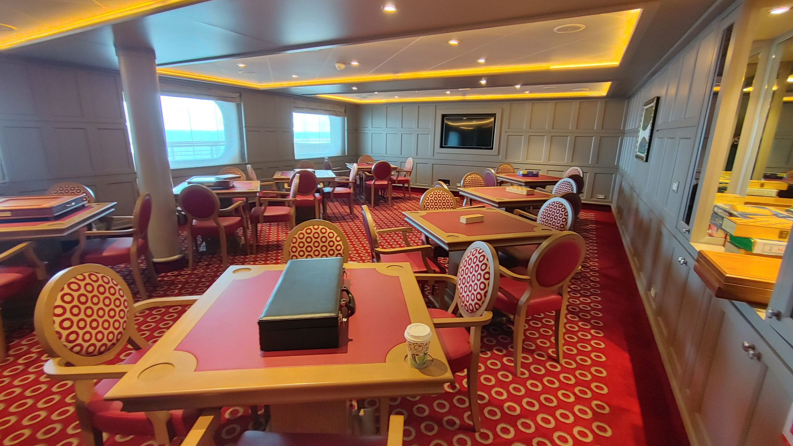 Deck 8 featured the shops including a fine jewelry shop, and ship wear shop, the art lounge which featured specialty coffee and a variety of snacks. Next was the Connoisseur Lounge, an indoor smoking lounge with Cigars and Fine Liquor. The door to this lounge was always shut and your could not smell smoke even just outside the door. There was also an outdoor smoking area just outside, again on the aft of the ship so that you did not smell it anyplace else.