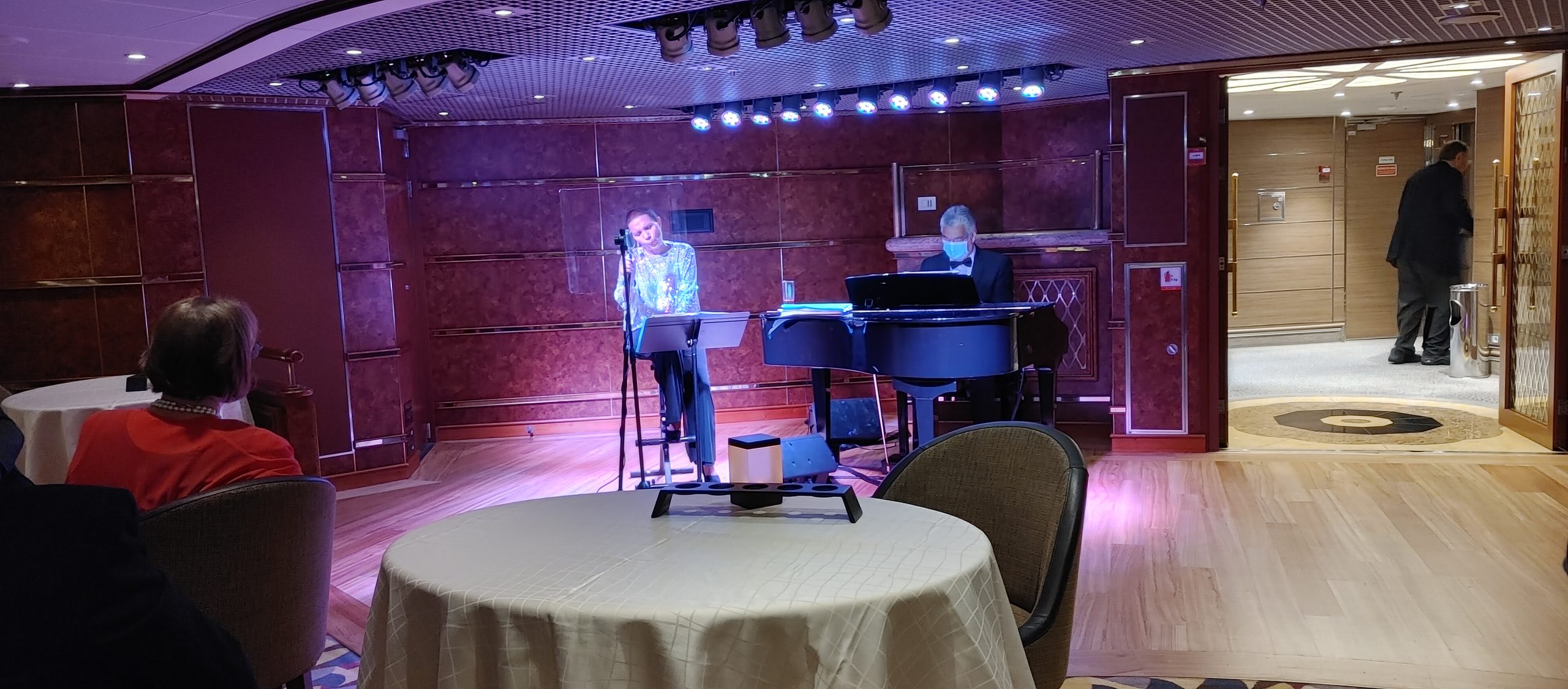 Entertainment – Entertainment on this ship was small ship cabaret style shows, a classical/jazz guitarist, a pianist, a music trio and a DJ. There were six singer/dancers that performed several production and cabaret style shows. Two of the singers were trained opera singers who did one featured night with live pianist of opera selections. Other nights featured different singers in their own solo show. One performer did Broadway and Westend, another performer did Frank Sinatra and Michael Buble style songs. These were very talented vocalist who stood on the talent of their vocals rather than a big production and flashy sets and arrangements. My other favorite performers on the ship were the Jazz Duo that performed jazz classics and jazz takes on more modern songs in the Silver Note venue. This was like a New York style jazz club that had a dining option, or guests could come in listen after dining hours and enjoy a drink.