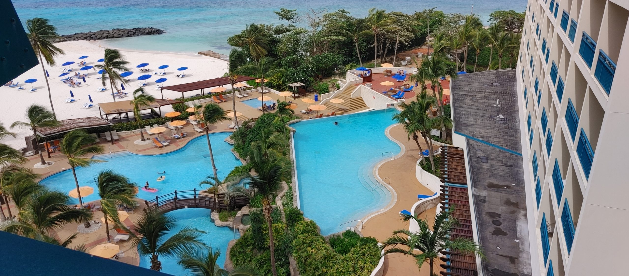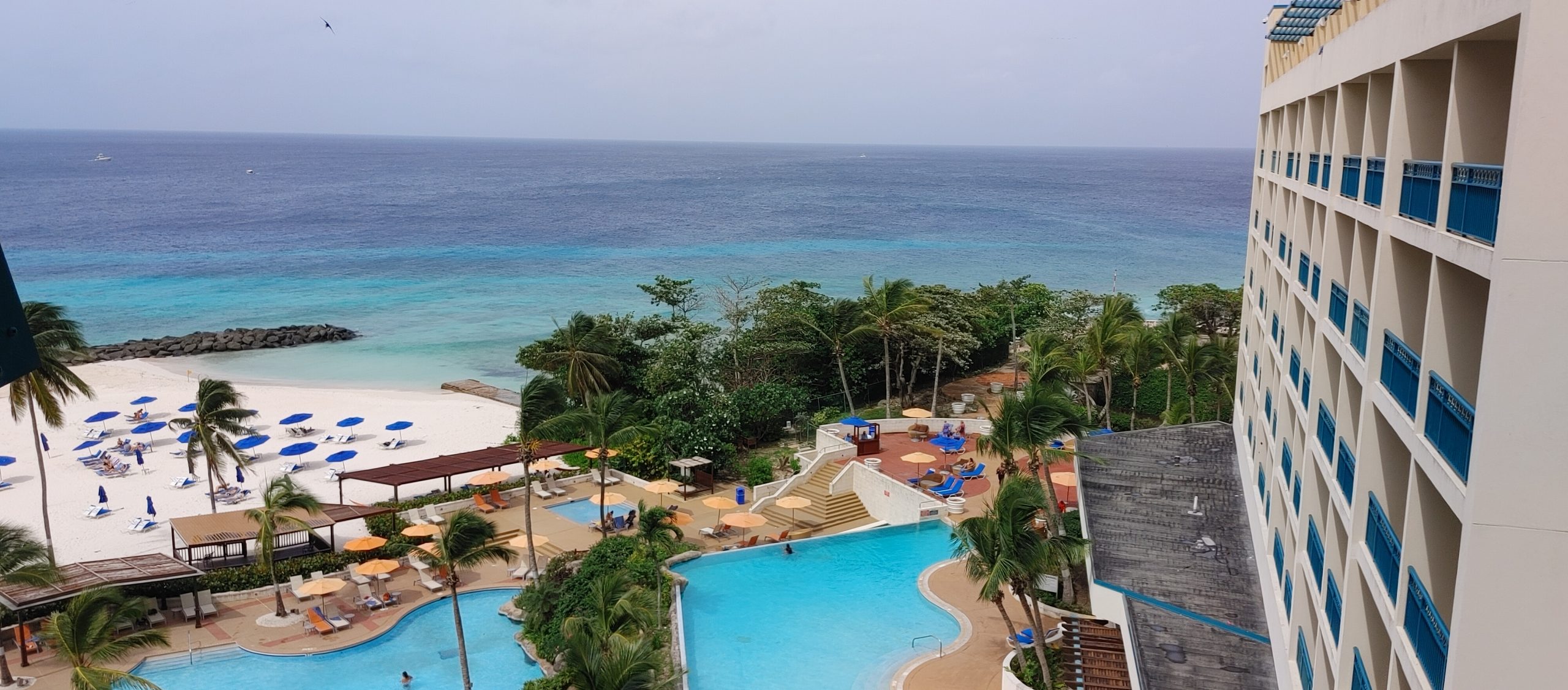 For our first two days at the resort the water was sargassum (seaweed) free, but on the third day, the south beach at the resort has some wash up. Sargassum has plague beaches in the Caribbean over the last 7 to 8 years, as it ruins the appearance and the the smell of the beach. With the Hilton being located right on Needham’s Point, one of the beaches faces south, and the other beach faces West. The west beaches were unaffected. The pictures below are of the south beach before the sargassum rolled in the morning of our third day. I don’t thing these beaches are heavily affected like the beaches we saw on the East coast on the day we disembarked the ship.