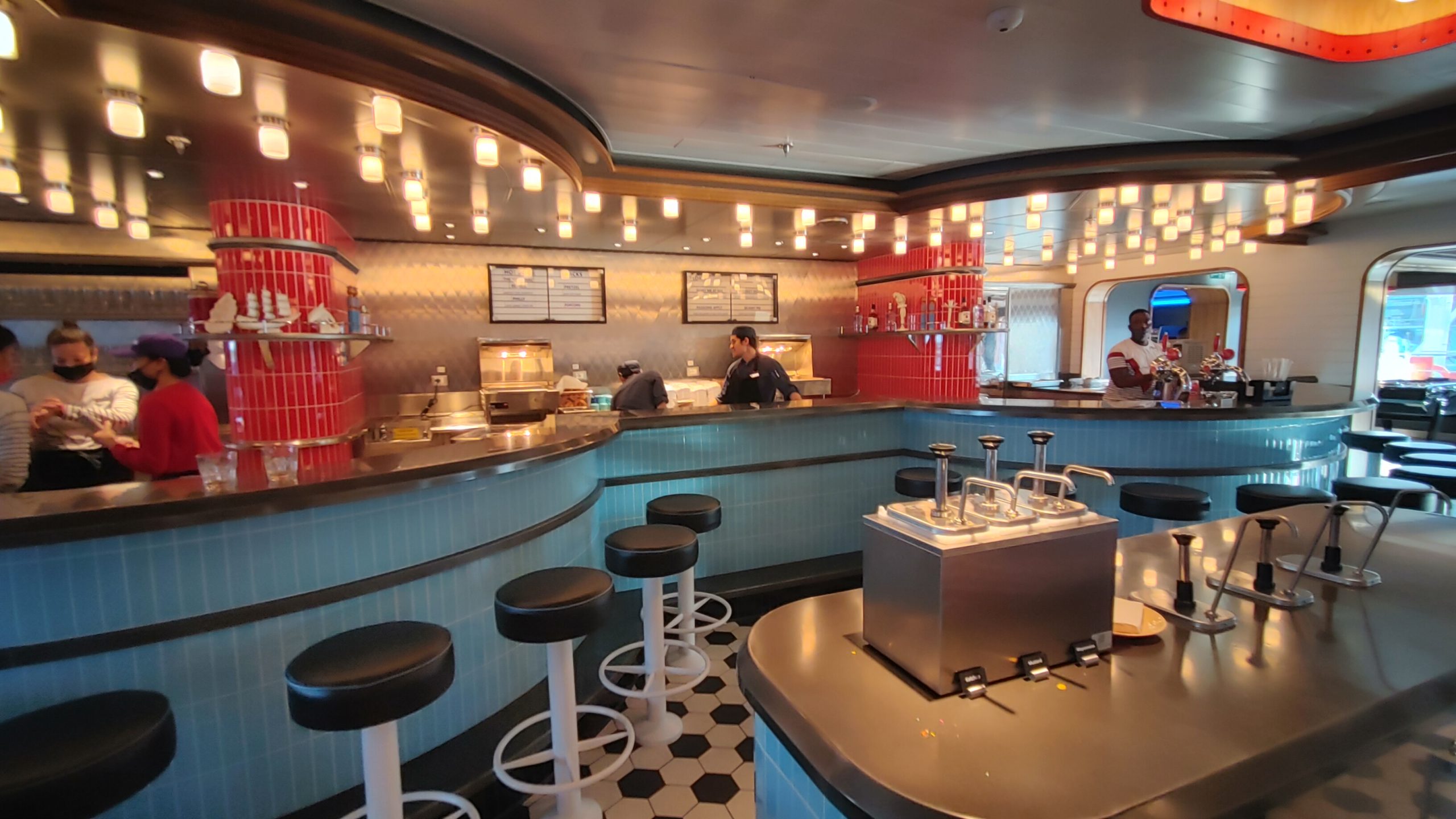 I would have to say that overall I liked the décor of the ship that ranged from stark and industrial to warm and welcoming. The state rooms had a dorm room vibe, which might be good for the younger folks. The Dock House on deck 7 particularly comes to mind as warm and inviting with its Mediterranean nautical decorations. All of the dining venues had engaging décor that was on them for the venue. They seemed to run our decorating budget in the elevator areas. They were very plain, stark, and reminded me of a hospital hallway. There will be a separate review of the dining venues with more pictures but here are some shots of the general décor of those venues.