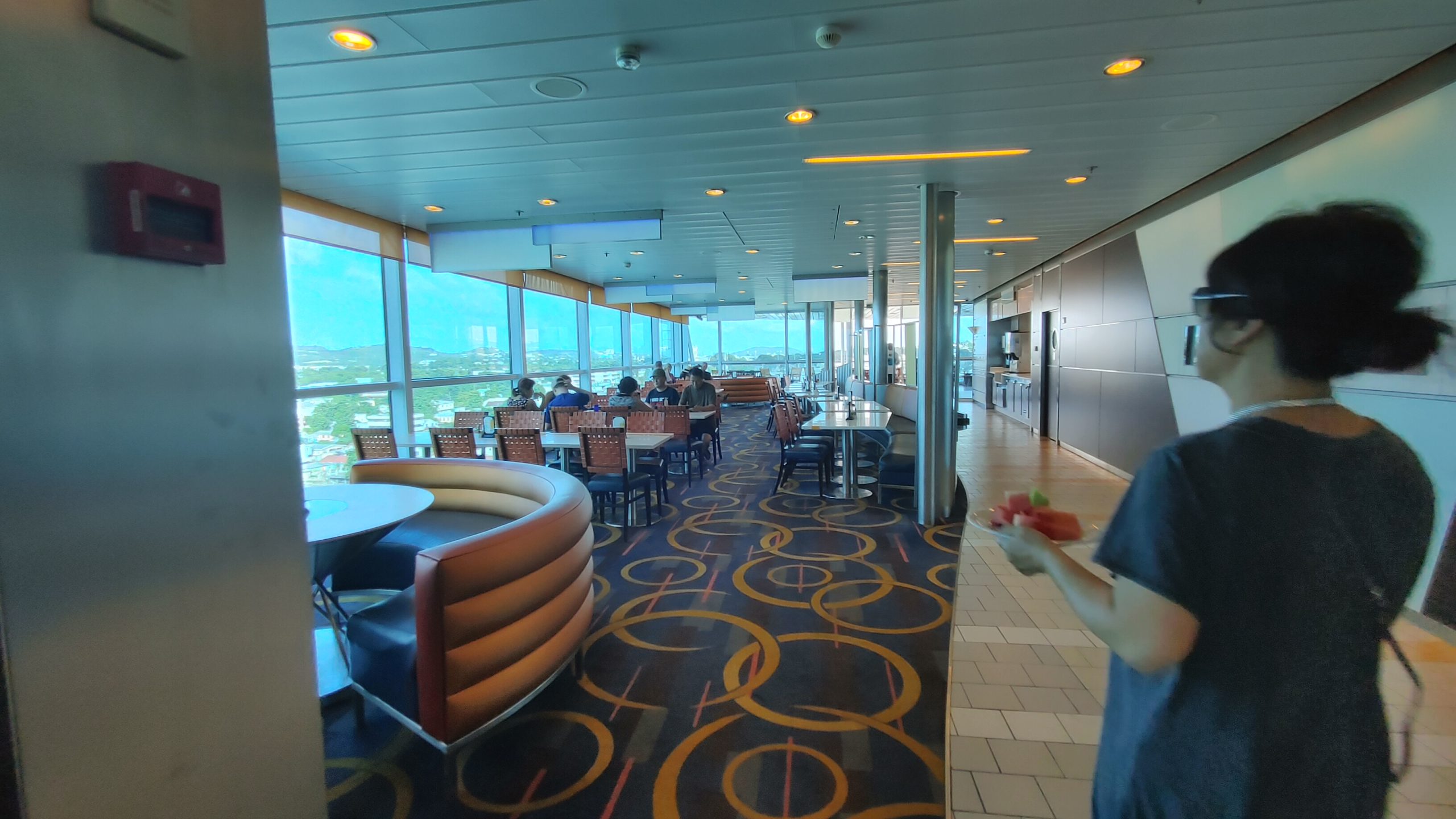 There were a wide variety of options including Asian, India, Italian, English, Mexican and Continental Gourmet. You could also eat very clean in this venue with grilled proteins and vegetables if you wanted to forgo sauces and carbs. Wonderful desserts were presented everyday. This venue is also partially open for dinner. When we were watching the football down in the Craft Social, I came up here with one of the ladies to bring pizza down for everyone to enjoy. The manager in charge that night even helped us get three pizzas and a stack of plates to bring down for everyone in our football watching party to enjoy.