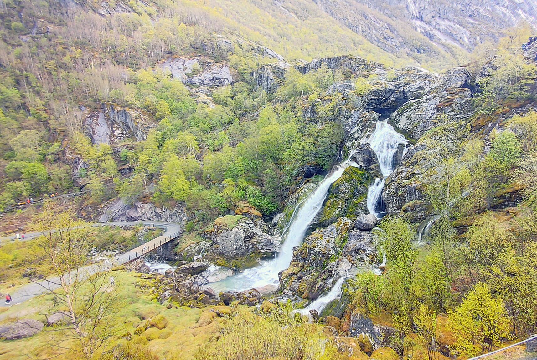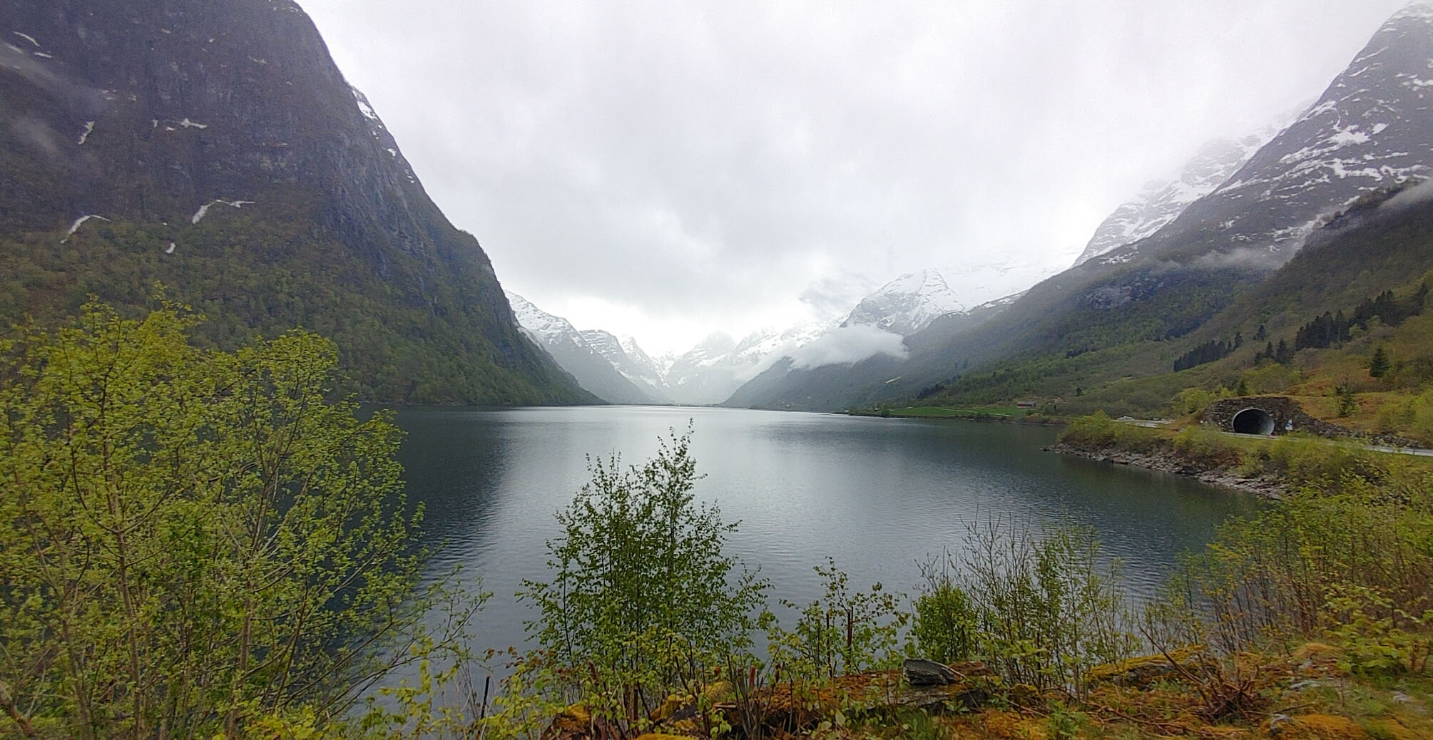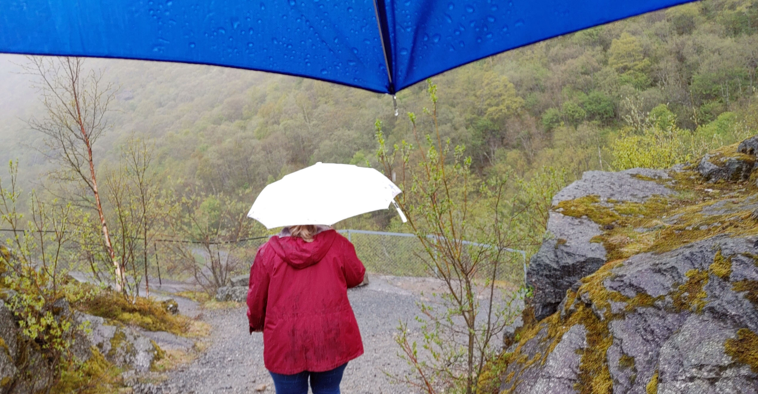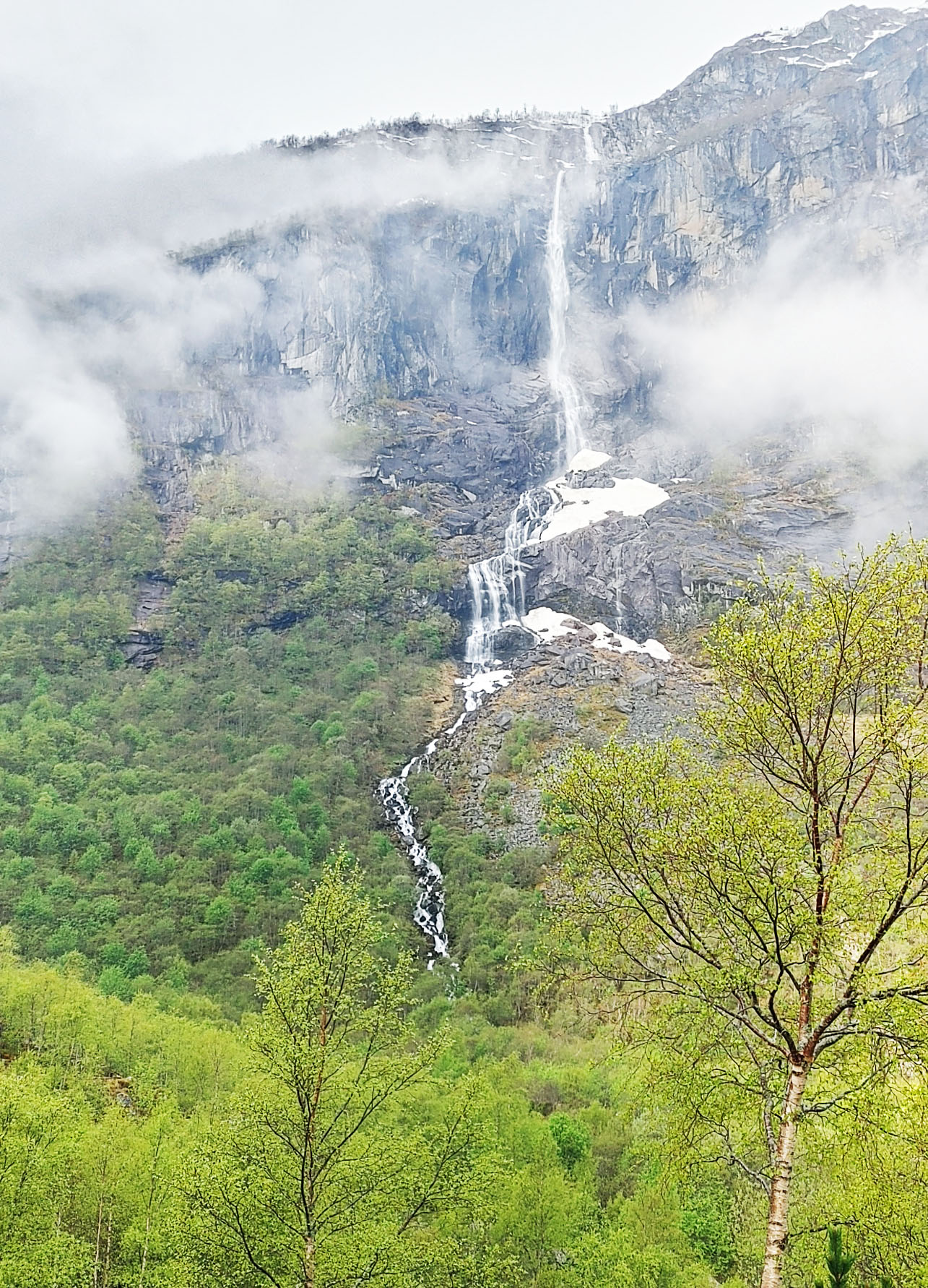 Norwegians have a saying “There is no Bad Weather, Just Bad Clothing”. Good clothing for this day included a raincoat and a umbrella as we got light rain off and on during the hike. Even so, we were treated to the beautiful scenery of the gorge carved out by the glacier over thousands for year, multiple waterfalls and a beautiful lake at the top of the hill below the glacier. The water in the lake is said to be so pure that you can fill up your water bottle and drink it straight. I could not confirm that in any of my research, but several folks in our group did this and didn’t get sick. It was pretty overcast for most of our journey, but you can see that even in the rain and clouds, the scenery was well worth the journey.