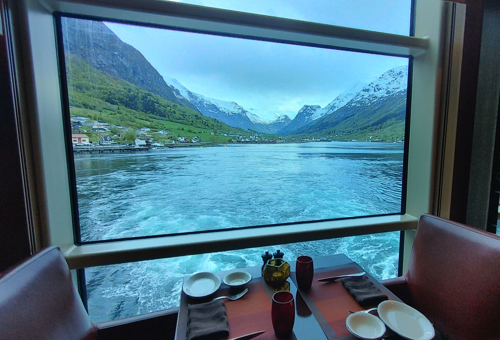 We had a lovely wine tasting and sail away in the Tuscan Grille, which allowed us to enjoy some more of the scenery from this fjord.