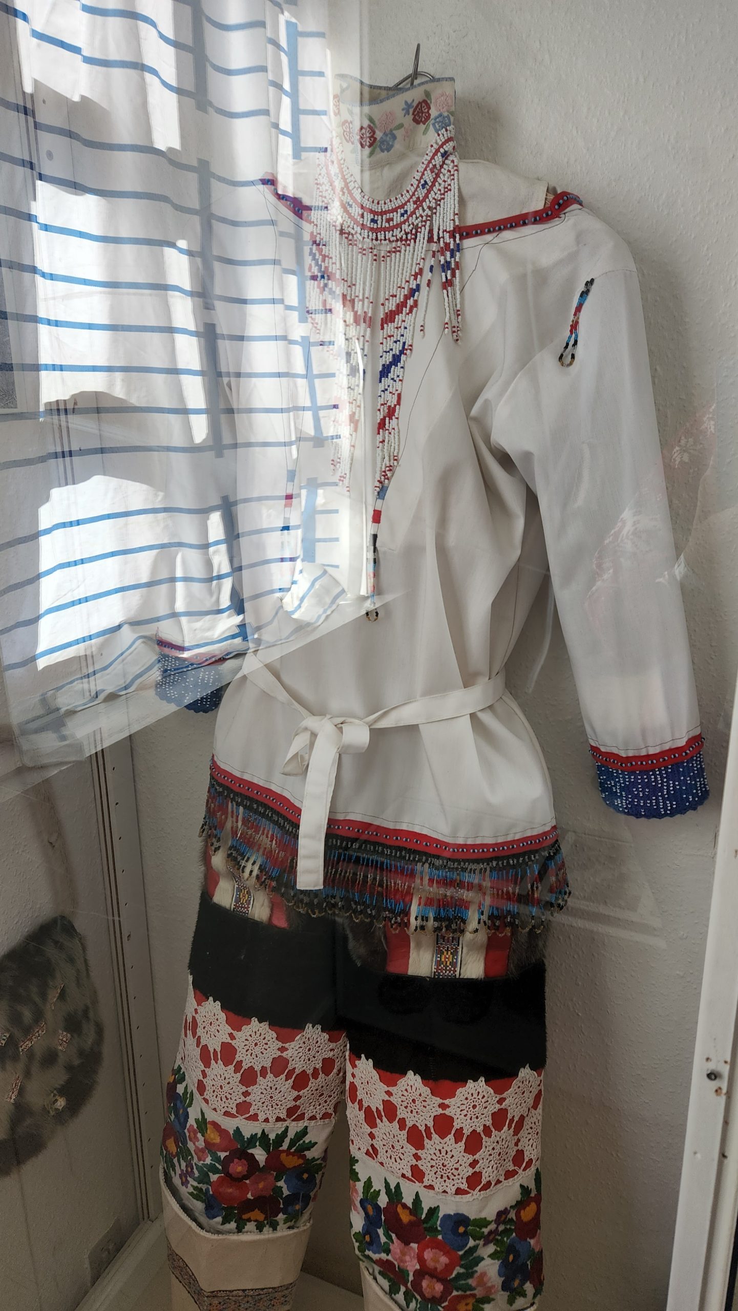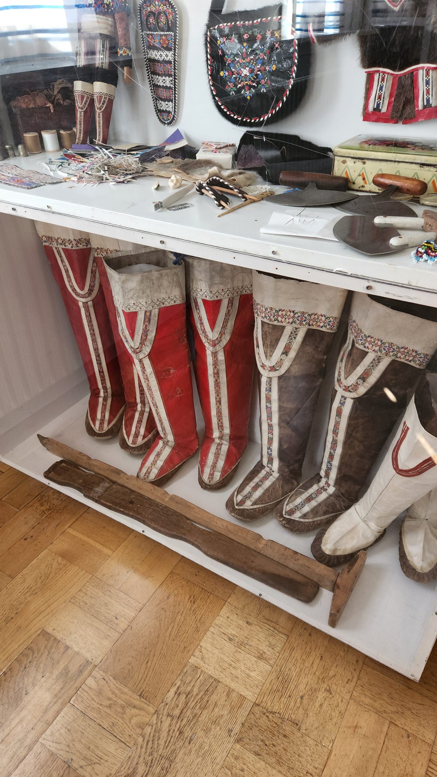 Truly the most meaningful part our day was the visit to the Inuit culture museum. They have a formal museum with displays about the town and the area. There was an admission charge of $10 or 10 Euros or 30 Danish Krona to enter the museum section of town. It as kind of funny because there were private homes in this area too but the museum docents had a little gate across the street where they collected the admission fee. My friend Jill and I are museum people and our husbands are not so much, so just us girls went into the museum, which we felt was well worth admission. We climbed a little watch tower to take some great panoramas of the town.