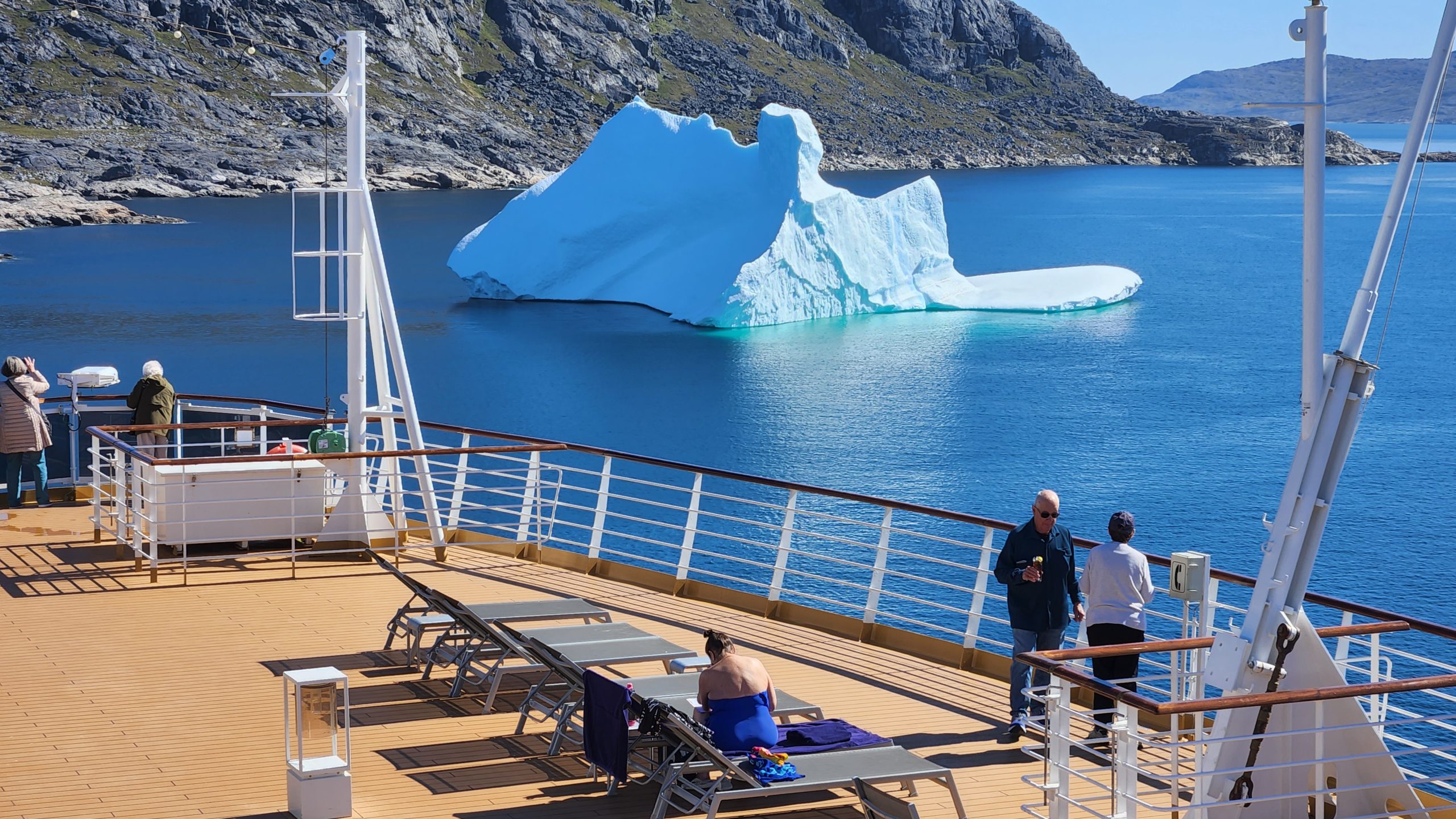 After returning to the ship we loved sailing through the iceberg filled channel headed toward the Labrador Sea and back to Canada. I was working most of the afternoon, but thank goodness my desk was right by the balcony window when I could get some spectacular shots of all the icebergs and mountains.