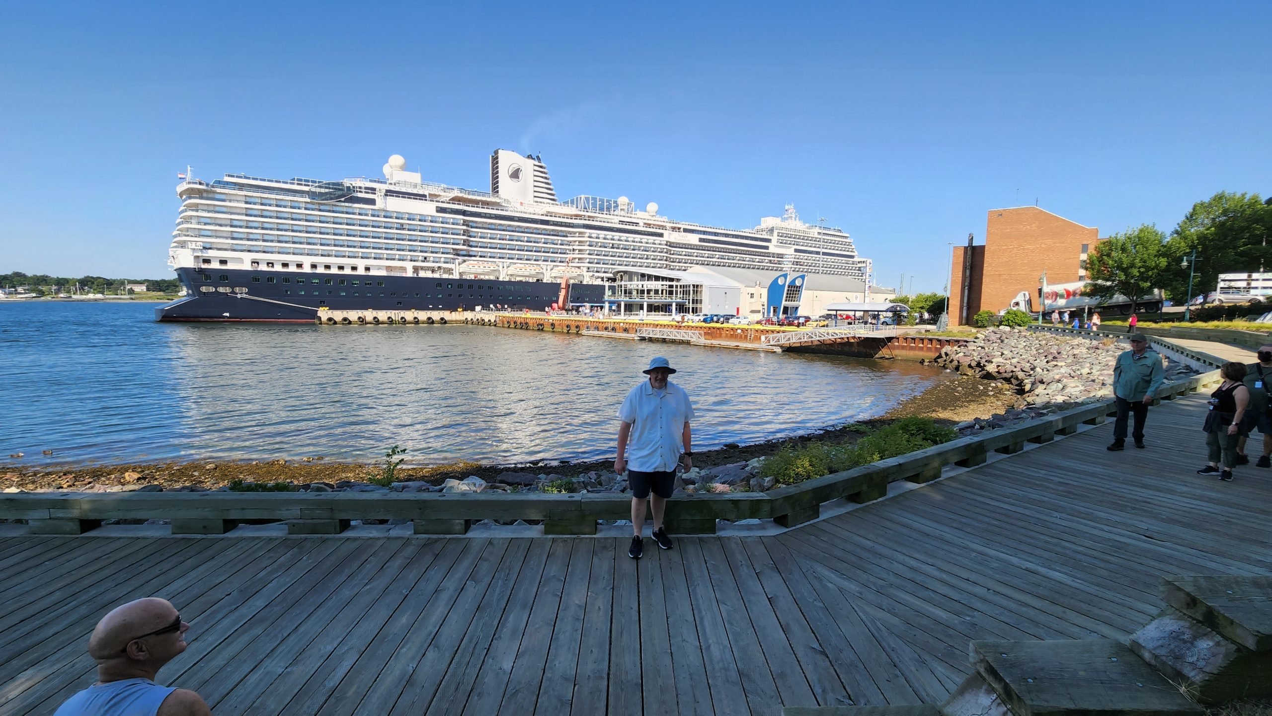 With a rich Celtic and Scottish heritage, Sydney, Nova Scotia (which means new Scotland) welcomes folks with great hospitality and is known for its wonderful musical heritage. That heritage is reflected in the giant fiddle which is right on the cruise ship dock. We enjoyed a scenic sailing into the harbor.