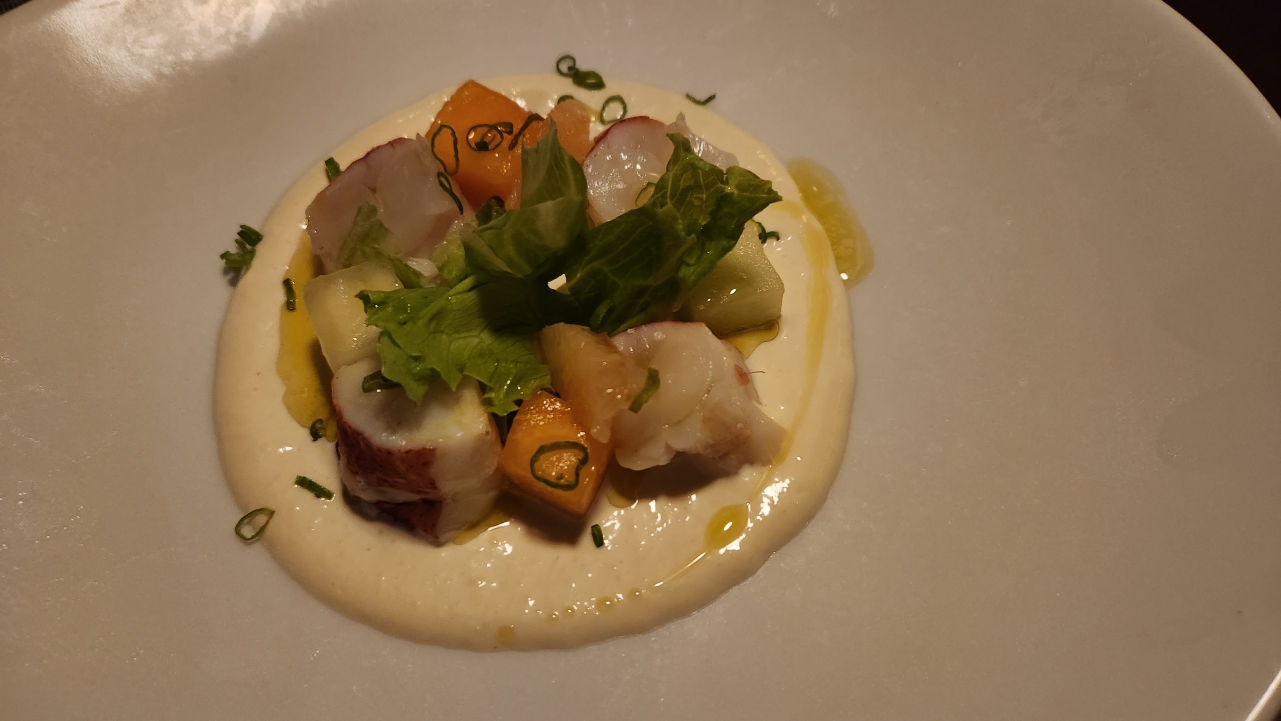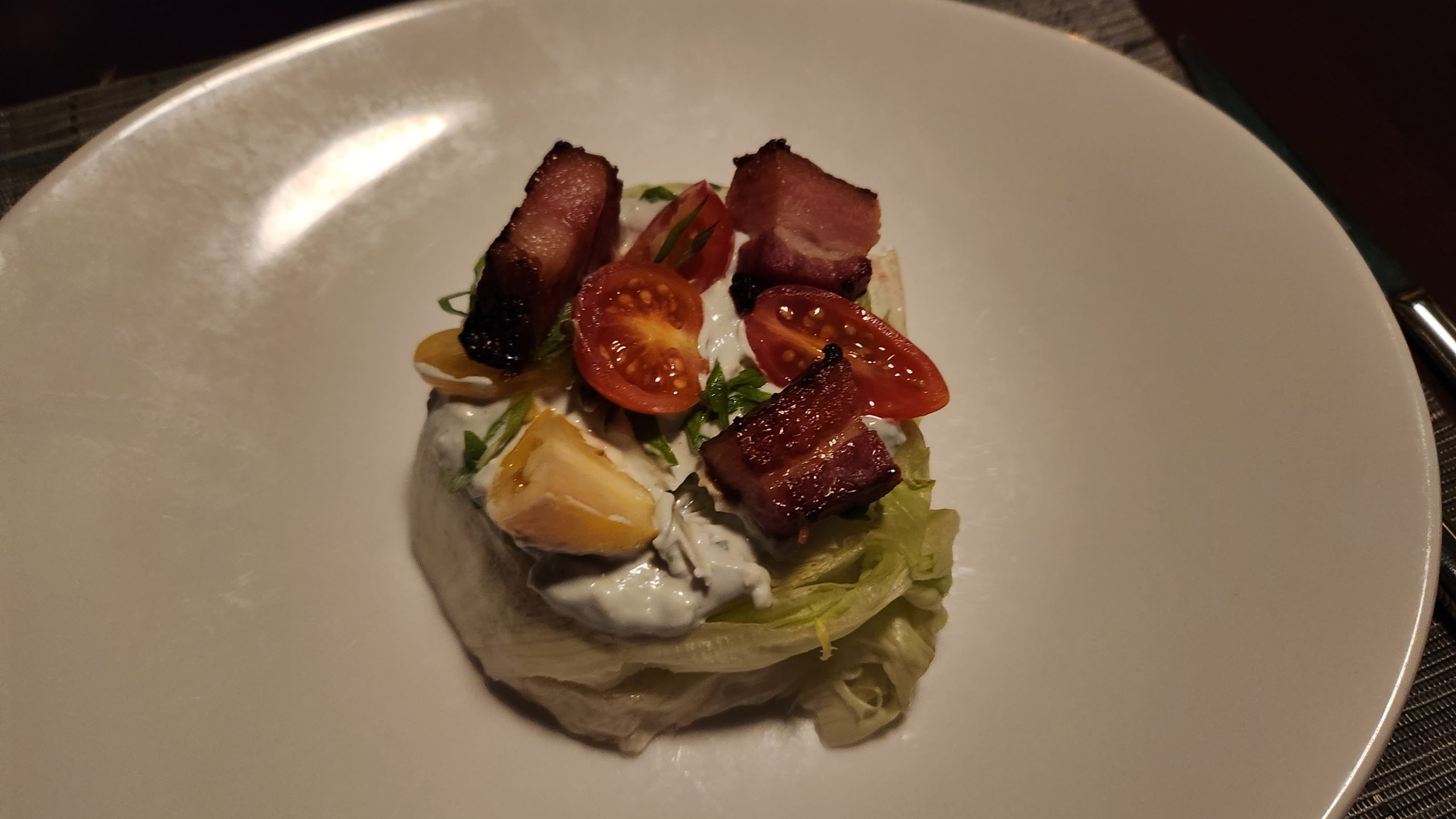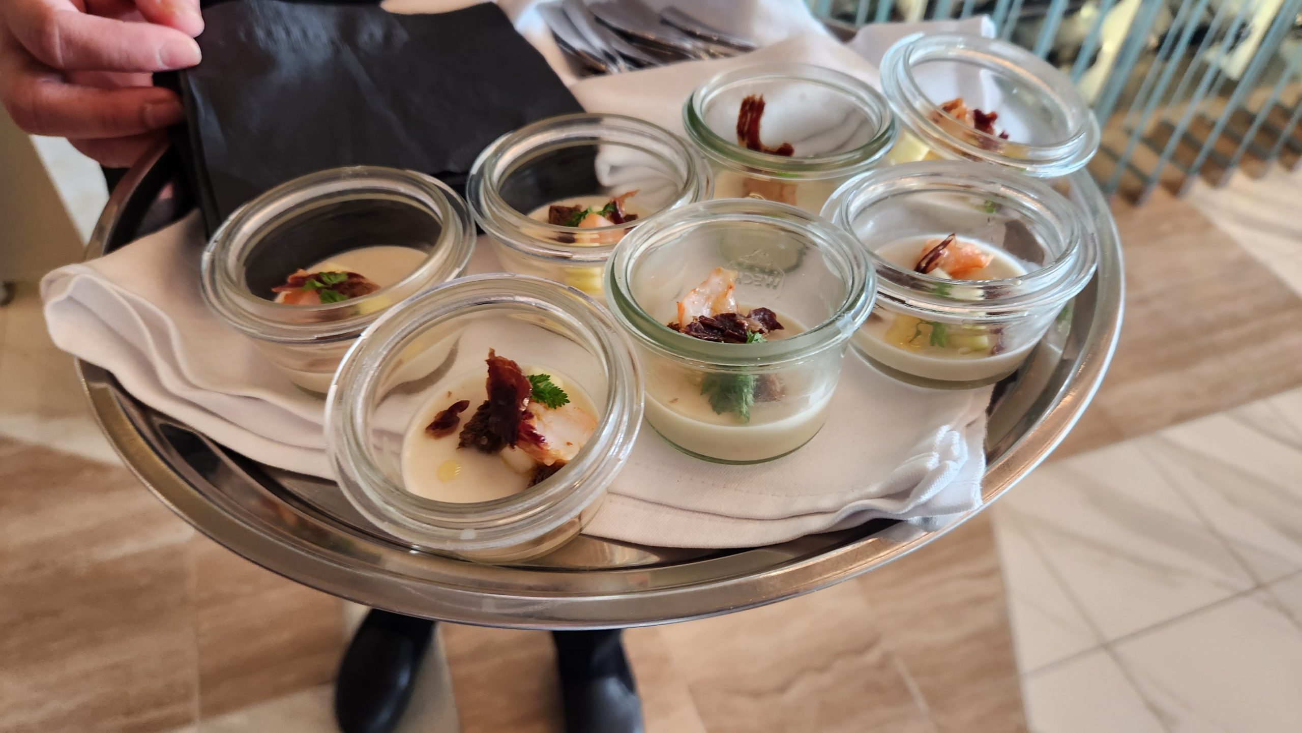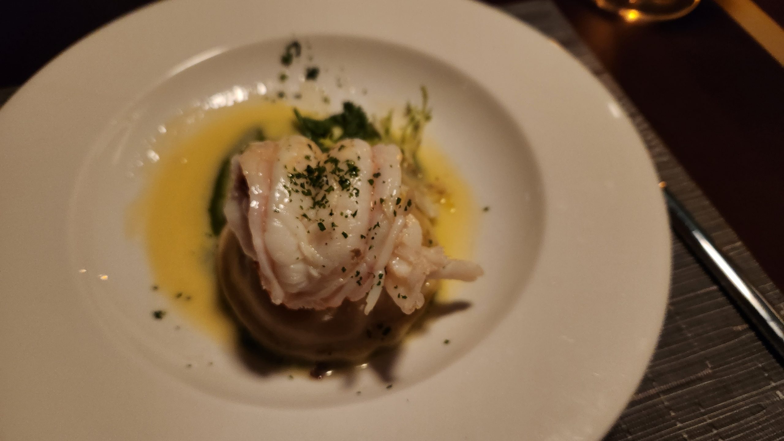 We got to enjoy one night of specialty dining in addition to our meals in the Luminea suite restaurant. Having had steak in the Luminea restaurant the night before, I decided on the seafood which included a lobster salad and lobster tail. Steve enjoyed the pork belly, ribeye steak and some wonderful potato dishes.