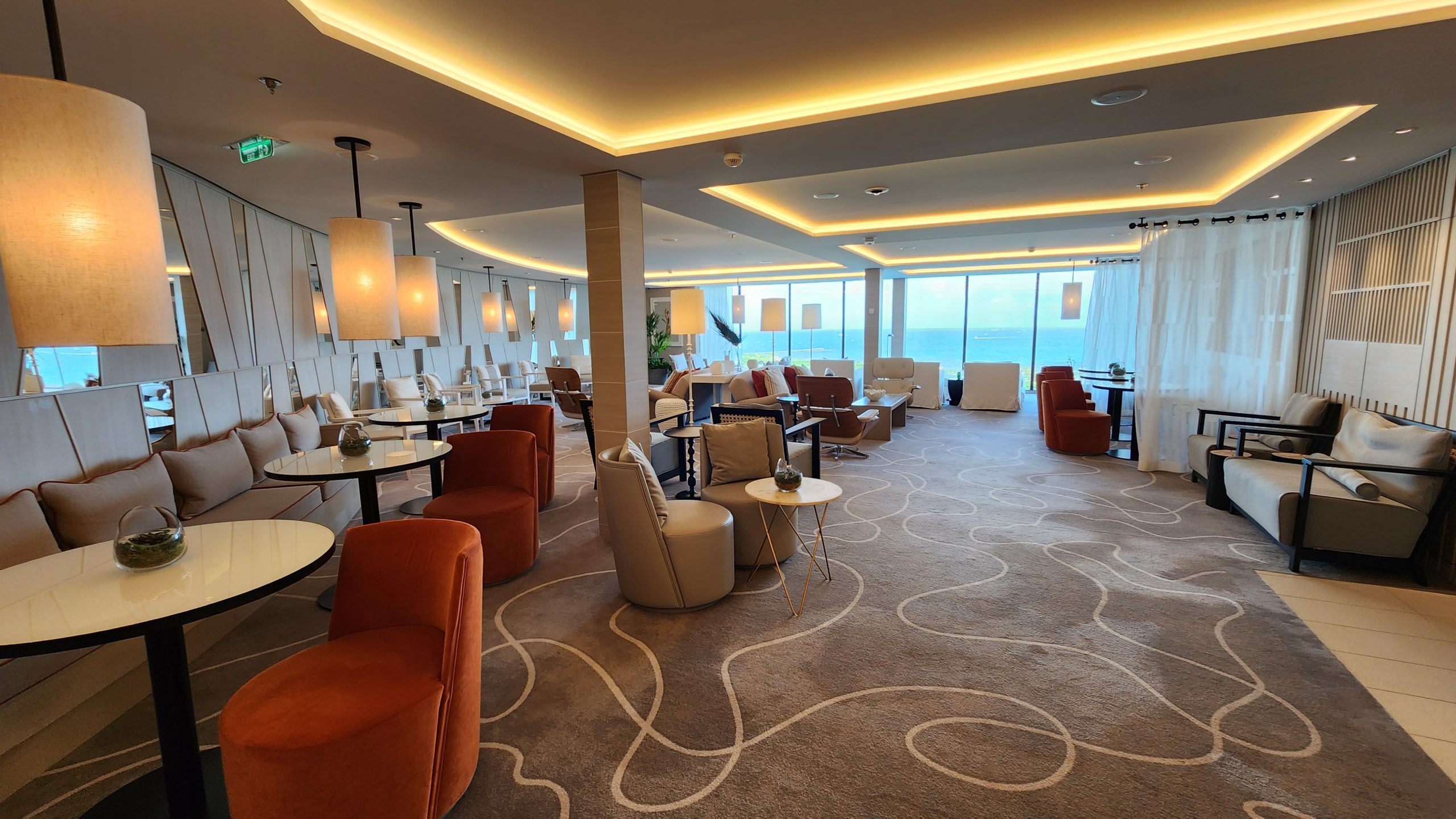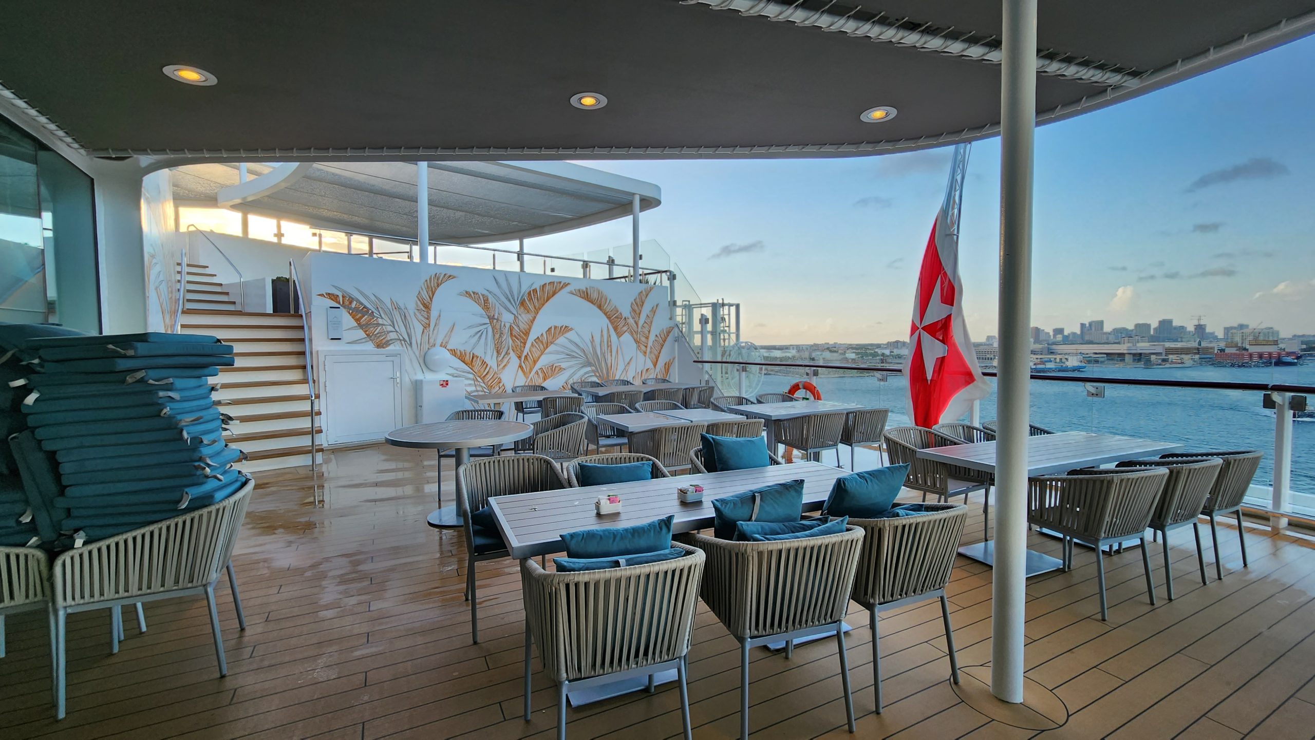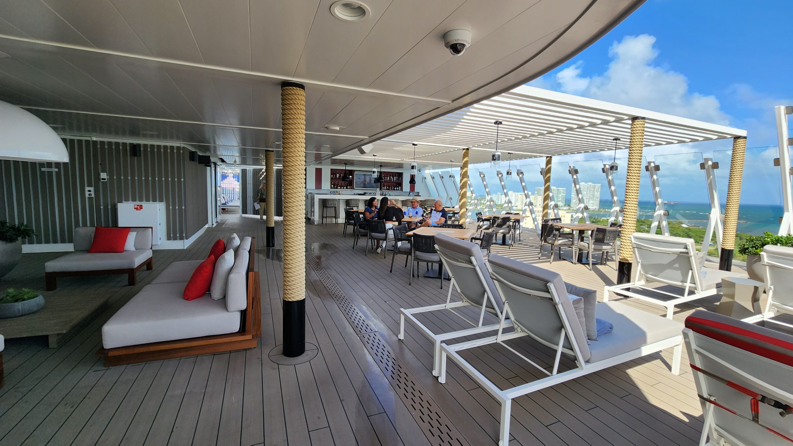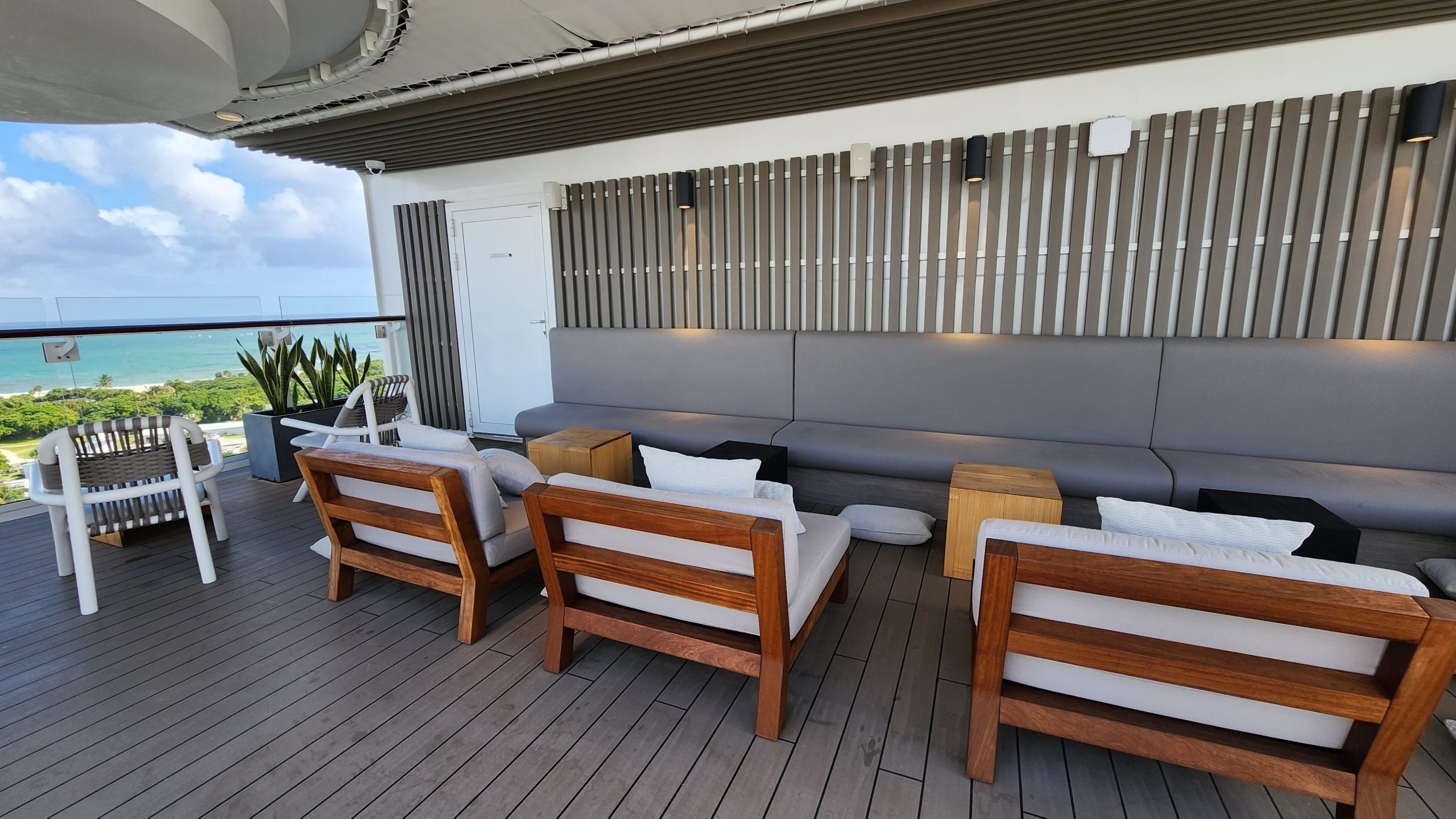 The retreat features several exclusive areas for suit passengers including a lounge with bar service, sun-deck and pool area and the Luminea restaurant. These spaces are designed to replicate the luxury experience that one might find on a small ship luxury line with intimate relaxing spaces and highly personalized service.