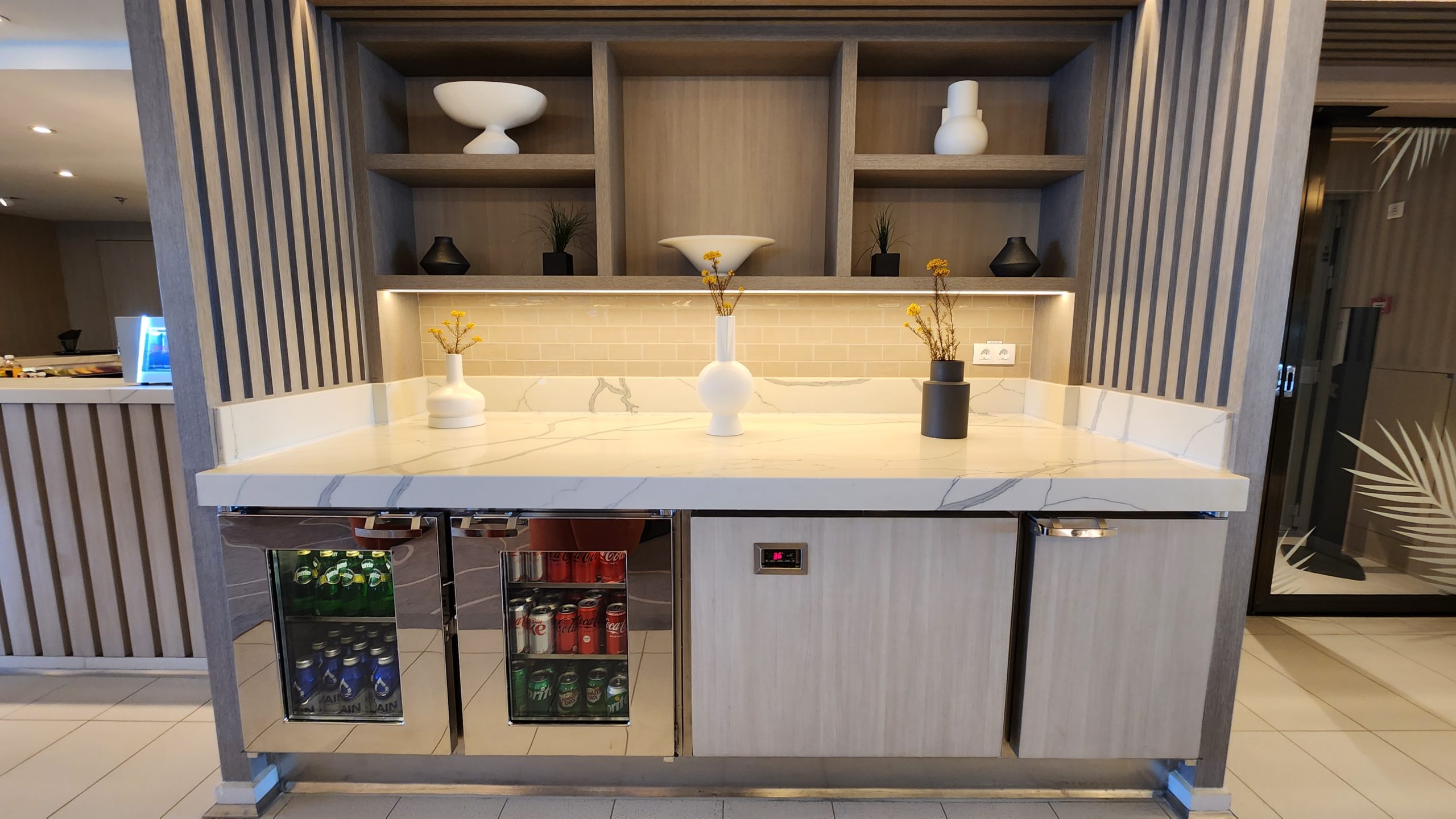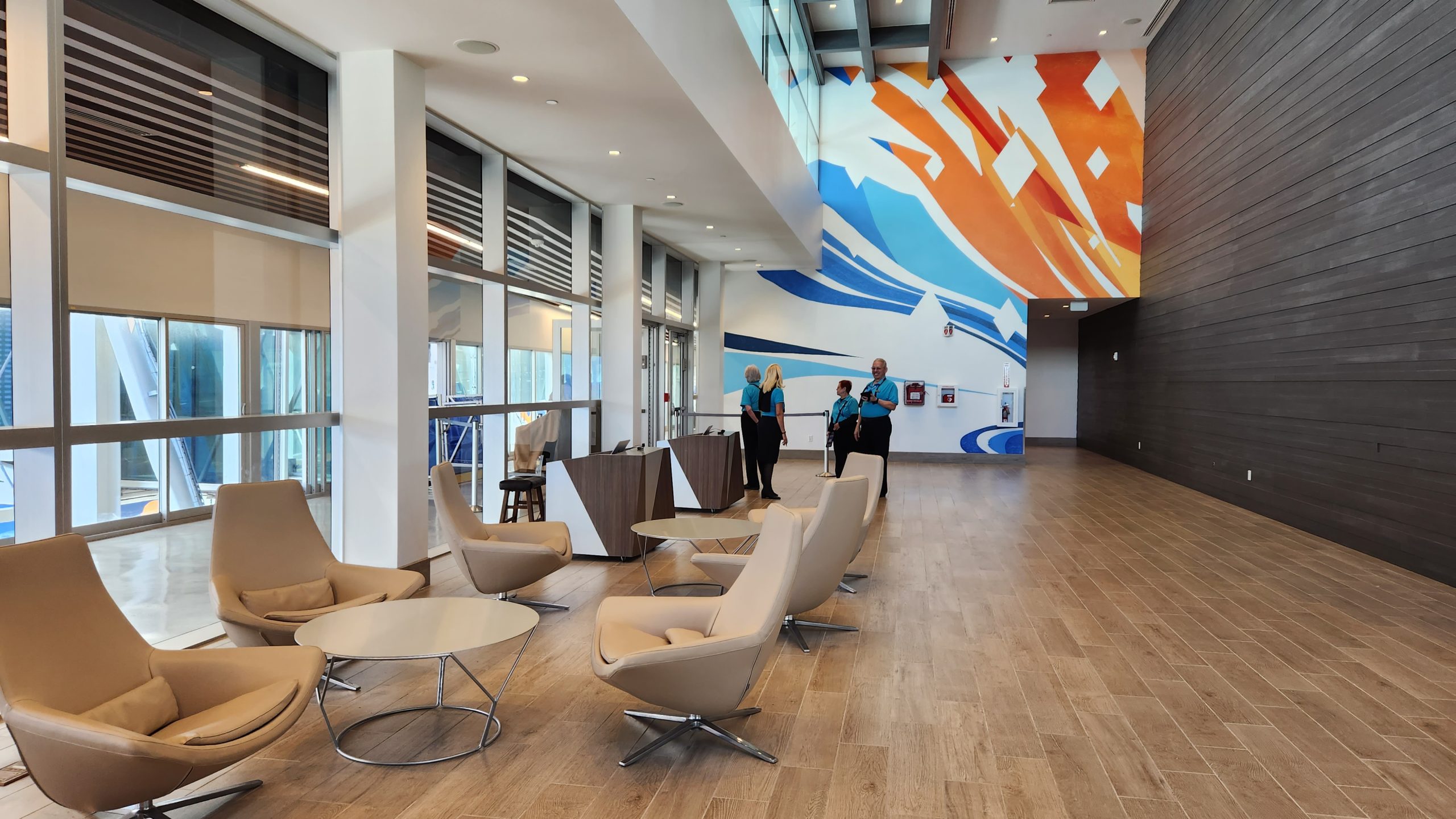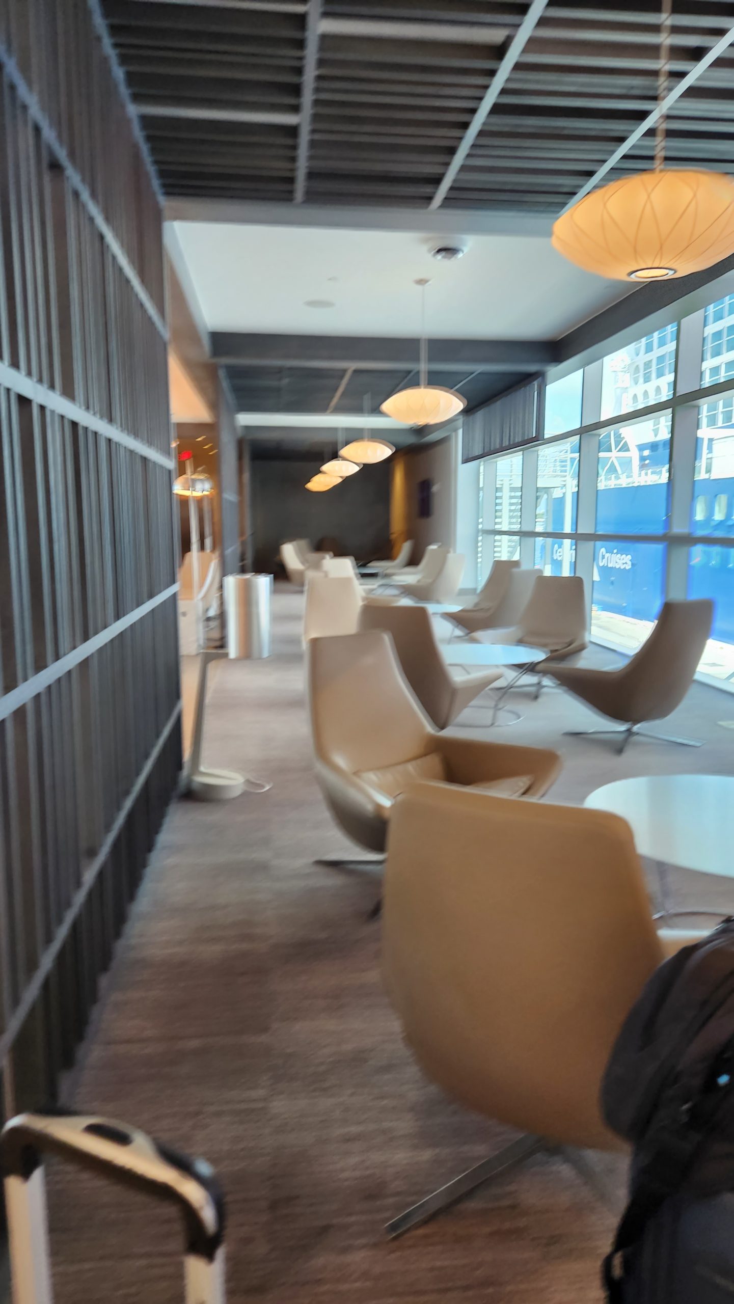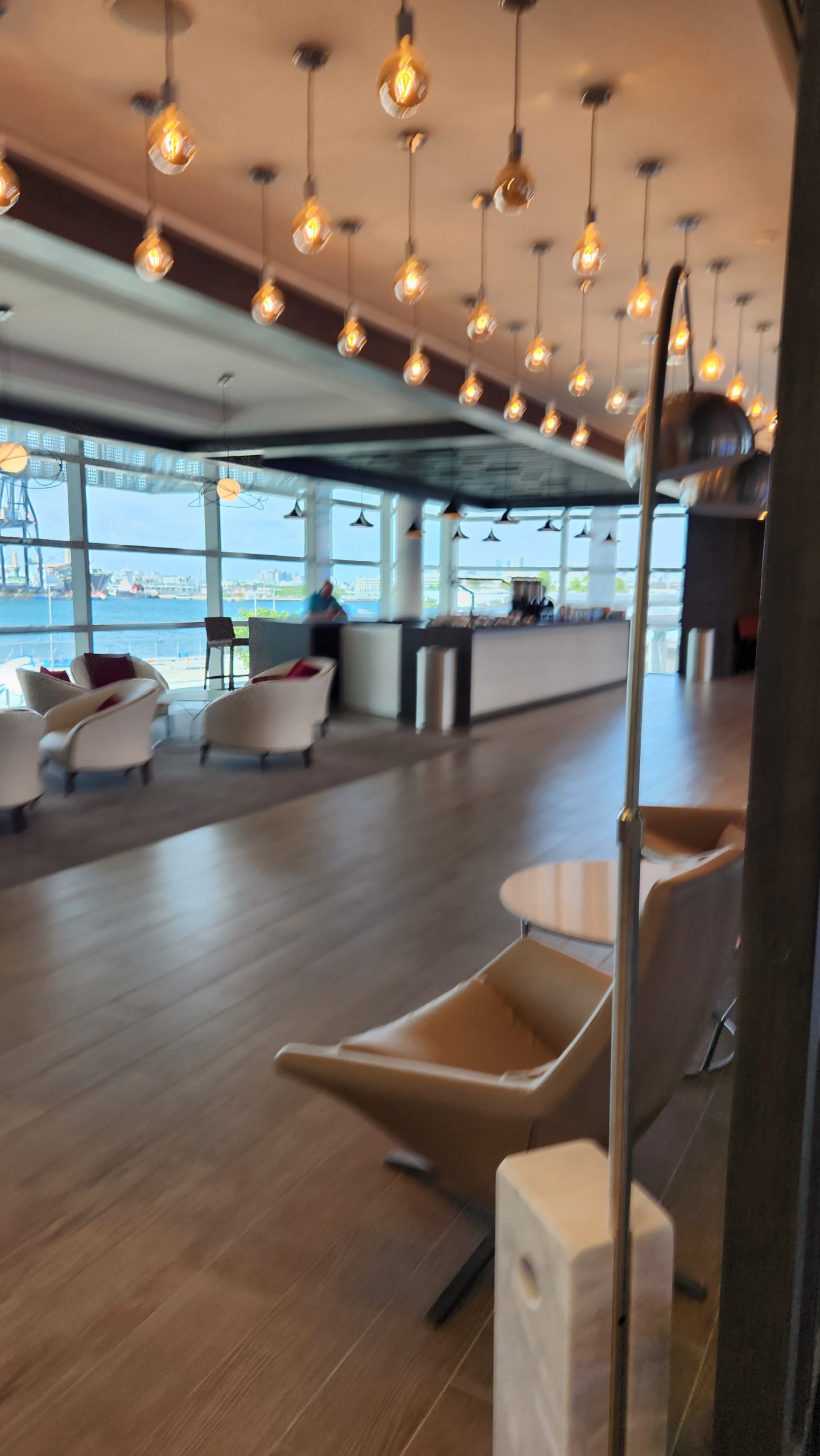 First the Retreat Embarkation Experience – With its own line for retreat guests, there is no queueing up to check in. Retreat guest are escorted from the sidewalk to their own elevator in the terminal, to the retreat terminal check in lounge. If the guest needed to wait to board the ship there are refreshments and plenty of relaxing seating. But in our case, the ship was ready so we checked in and directly boarded the ship.