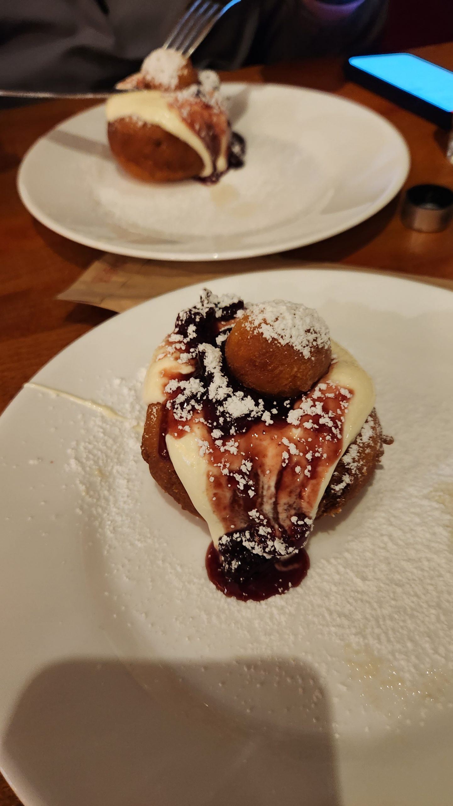 After our stay in Brasov Transylvania, we had one last night in Bucharest before our flights the next morning. We were treated to a nice lunch as part of the tour and then after checking into our final hotel, headed out to dinner at a local restaurant called “La Mama”, I am pretty sure it got that name because the food is like Mama’s home cooking and very authentic Romanian. It was recommended by our tour guide and featured on the evening food tour offered by Avalon’s tour extension. We didn’t do that tour, but people from our cruise came in and out for one course while we were there. We very much enjoyed the veal and the stew, but the Papanasi, which is a wonderful Romanian doughnut the most loved item.