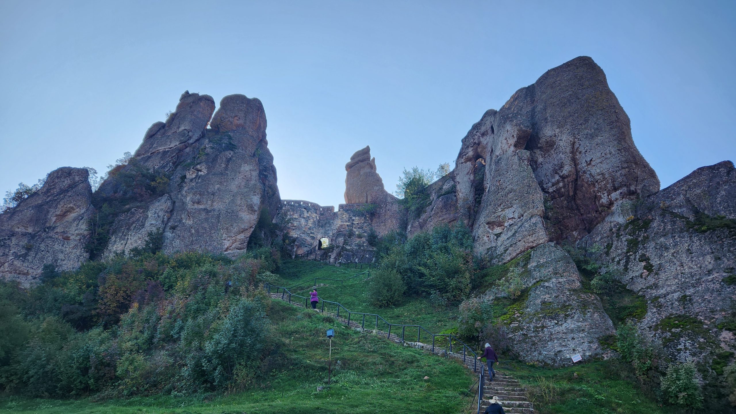 The small town of Vidin, Bulgaria had a big increase in population when the communists decided to relocate people from their farms to cities to work in factories as part of their industrialization efforts. The town does have some lovely architectural buildings that date back to second Bulgarian empire. Today some of the the town is not much to look at with abandoned factories and many very ugly and decaying concrete apartment buildings, hence our tour took us out of that river city and out to the beautiful romantic town of Belogradchick where we visited the famous rocks and fortress. This fortress dates back to Roman times when fortifications were added to the natural rocks to form the site.