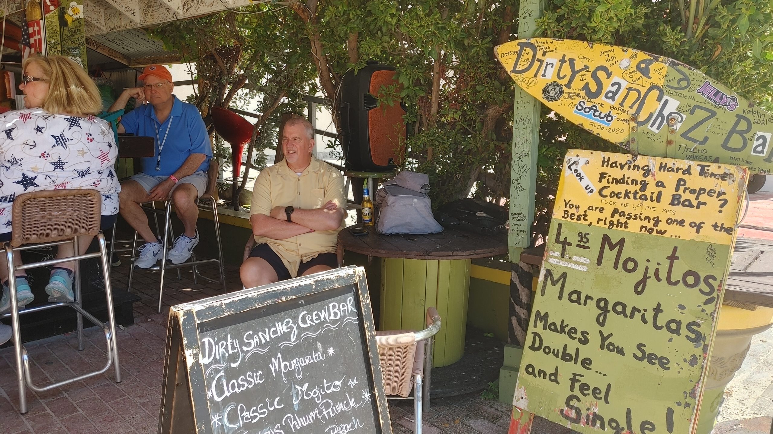 We made the Dirty Sanchez Crew Bar our home base. Steve held down the fort while I did shopping and swimming between tropical drinks. The bartender really took good care of us with generous pours. She over heard me trying to convince my husband that tequila wasn’t over powering. “This drink doesn’t really taste like Tequila”, I said. I wasn’t complaining, just trying to explain why I like Margaritas. She came by and topped off my drink with more tequila.