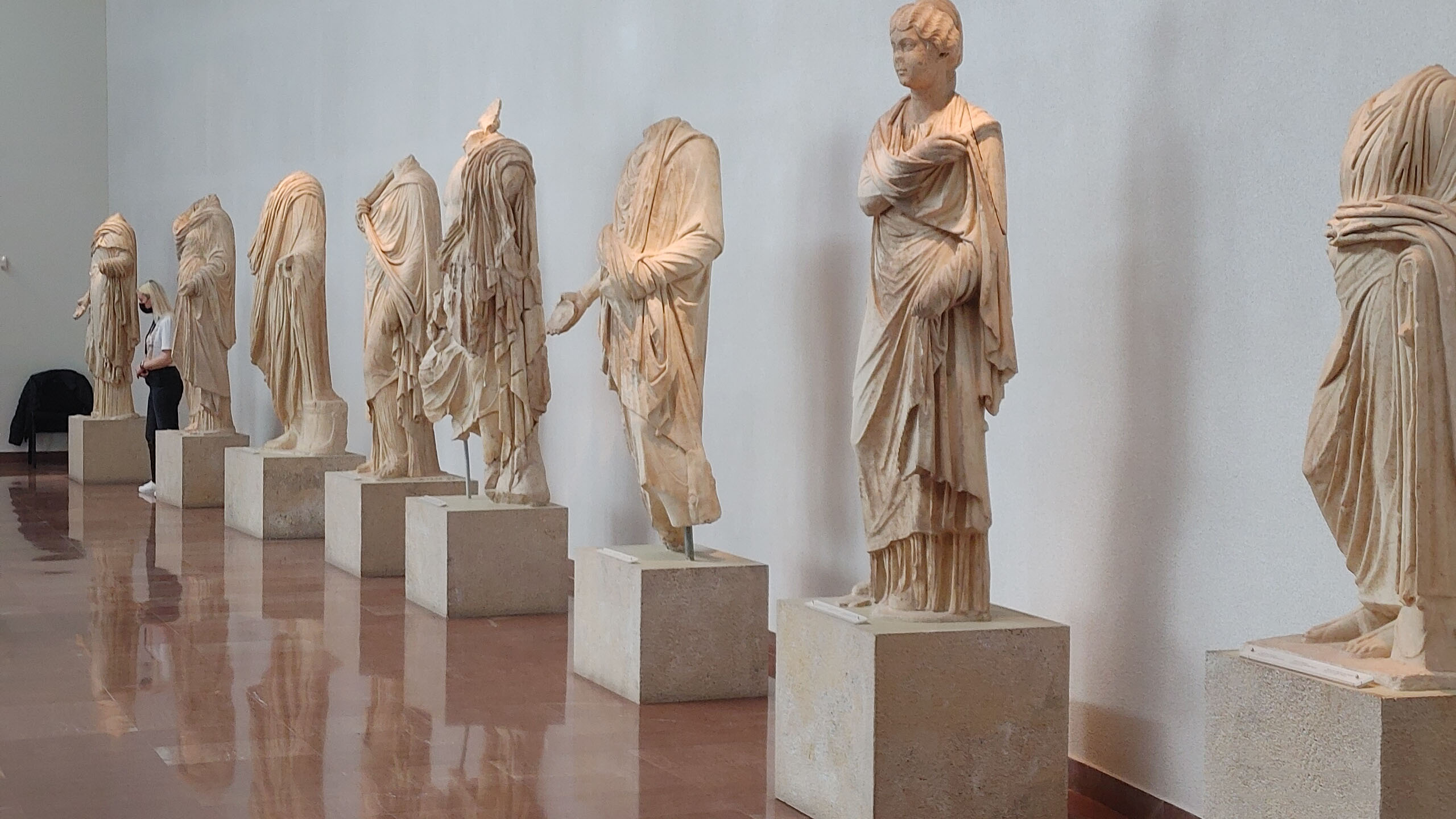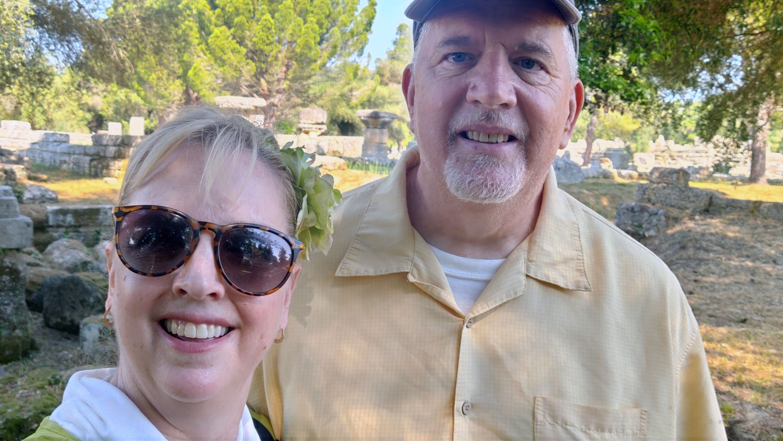 When you approach the ancient ruin site, the ruins are to the right and the museum is to the left. Even if your spouse doesn’t like museums, definitely make your way here. So many of the statues and artifacts that have been recovered from the ruins are displayed here. These works of art help to complete the picture of what this city must have looked like in ancient times. As we were entering the museum, we ran into our good friends Bob, Carol, Pam and Richard who were just coming out of the museum as they were visiting on a different ship. We should have thought to take a picture. I had booked their cruise and we realized earlier in the week that we would be in Olympia the same day. It was just good luck that we got to see each other.