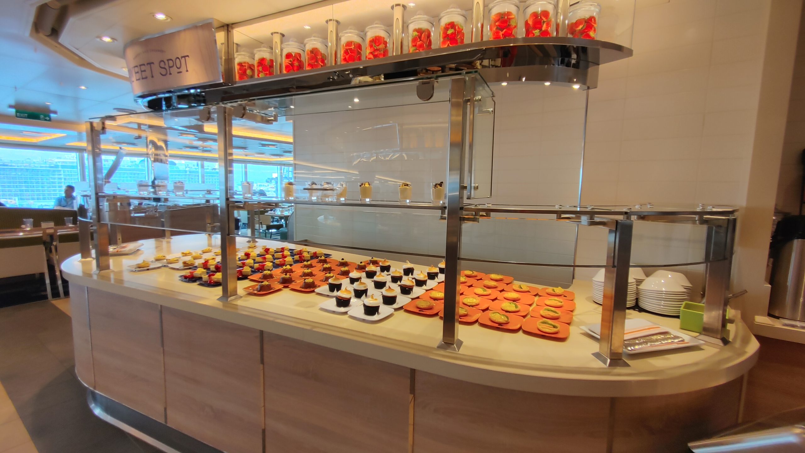 The lido market place is the quick service food station casual dining experience offered on Holland America. This is a particularly exciting area on the Pinnacle Class ships like the Rotterdam. There are variety of stations and food is often prepared “a la minute” and handed to you by a gracious server.
