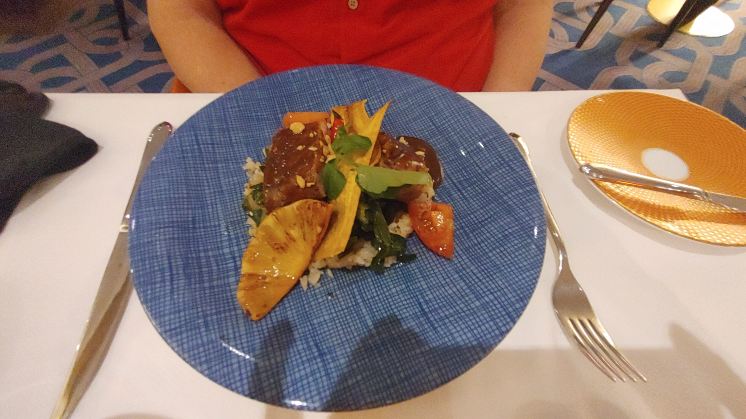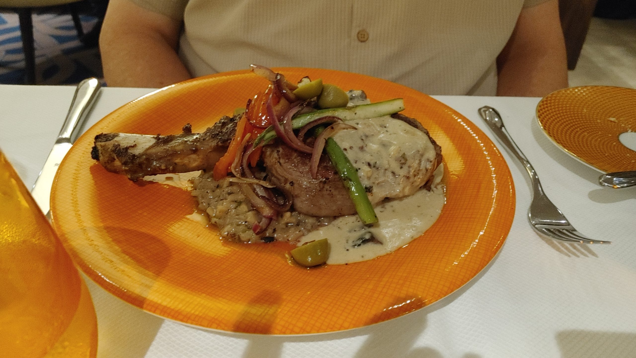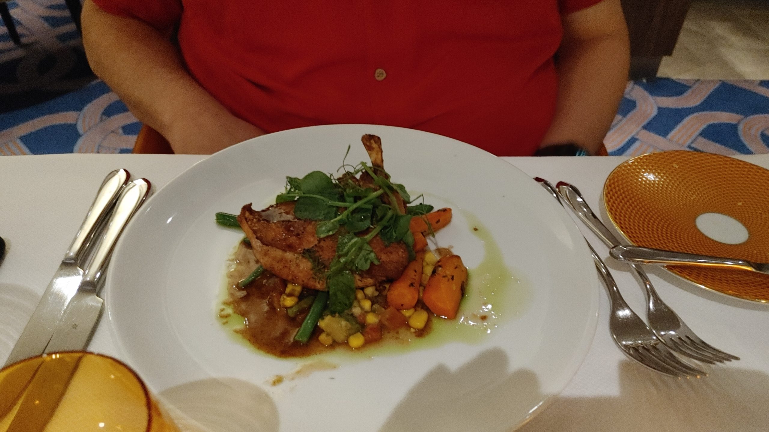 With the upgrade we made to Club Orange, our main dining was open seating in the smaller club orange venue. The food through out the week was fantastic. The menu was the same as the main dining room but with a couple of additional Club Orange special as a choice each night. The food, plating, and ambiance was fantastic. Everything fresh and at the right temperature.
