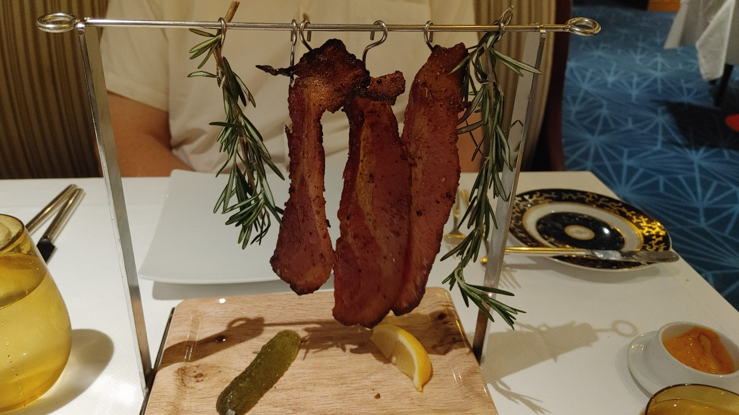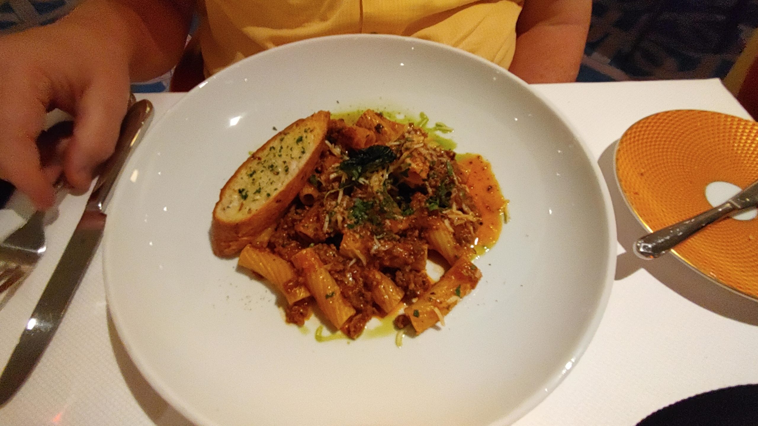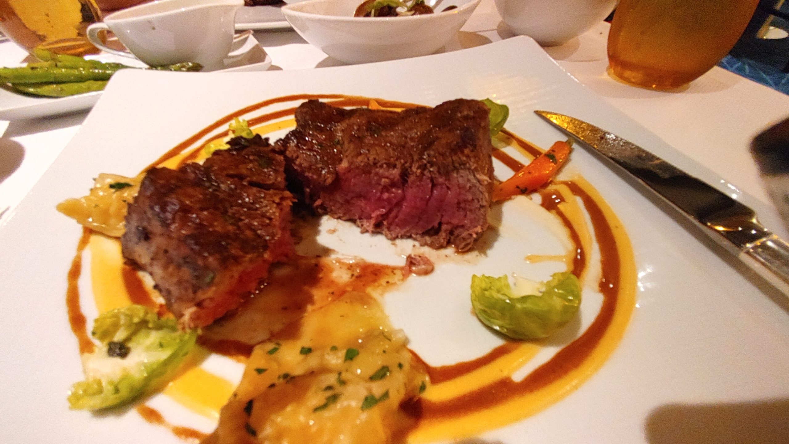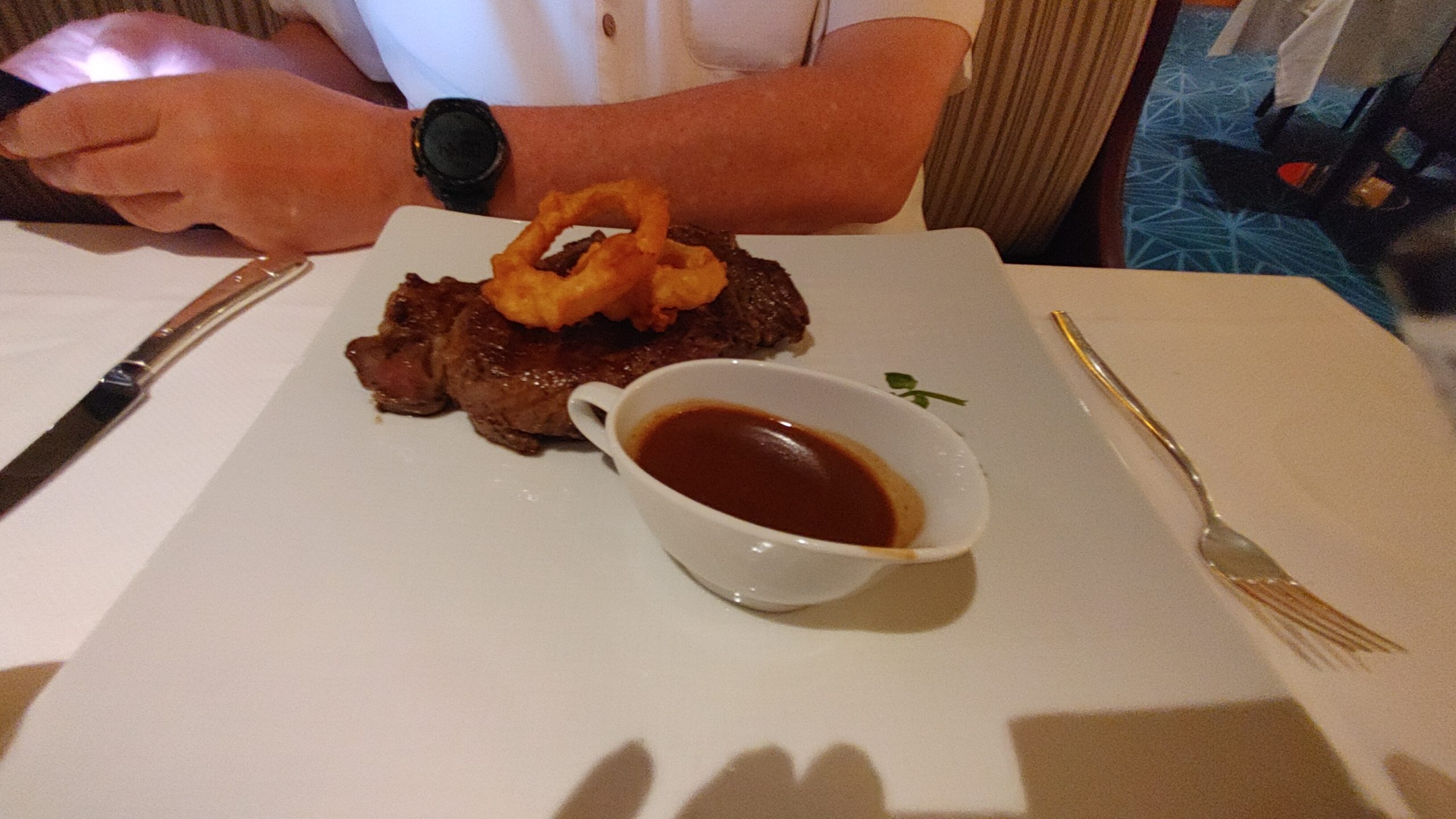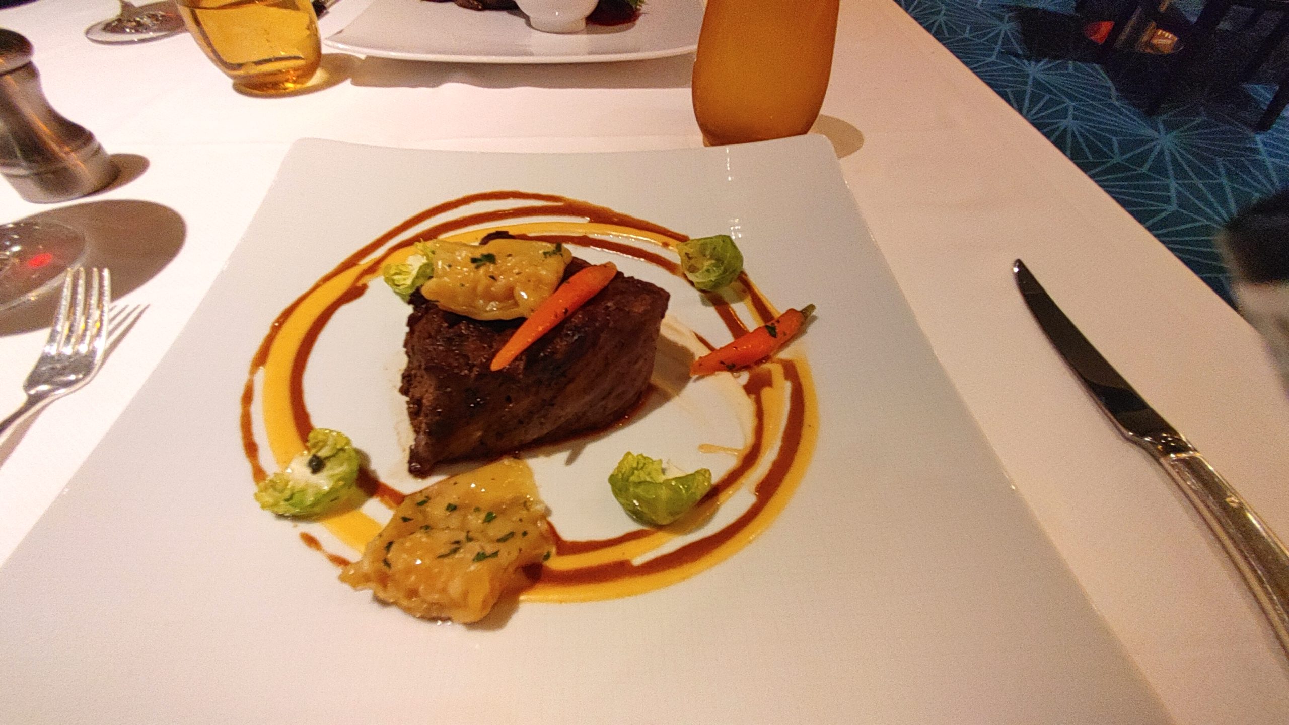 This was probably my favorite dining experience of the cruise. Every thing from the crab cakes to the curtain of bacon, to the shrimp bisque and steaks were delicious. Some of the best food I have ever had.