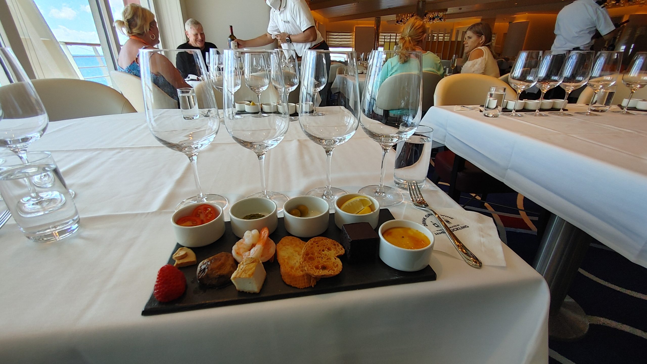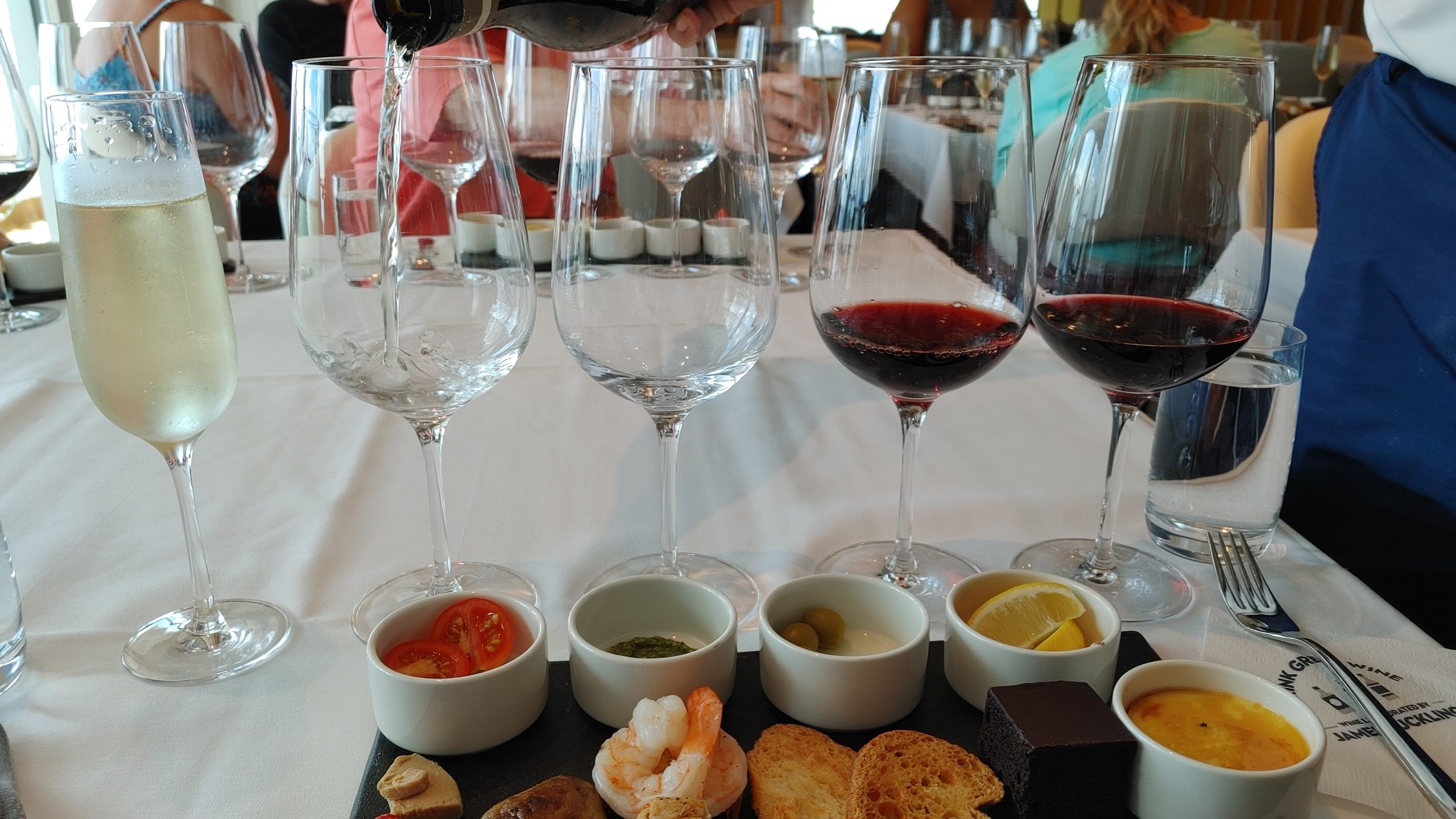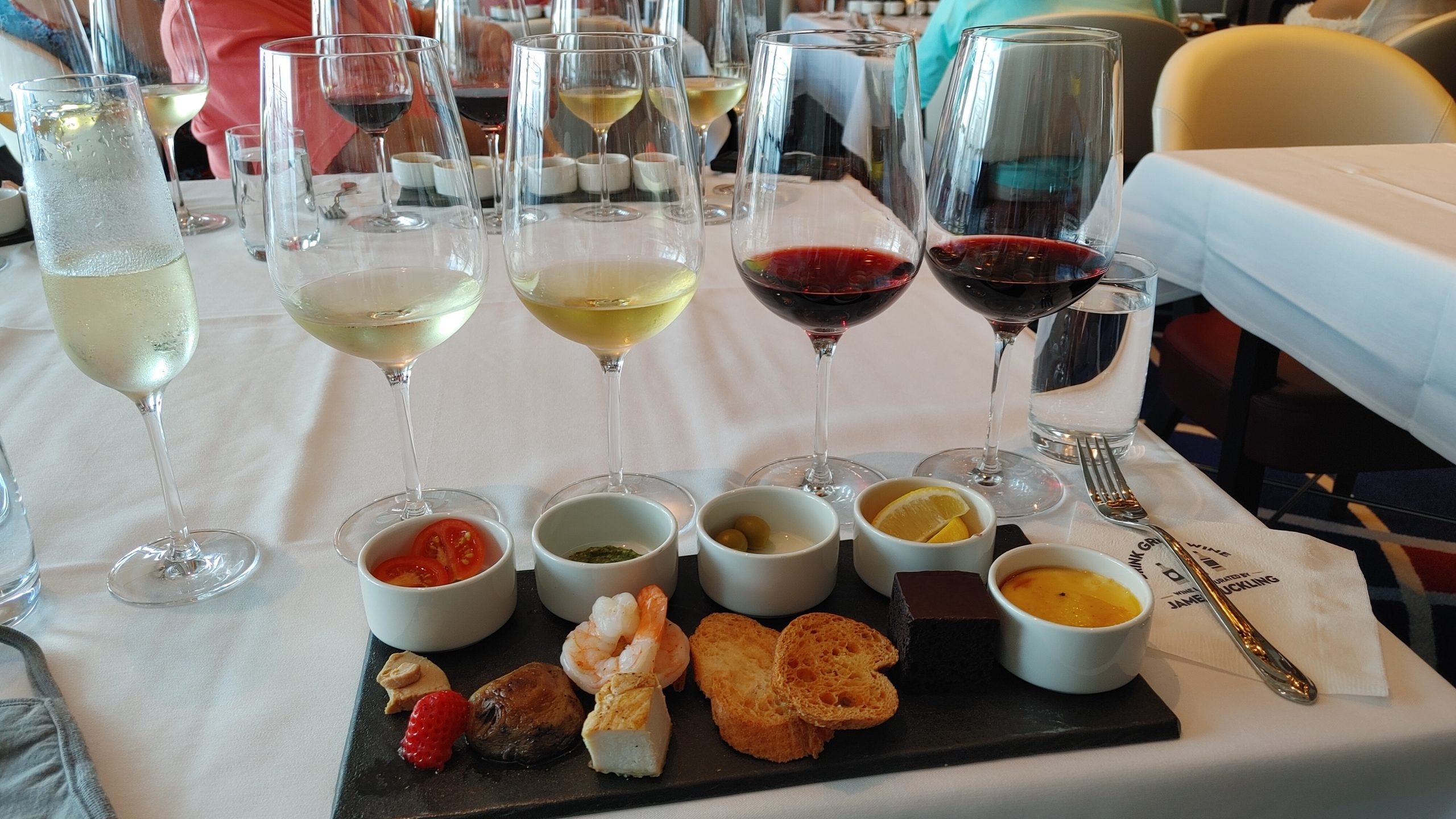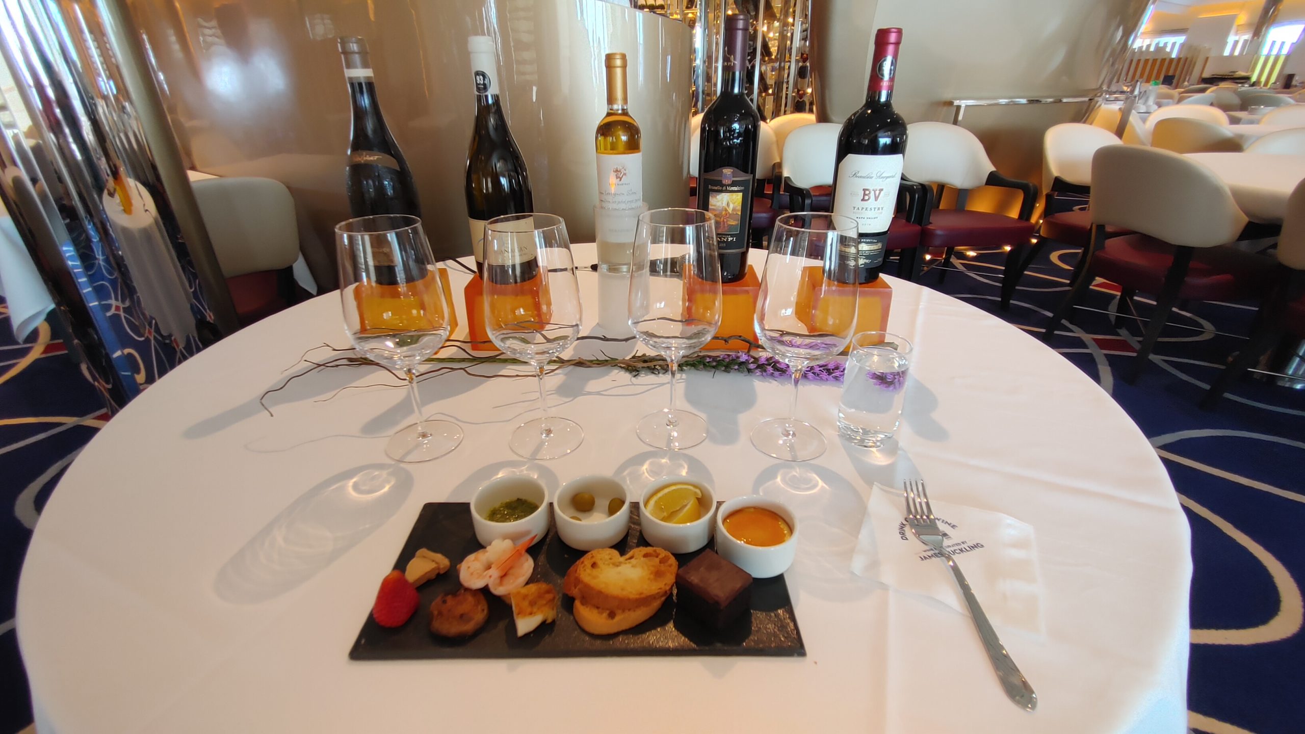 Our on board cellar-master hosted an amazing wine tasting experience for us. He was very knowledgeable about wine and wanted to make the tasting experience meaningful and enjoyable. The selections were interesting and the interactive tasting with different foods made experimenting fun. The sommelier also made a quick change on one of the wine when he tasted the chardonnay that he had originally selected. He wasn’t happy with it, and quickly had his staff bring a different selection to the guests. I would give this tasting experience a 5 out of 5 rating in terms of price, selections and overall experience.