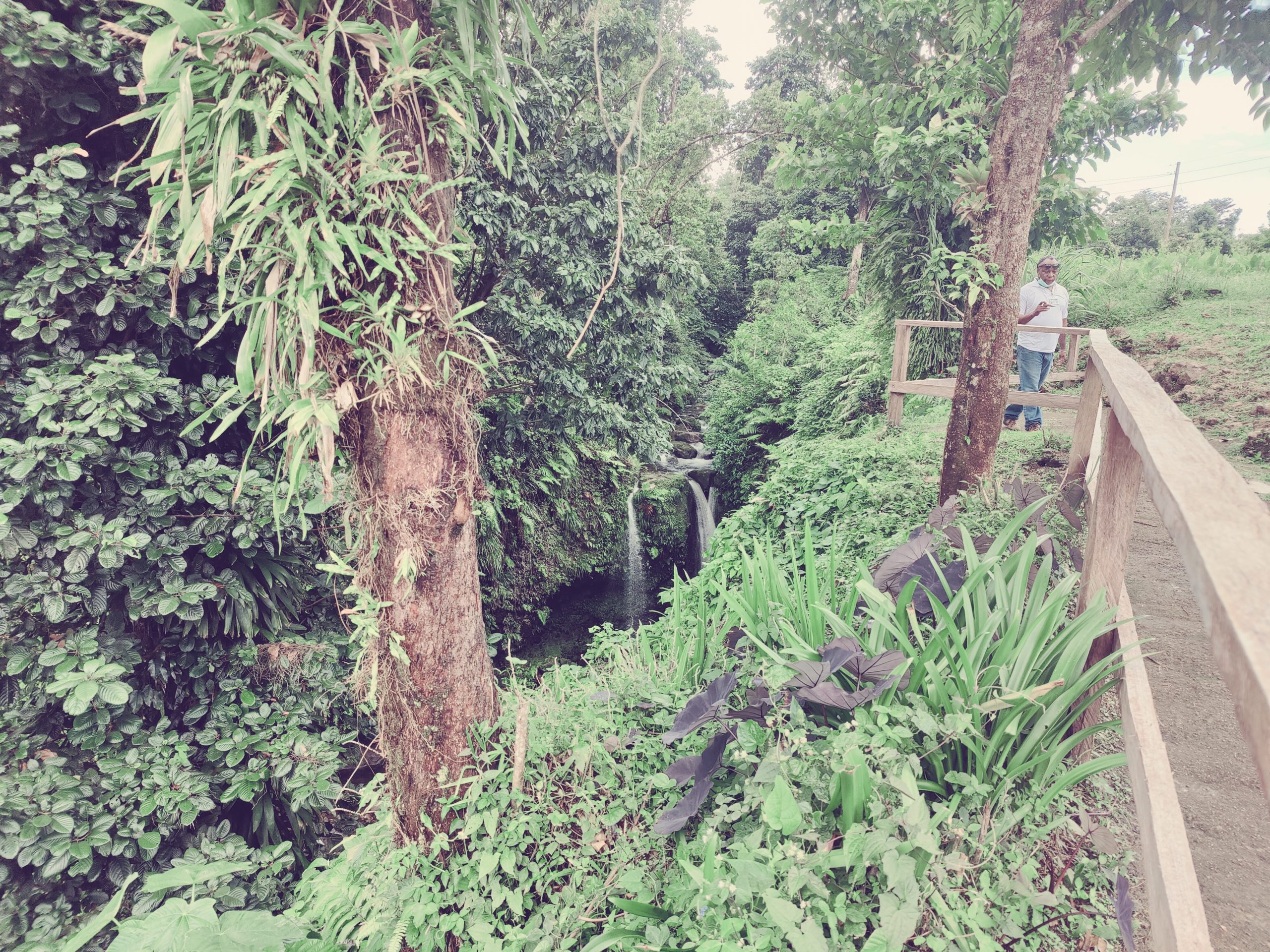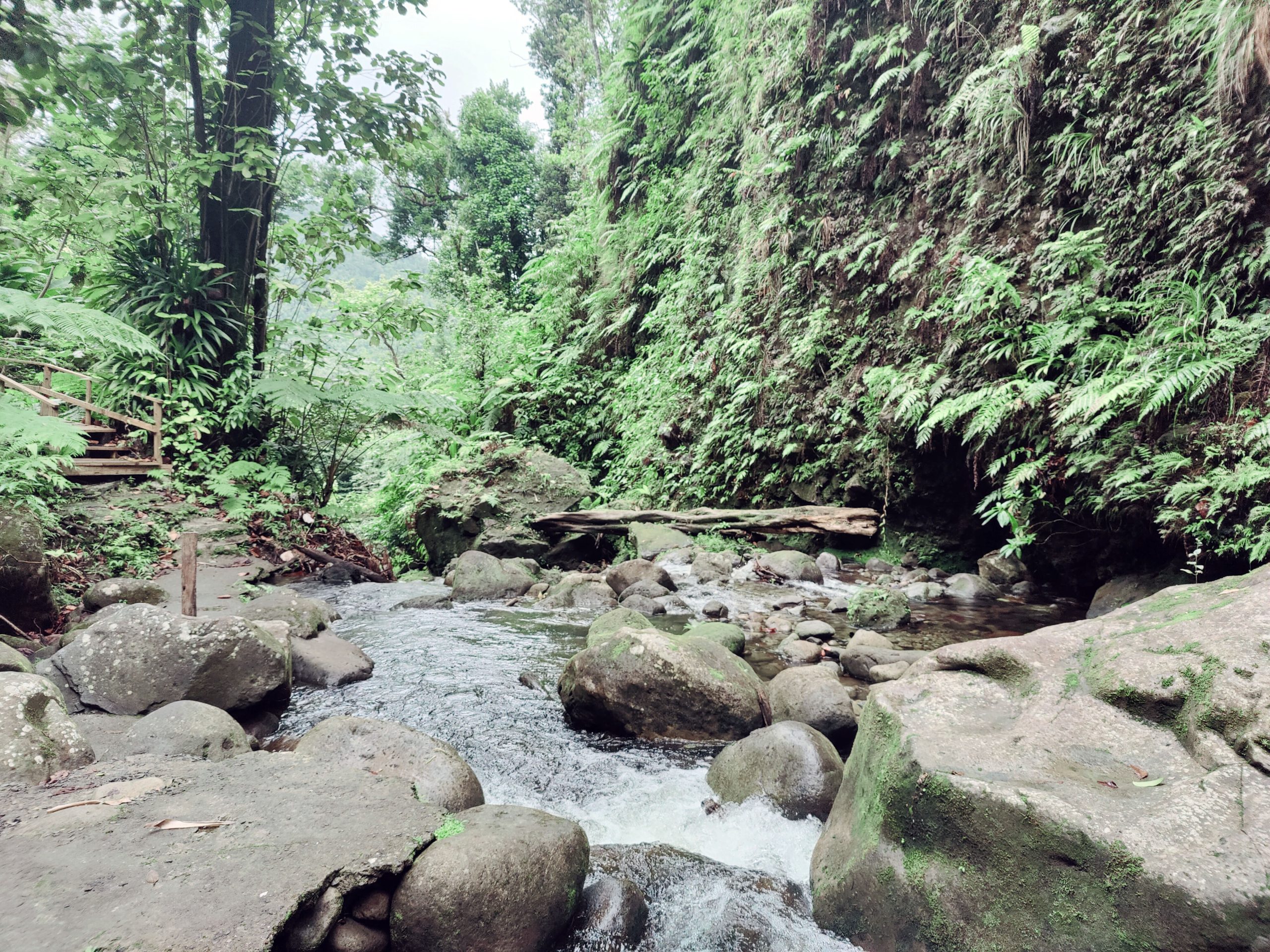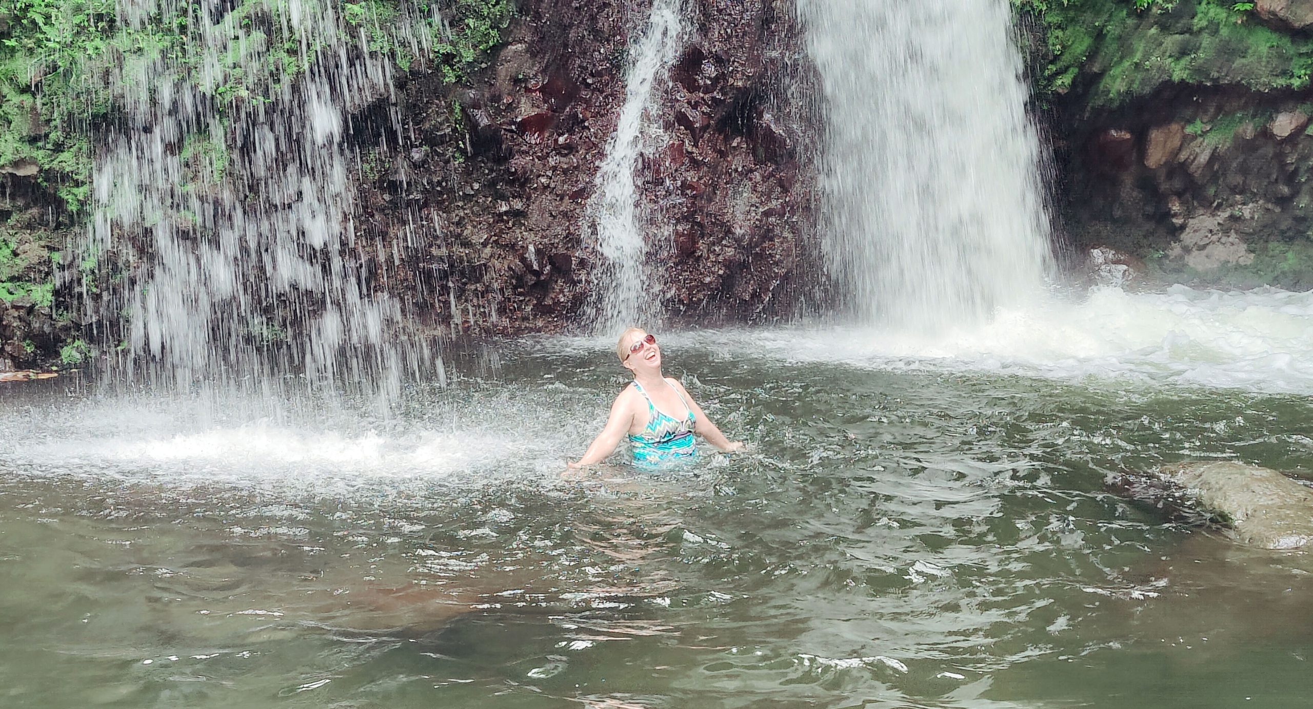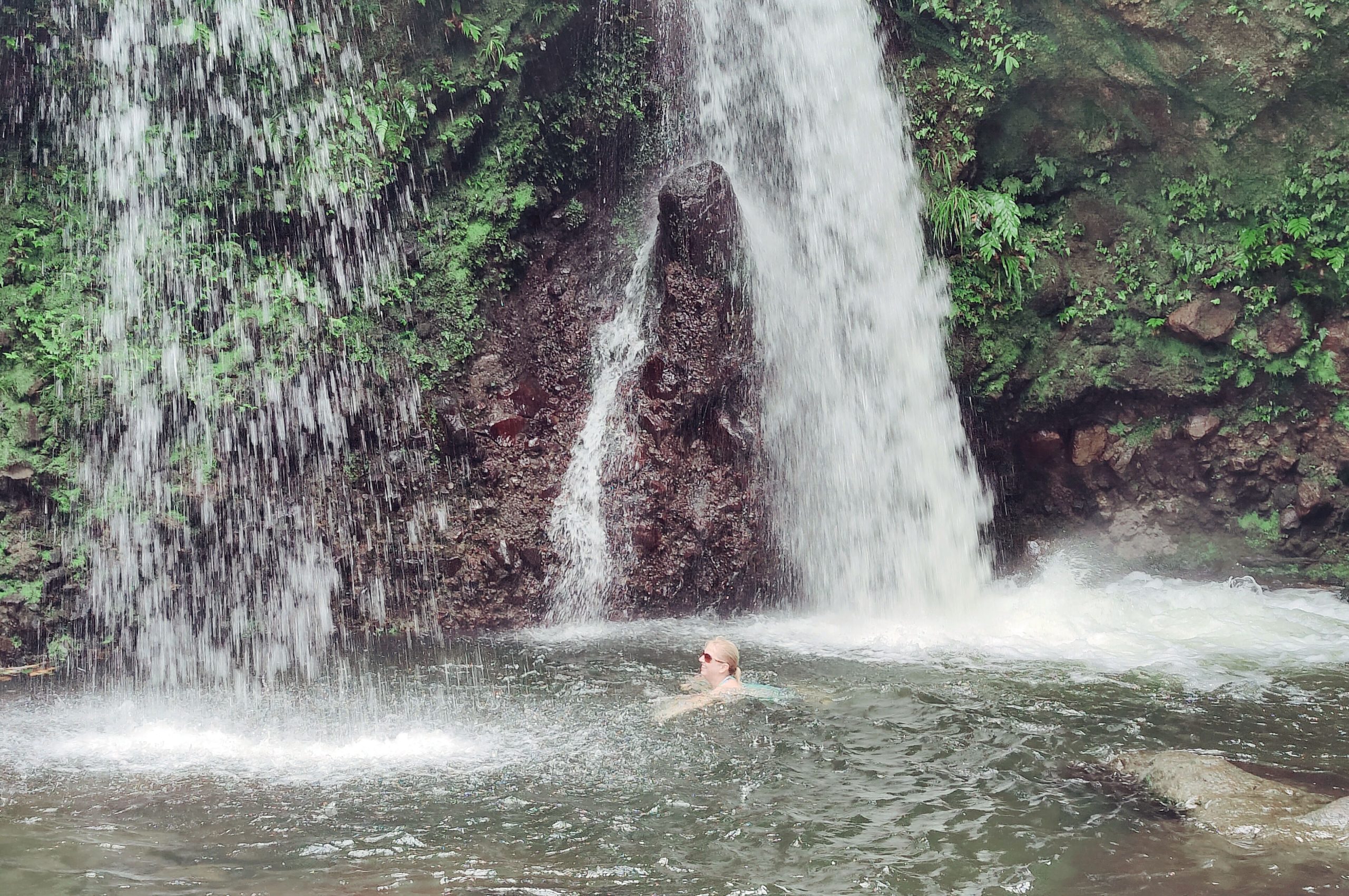 After the vista point, our tour continued as we drove both through the city, but the cricket stadium, along the waterfront and up the mountains along a winding road to Jacko Falls. Along the way, we saw mountains, goats, stray dogs and the lush rain forest. Jacko Falls had a restroom and changing room, stairs down to the falls and a little gift shop. I changed into my swim suit and headed down to the falls where I was the only one of our group to get in the water. It was a cloudy day, we were high in the mountains, and the water was quite cold, but I toughed it out because I always wanted to swim in a tropical waterfall. The pool under the falls was quite uneven as it had rocks in some spots to make the water shallower. Water shoes were a must. It was refreshing and we could have spent more time there, but with myself being the only one in the water and the temperature a little chilly, I decided that a quick dip was best. I supposed it I lived on the Island I could this everyday in a different spot.