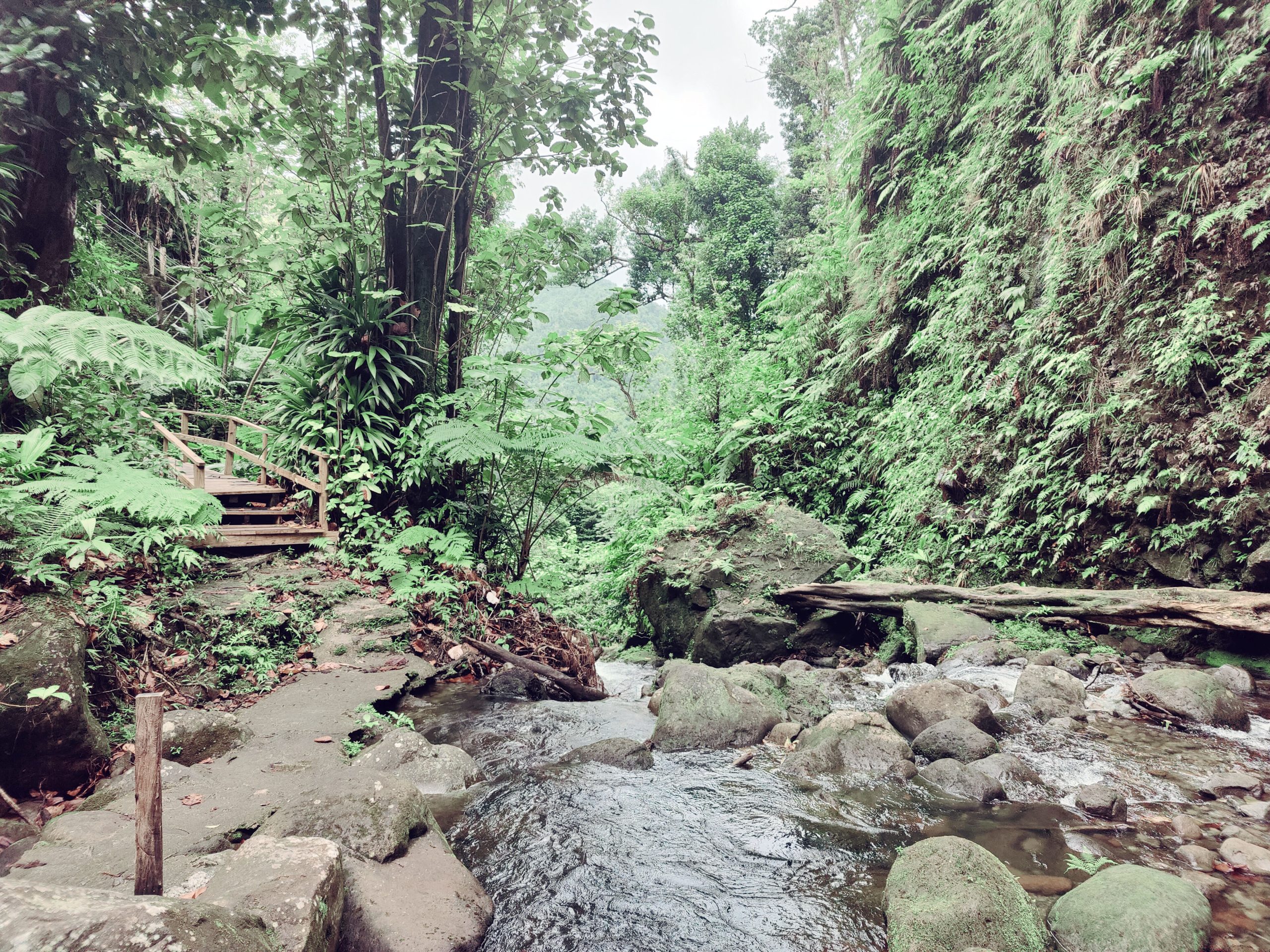 This was my 4th or 5th visit to Dominica, one of the most unique islands in the Caribbean. While neighboring Antigua boast 365 beaches, Dominica, a very steep and relatively young volcanic island, boast few beaches but 365 Waterfalls. We had an unusual circumstance that required us to take private tour of the island. We were traveling with an unvaccinated two year old. Being unvaccinated required him to take a ship’s tour, and being two years old made him two young for any of the ship’s tours. However, Celebrity was able to put together a custom tour for us with a private divers that included a visit to a scenic vista and splash in a beautiful tropical waterfall. These types of waterfall swims are often featured on the cruise line’s web site and something I always wanted to do.