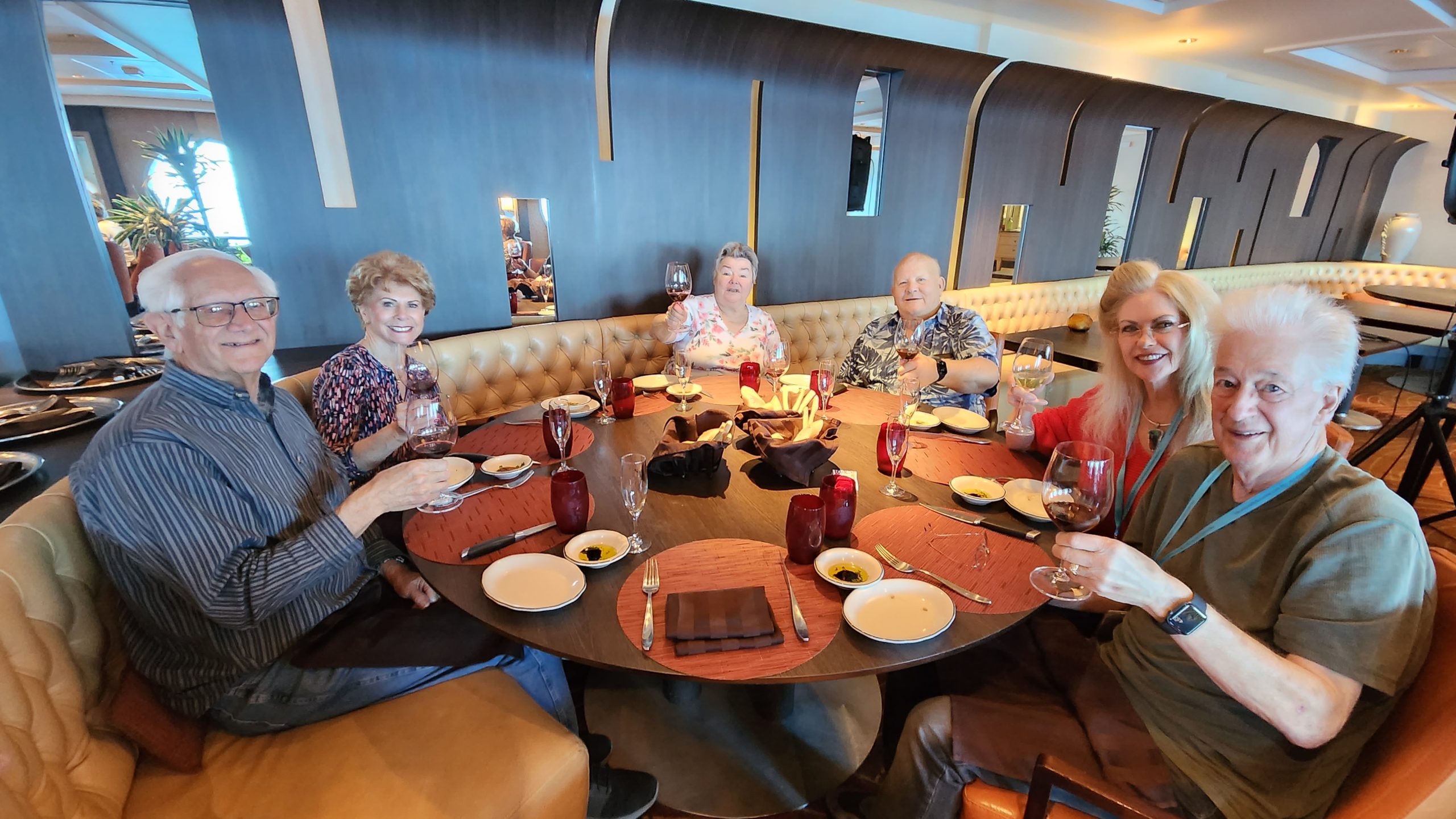 Our other specialty dining experience on the infinity was in the always amazing Tuscan Grill. We had a group luncheon wine event there. The food an beverage staff invited us to try the food and wine together in a little preview dinner with just us and our wine hosts. If you have read about our wine events, we ended up having to do a destination immersive wine program with Argentine wines rather than our winemaker shipping their own due to impossible post pandemic logistics. The Food and Beverage staff knew that we needed to try the wine with the food to make sure that the wine we blindly ordered paired with the select dishes. We said, well does it matter, we can’t really change the wine at this point, and the food and beverage direct said, “No, but we can change the food.” The local Argentine sommelier who had helped us source the wine had done a pretty good of matching things up to the set menu, but they were able to change the sauce on the fish dish to make it more acidic to go better with the dry white wine we paired with it.