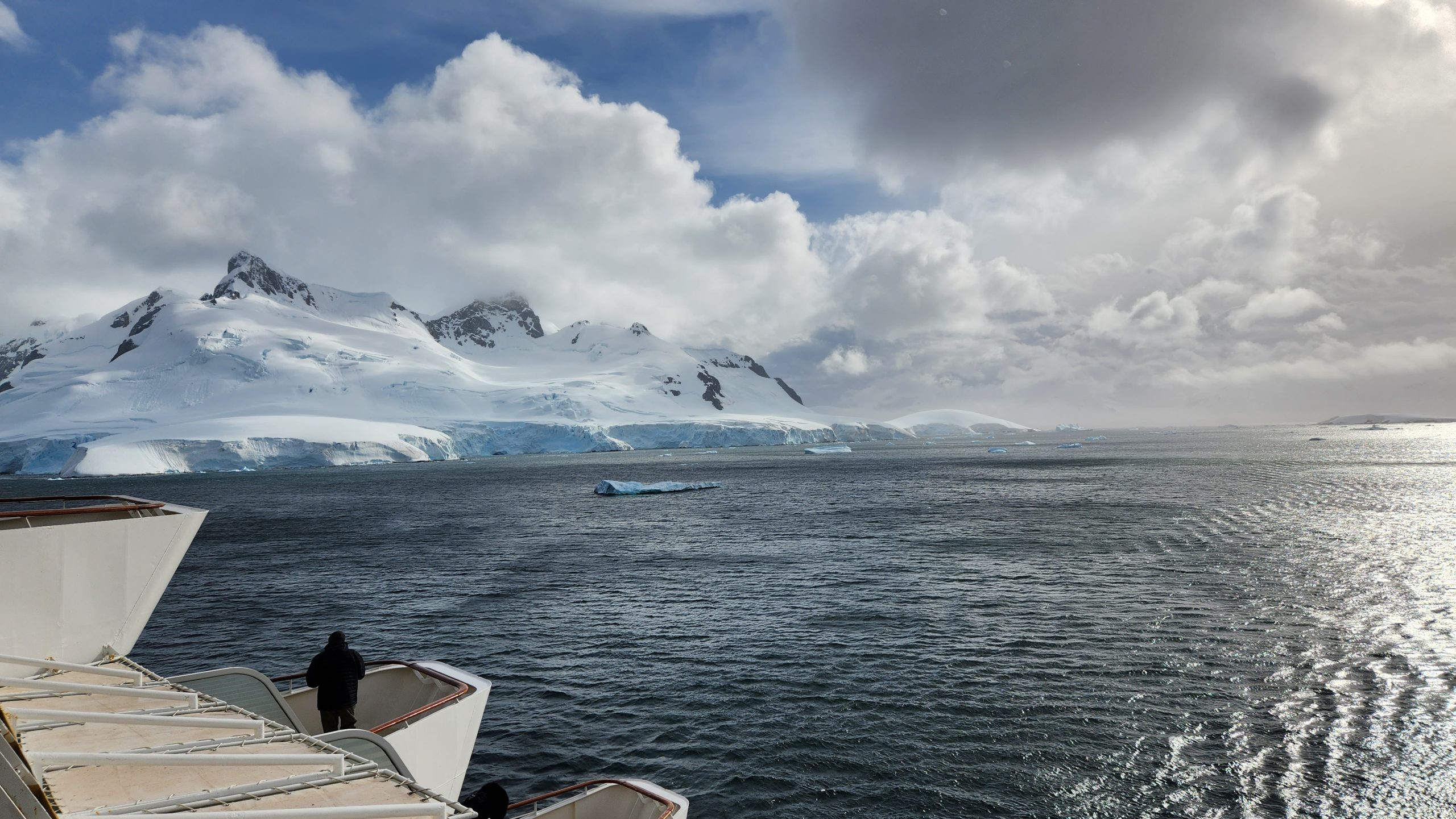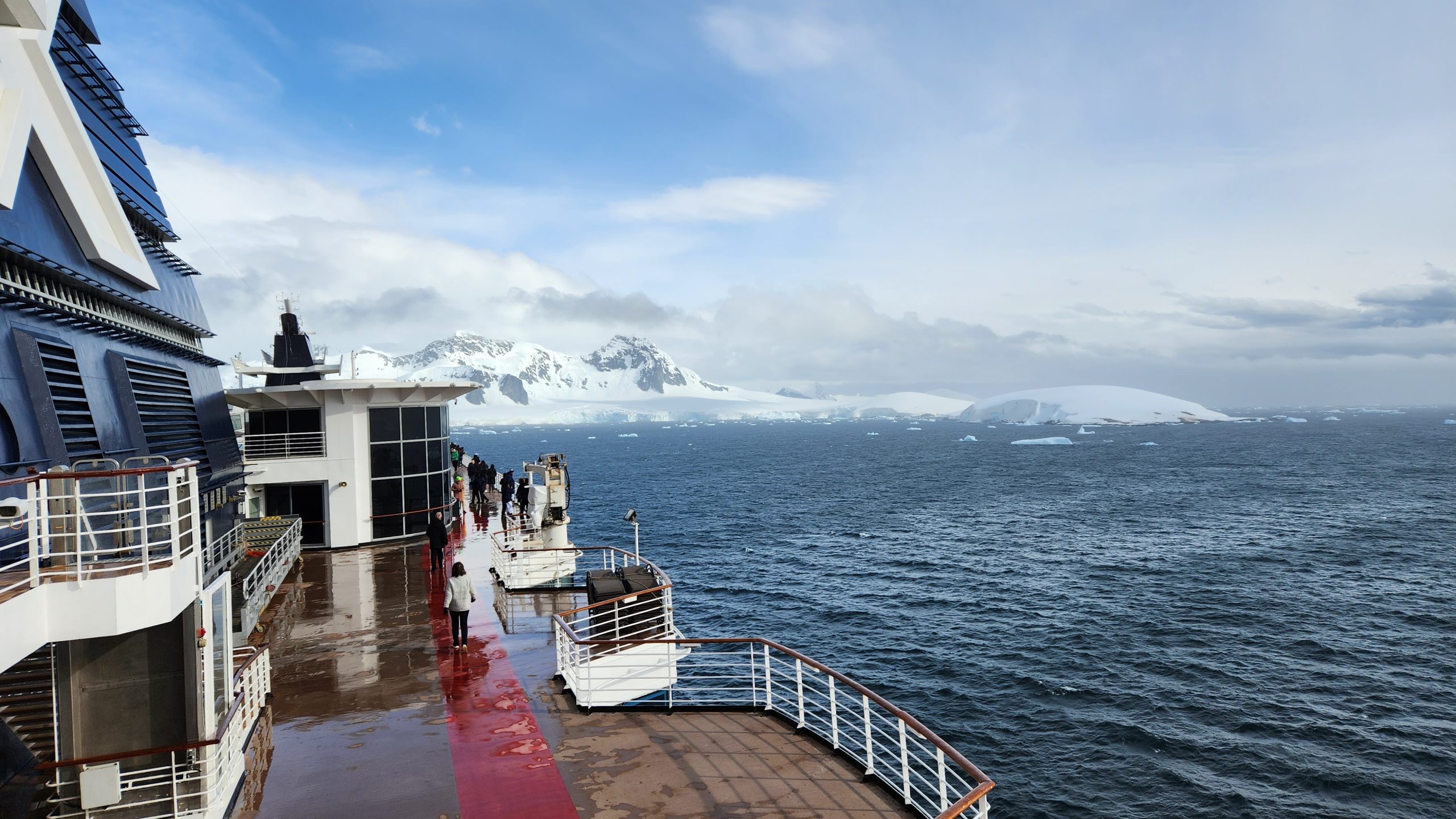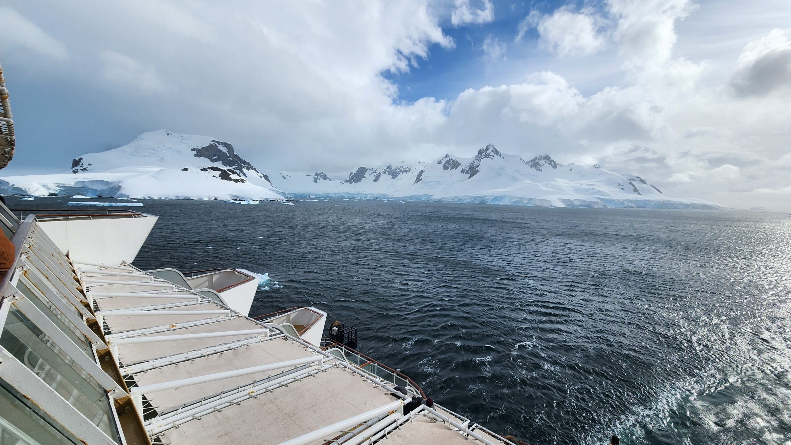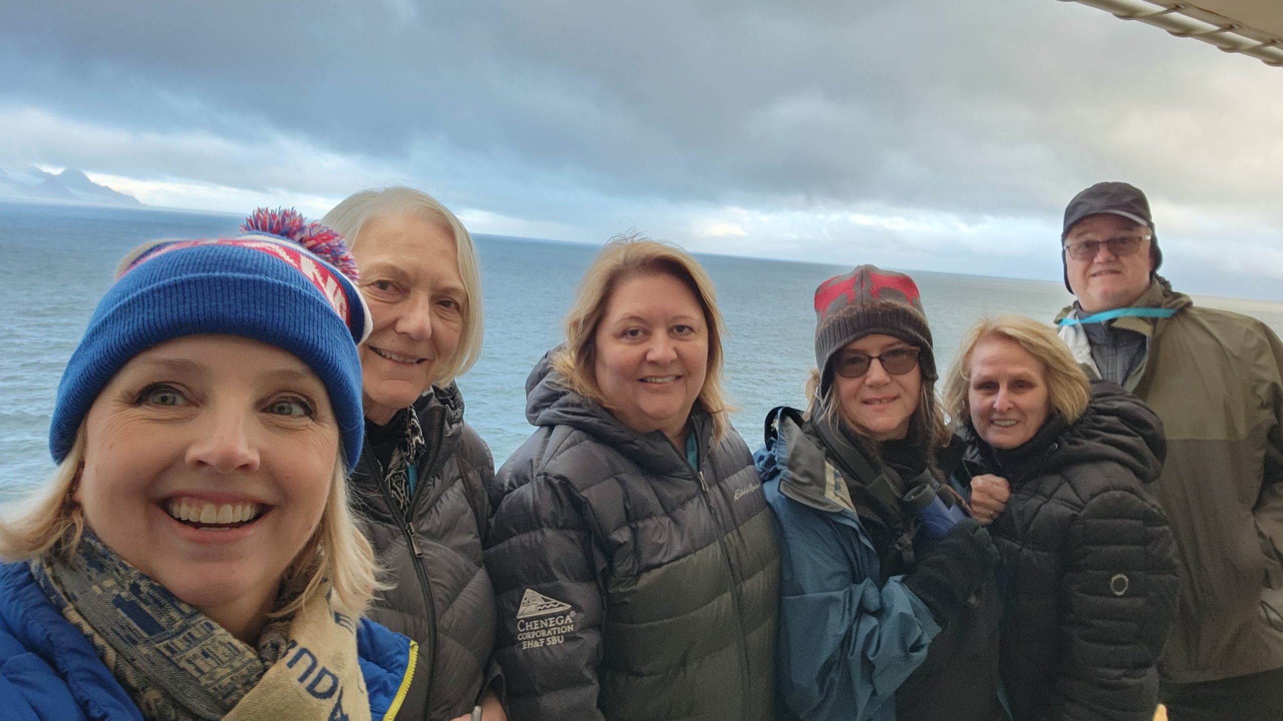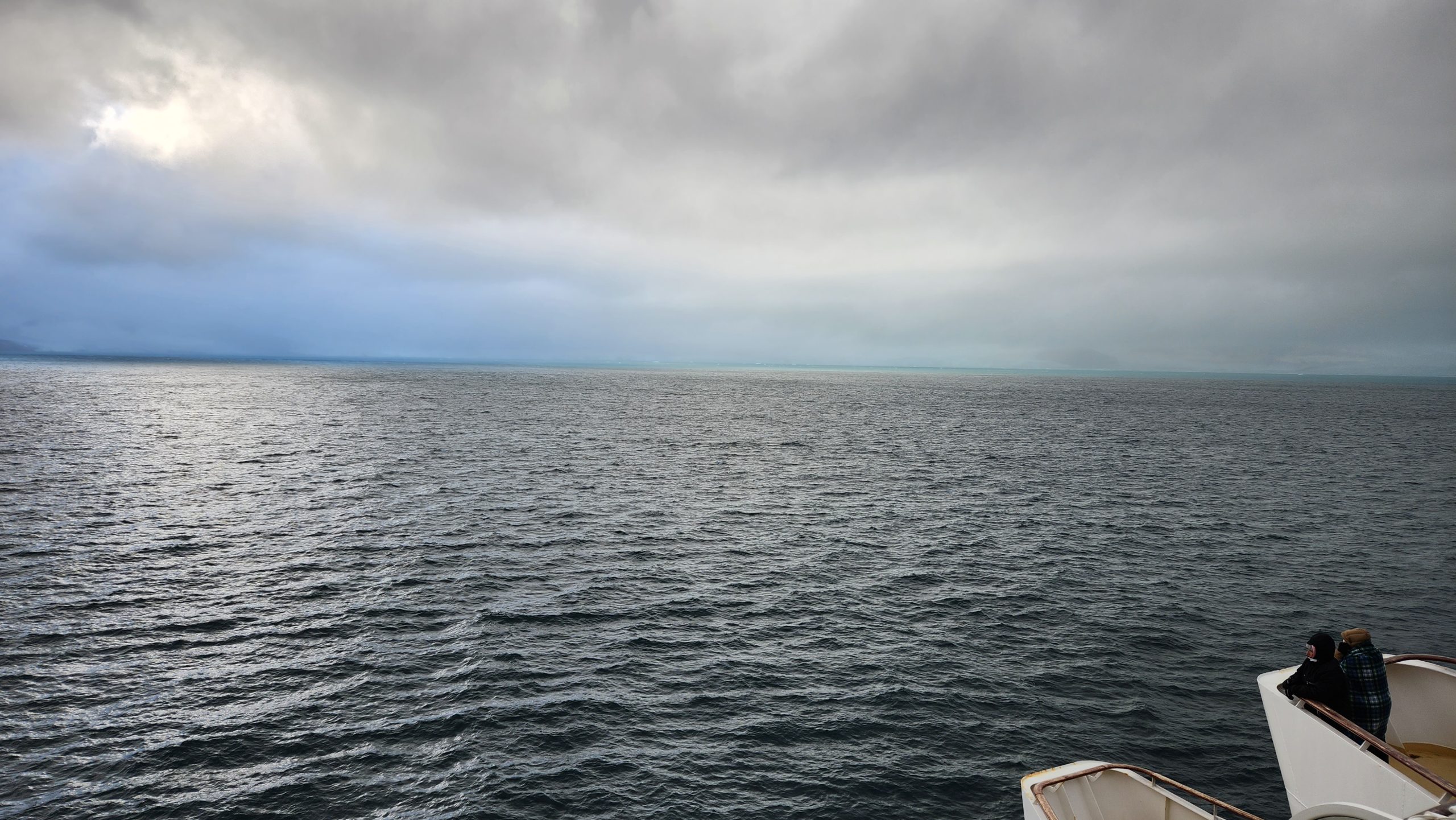 Still, it was a great day to watch the scnery and enjoy the southern ocean with friends. Our aft facing balcony was a wonderful way to be some what sheltered from the elements. We had a larger one as we upgraded last minute to an unoccupied concierge class accessible cabin. That made for a larger room and huge balcony on which we could host friends in our group.