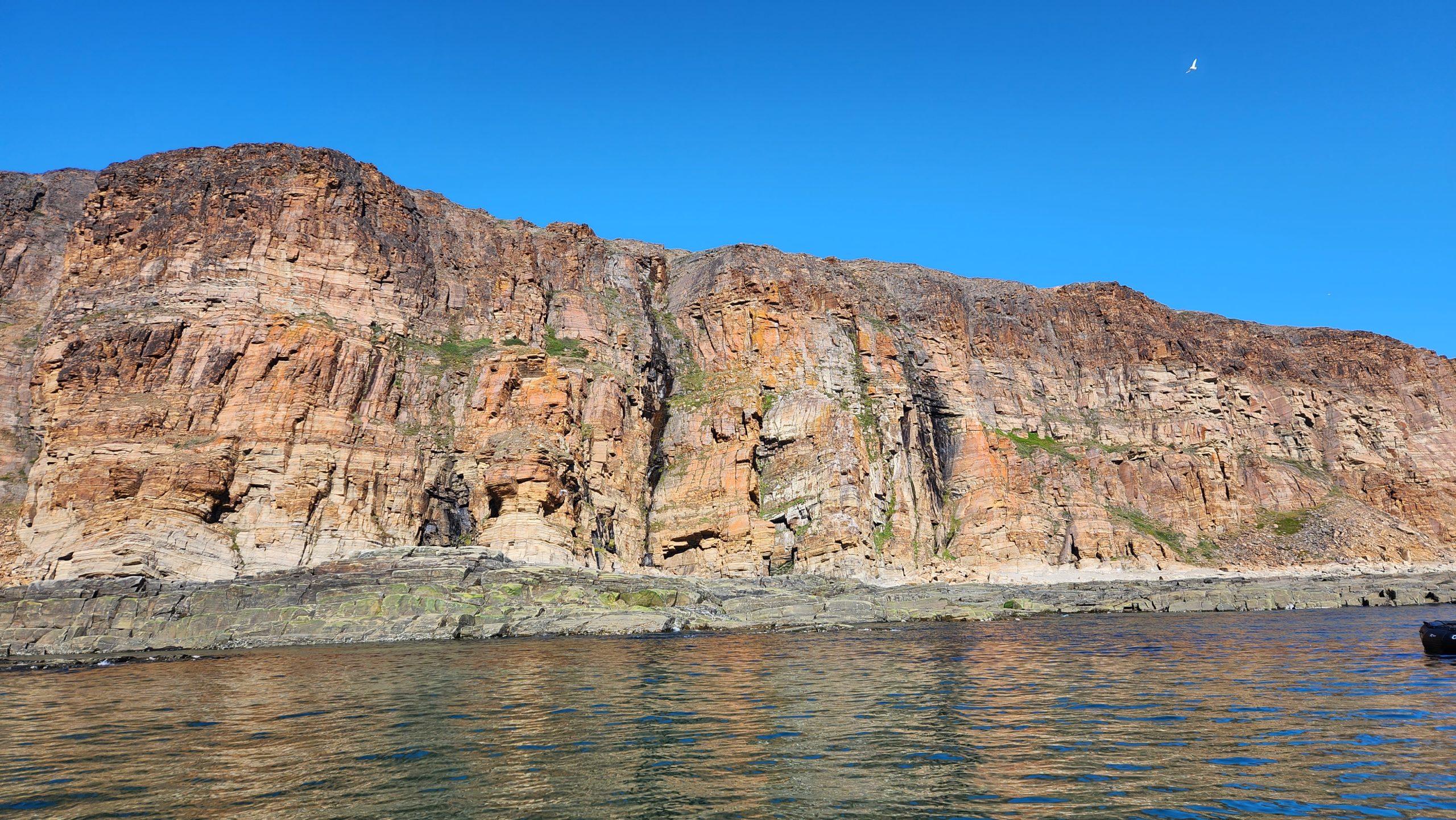The beautiful sunny day worked against our chances of finding a polar bear this day. When it is super sunny they tend to get a little too hot, so they aren’t very active. We did see some spectacular island cliffs and notable icebergs.