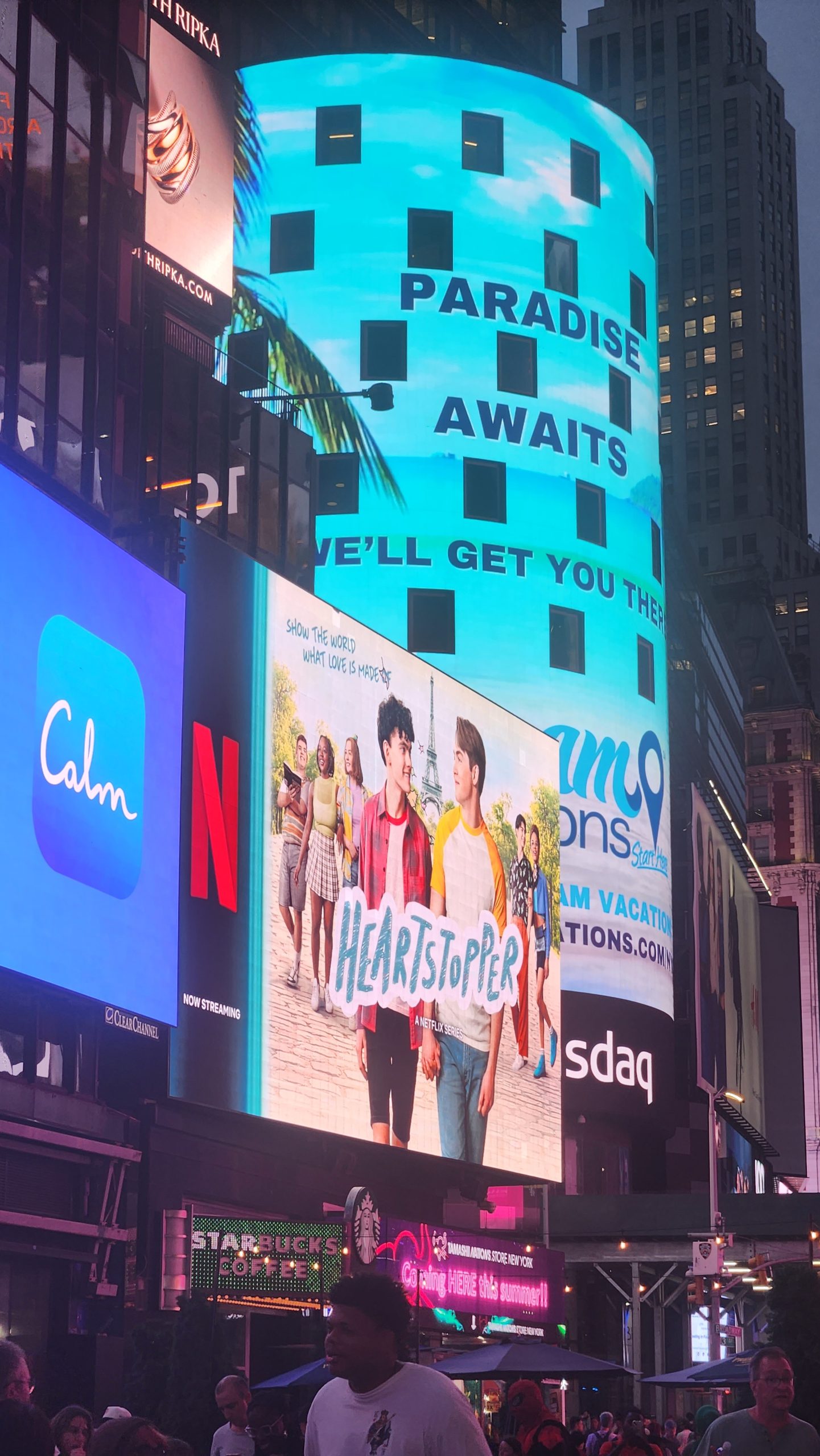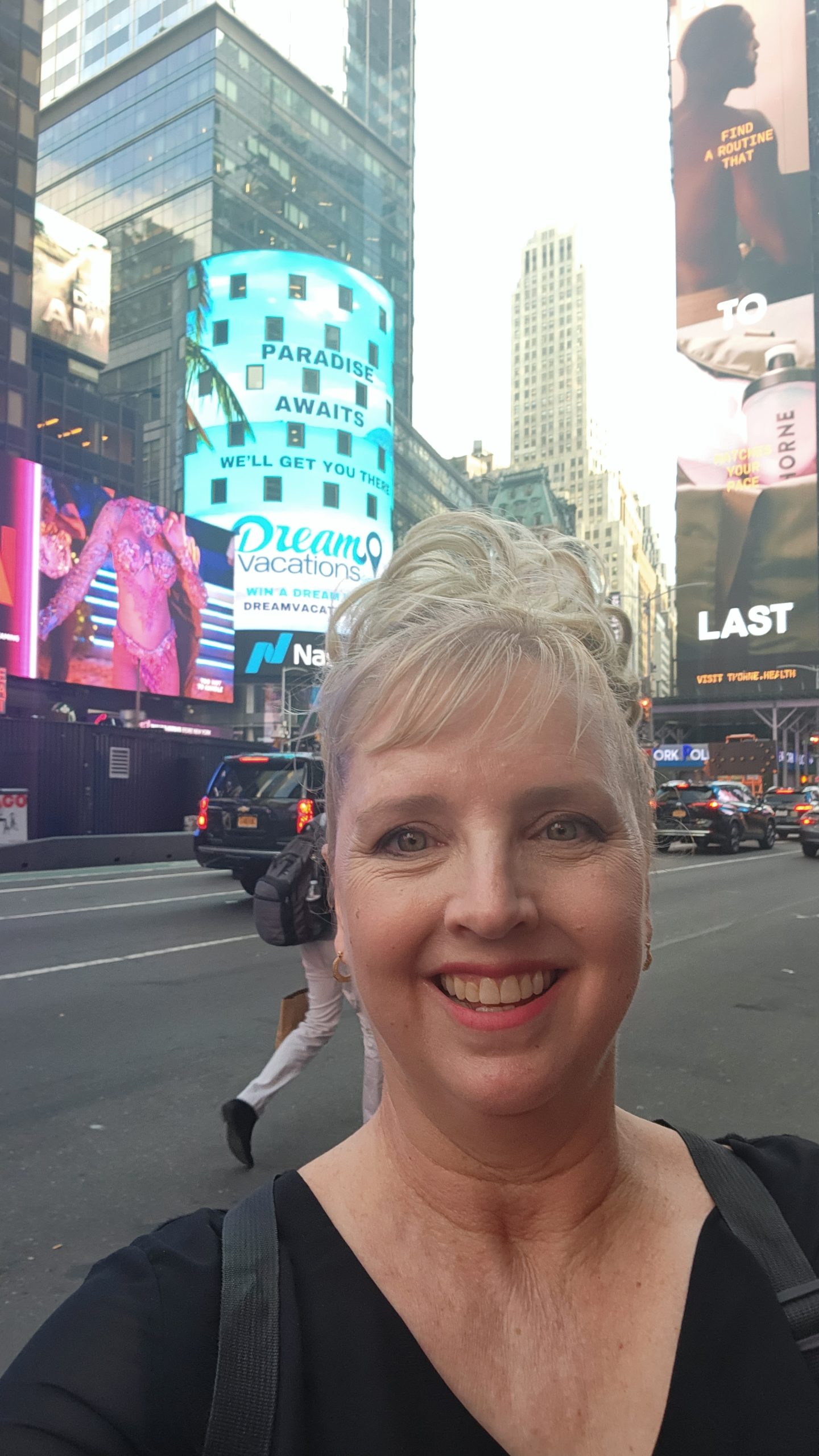 Coincidentally, our franchise organization was sponsoring a billboard for the week in Time Square advertising the Dream Vacations travel franchises. Dream Vacations is the newer franchise brand name for the newer CruiseOne travel franchises. It is my franchise organization, so we were thrilled to see the advertisement in Time Square!