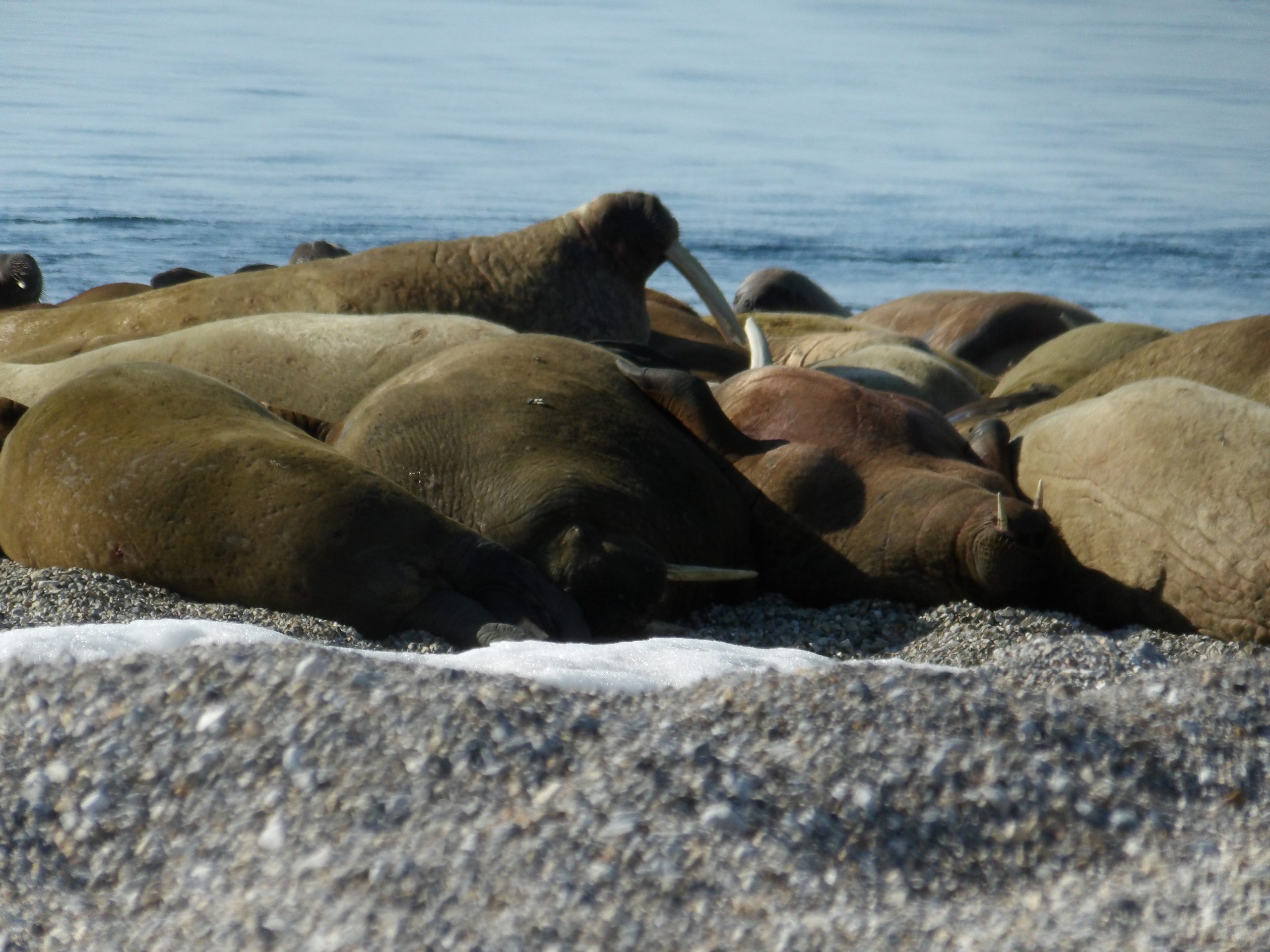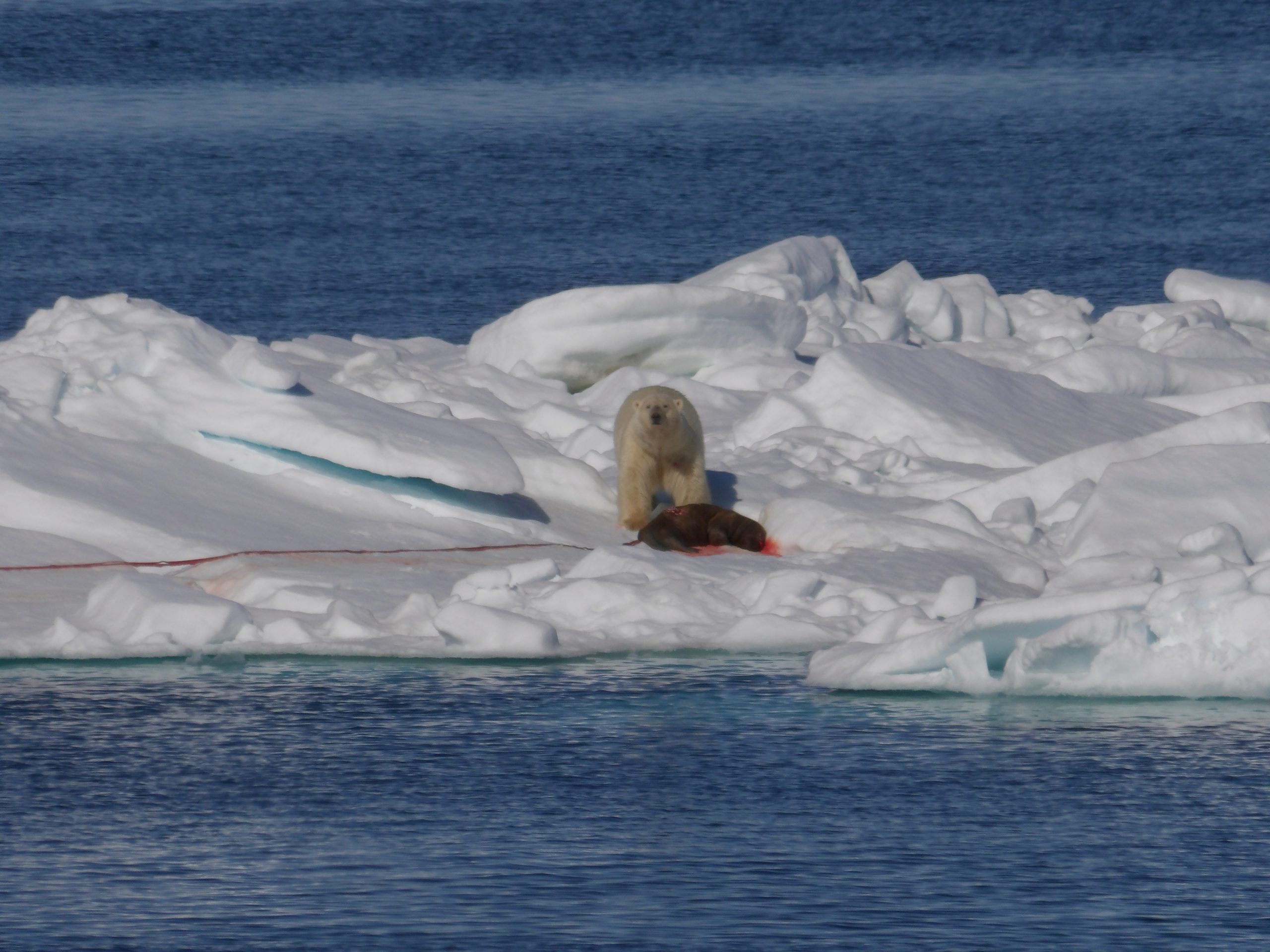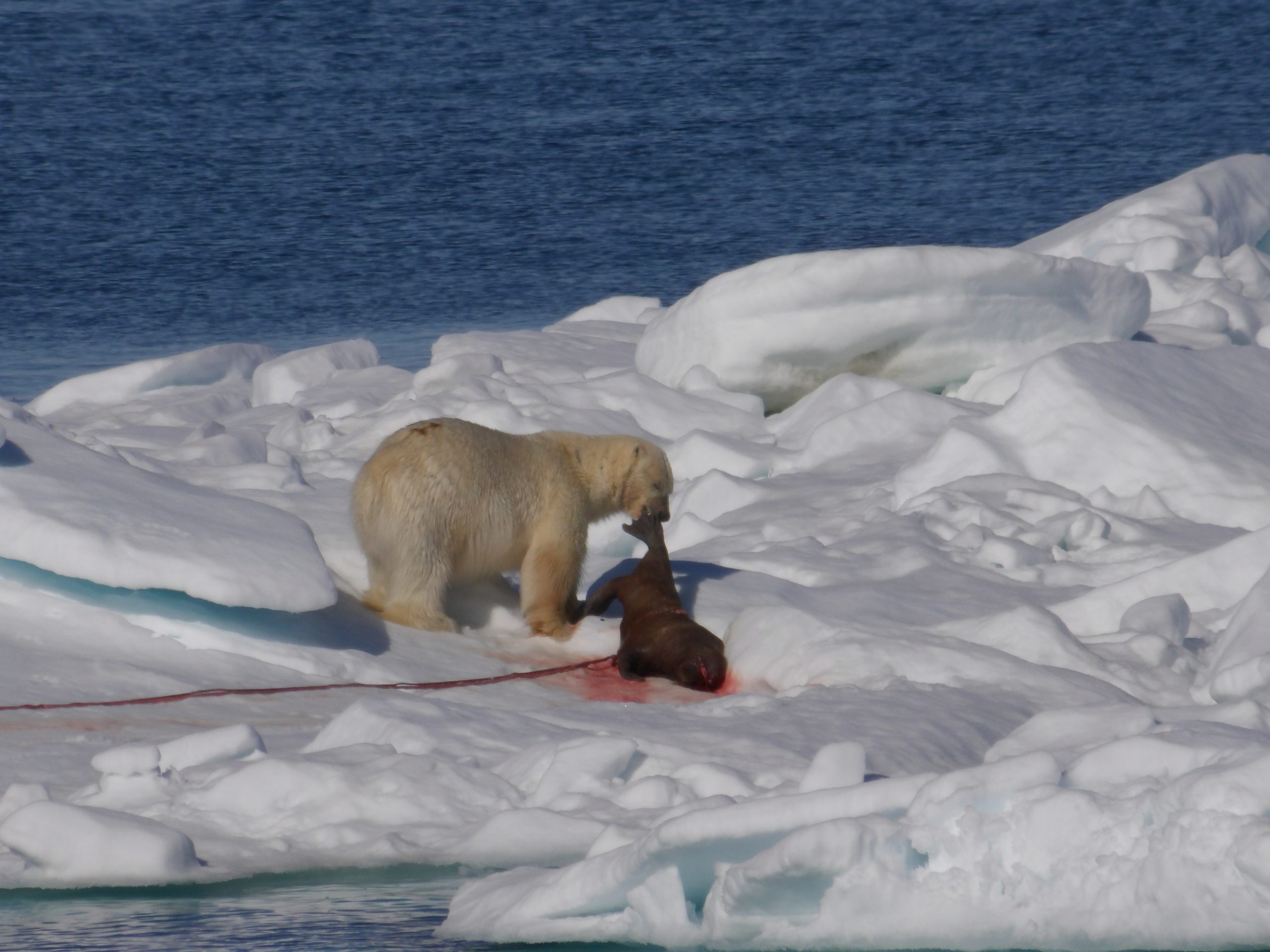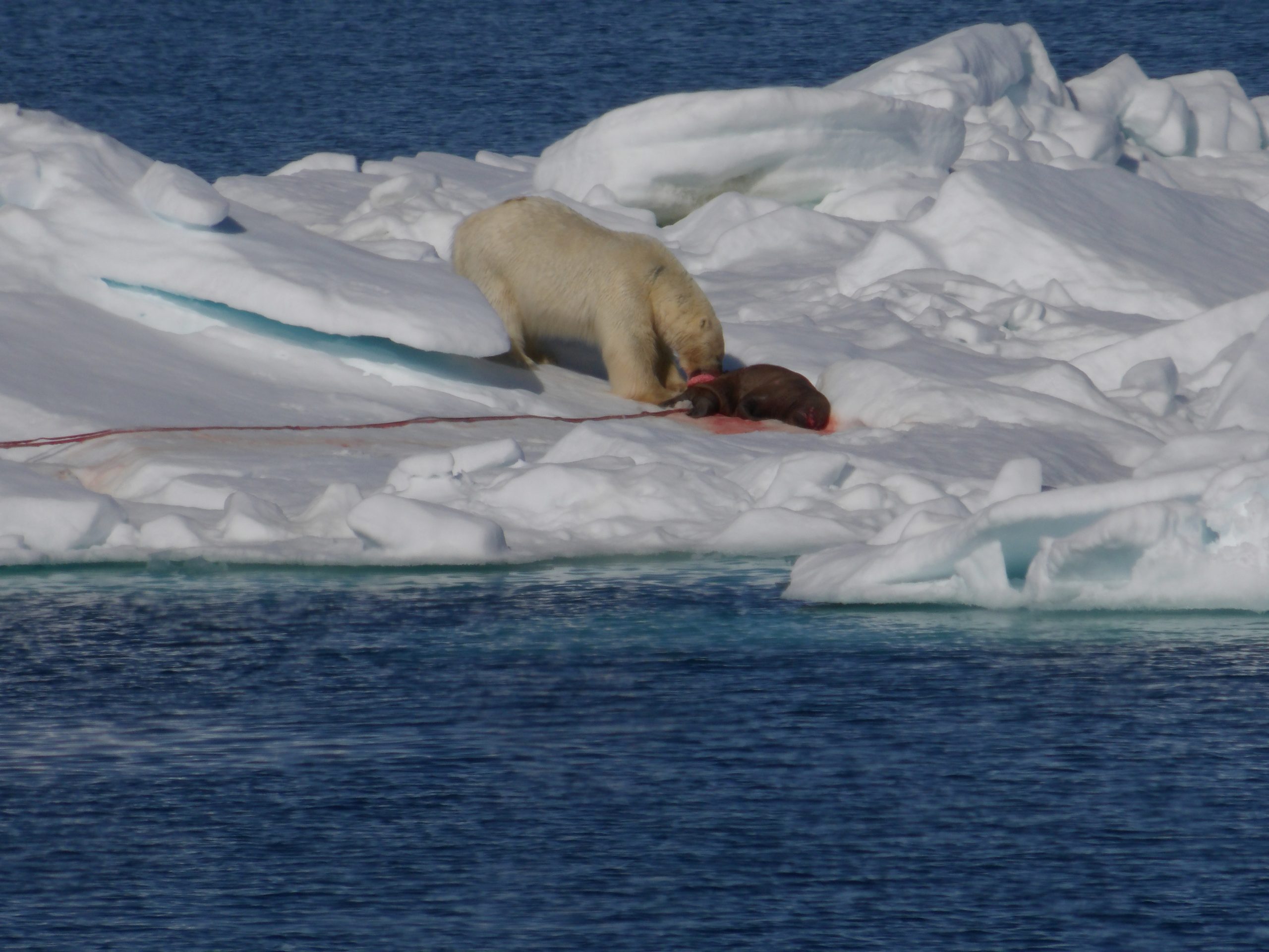 Another spectacular day of wildlife. We started the morning with the medium hike which afforded us Walrus as well as interesting landscapes. Back on the ship a bear was spotted in the water and as the ship turned to see him, the hauled himself and his catch out of the water and began to do was Polar Bears do, which is eat massive amounts of blubber. I know the pictures are kind of gorey, but because he was eating in one spot, it afforded me the best opportunity to take photos with my sometimes temperamental zoom camera.