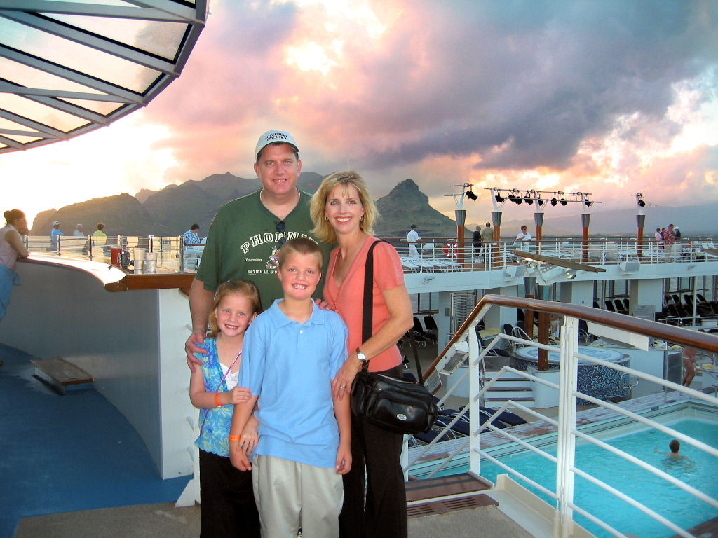 Hi! My name is Suzanne Klasen. This is one of my very favorite cruise pictures taken with the family a few years ago as we departed Kauai on the Celebrity Infinity. I have been cruising for more than 45 years with my first cruise being on the Bon Vivant way back in 1976.
